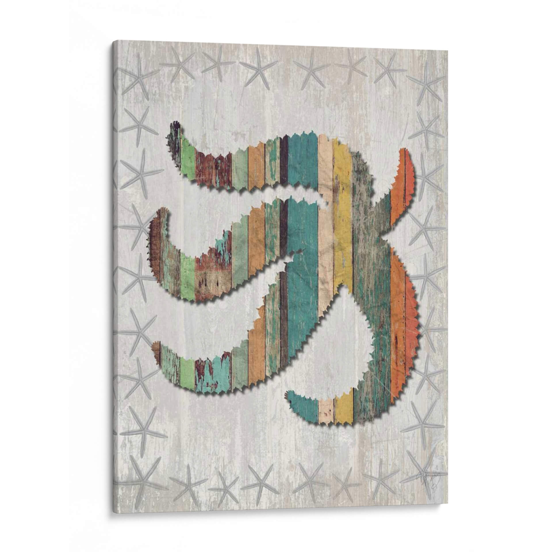 Sumérgete en la serenidad costera con este cautivador cuadro decorativo de estrella de mar, una obra que evoca la brisa marina y la textura de la madera desgastada por el tiempo. La pieza central presenta una estrella de mar estilizada, creada a partir de tablones de madera reciclada en una paleta de colores vibrantes y desgastados que incluyen azules profundos, verdes turquesa, naranjas cálidos y amarillos solares. Estos colores, junto con la textura rústica, transportan instantáneamente a un ambiente playero y relajado. El fondo, con su acabado de madera en tonos grises y blancos, salpicado de delicadas siluetas de estrellas de mar, refuerza la temática marina y añade una capa de sutil detalle. El estilo rústico y costero de esta obra la hace ideal para salones, dormitorios o baños que buscan un toque de encanto playero. Su diseño único y lleno de carácter es perfecto para aquellos que aprecian el arte con historia y personalidad, aportando una atmósfera de calma y vacaciones a cualquier espacio. Añade un toque de frescura y autenticidad a tu hogar con este impresionante cuadro decorativo.