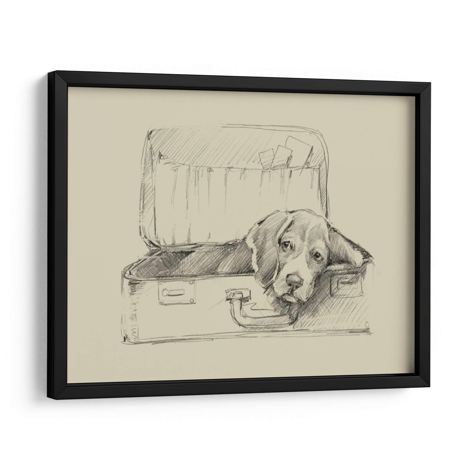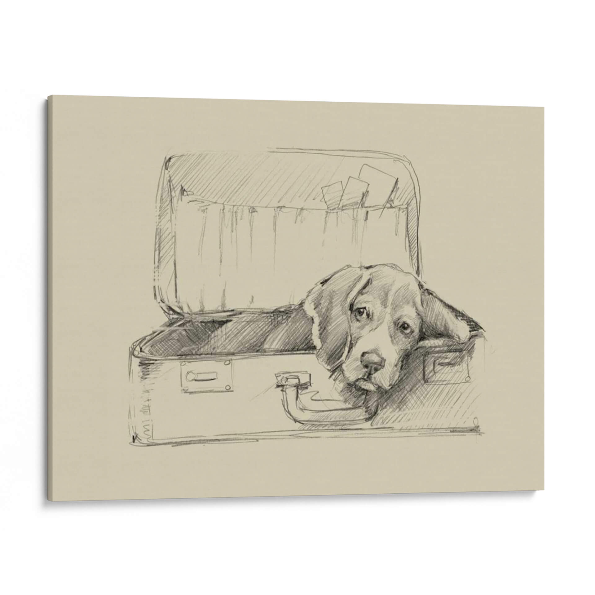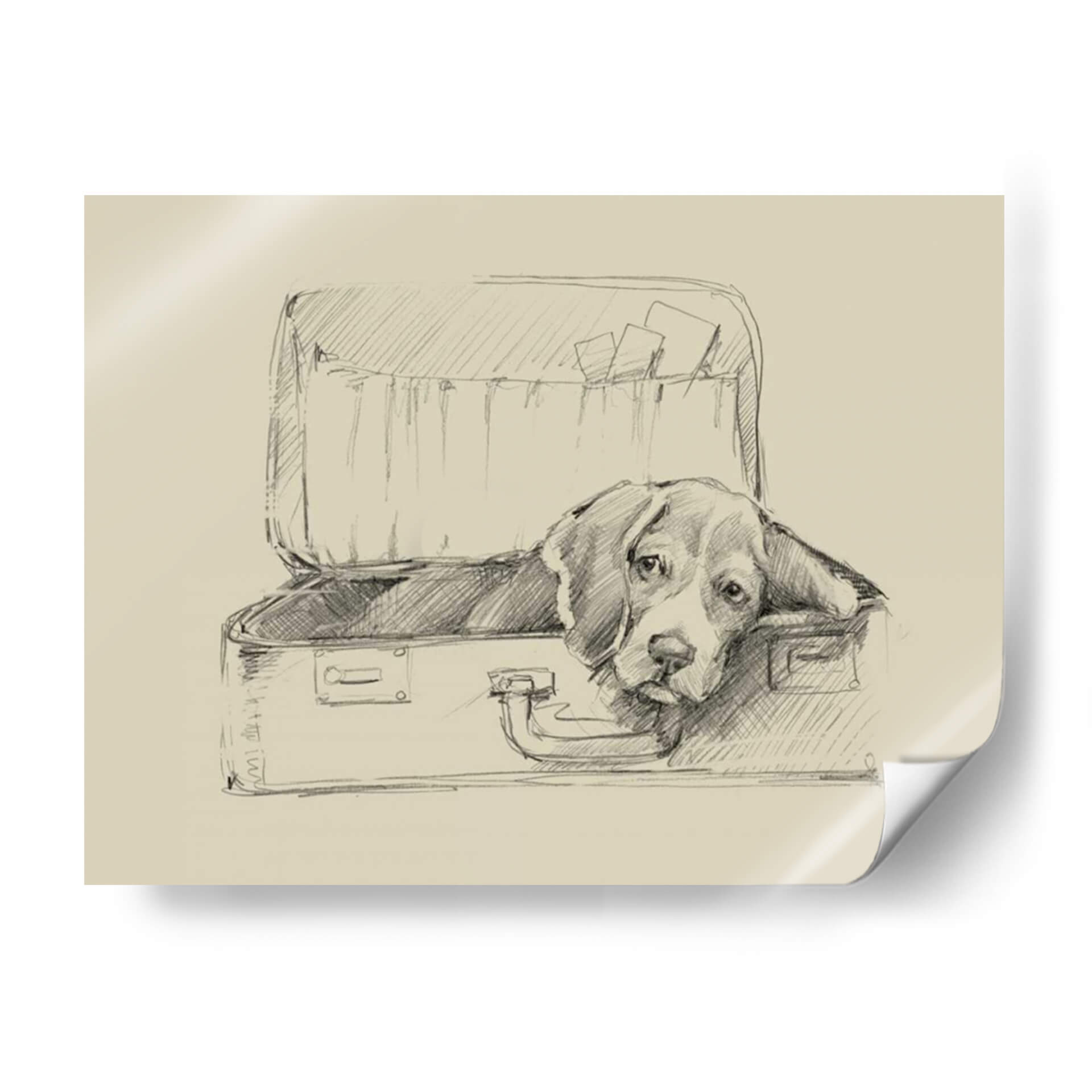 Sumérgete en la ternura y el encanto de "Stowaway II" de Ethan Harper, un cuadro decorativo que captura el alma de un perro beagle observando desde el interior de una maleta abierta. Esta obra, realizada con una técnica de boceto a lápiz sobre un fondo de tonalidad sepia, evoca una atmósfera nostálgica y contemplativa. Las líneas fluidas y sombreadas dan vida al personaje, transmitiendo una sensación de espera, quizás de aventura o de un tierno anhelo por su humano. La simplicidad del estilo, combinada con la expresividad de la mirada del perro, crea un punto focal cautivador que invita a la reflexión y al afecto. Ideal para amantes de los animales y aquellos que aprecian el arte con narrativa emocional, este cuadro decorativo añadirá un toque de calidez y personalidad a cualquier rincón de tu hogar u oficina. Su estilo clásico y atemporal lo hace perfecto para salones, dormitorios o estudios, complementando decoraciones que van desde lo rústico hasta lo contemporáneo. Descubre la magia de una imagen sencilla pero profundamente conmovedora, una obra que habla directamente al corazón y decora con sentimiento.