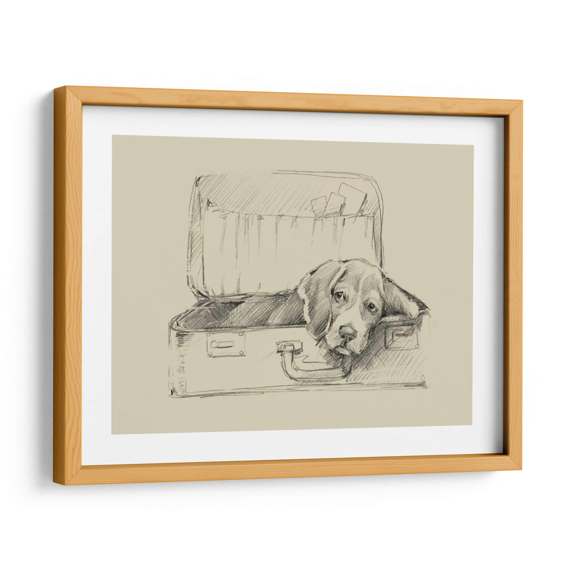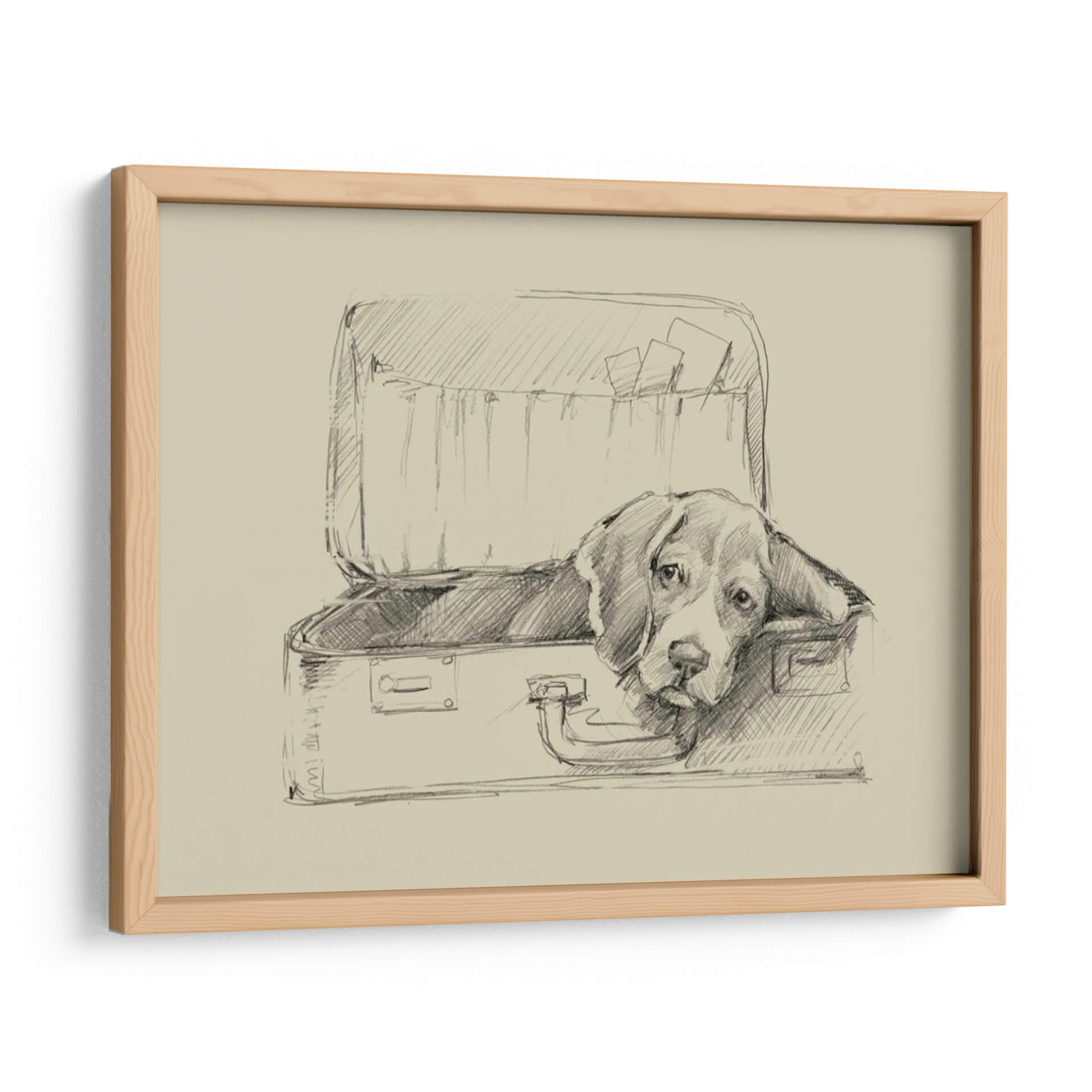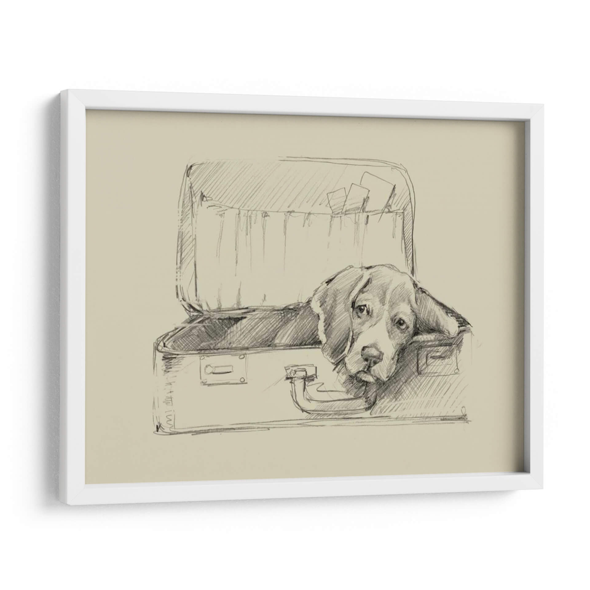 Sumérgete en la ternura y el encanto de "Stowaway II" de Ethan Harper, un cuadro decorativo que captura el alma de un perro beagle observando desde el interior de una maleta abierta. Esta obra, realizada con una técnica de boceto a lápiz sobre un fondo de tonalidad sepia, evoca una atmósfera nostálgica y contemplativa. Las líneas fluidas y sombreadas dan vida al personaje, transmitiendo una sensación de espera, quizás de aventura o de un tierno anhelo por su humano. La simplicidad del estilo, combinada con la expresividad de la mirada del perro, crea un punto focal cautivador que invita a la reflexión y al afecto. Ideal para amantes de los animales y aquellos que aprecian el arte con narrativa emocional, este cuadro decorativo añadirá un toque de calidez y personalidad a cualquier rincón de tu hogar u oficina. Su estilo clásico y atemporal lo hace perfecto para salones, dormitorios o estudios, complementando decoraciones que van desde lo rústico hasta lo contemporáneo. Descubre la magia de una imagen sencilla pero profundamente conmovedora, una obra que habla directamente al corazón y decora con sentimiento.