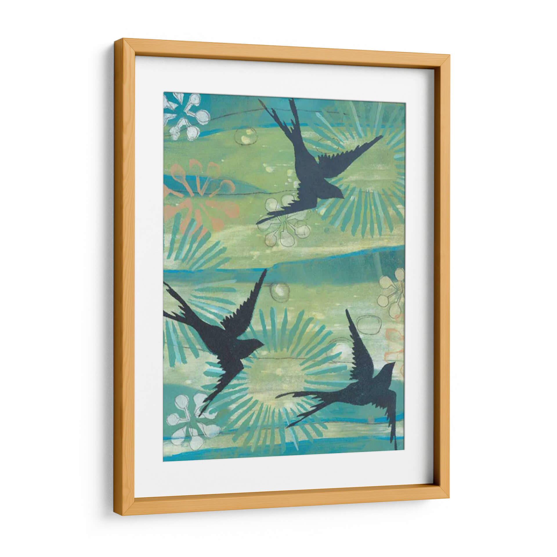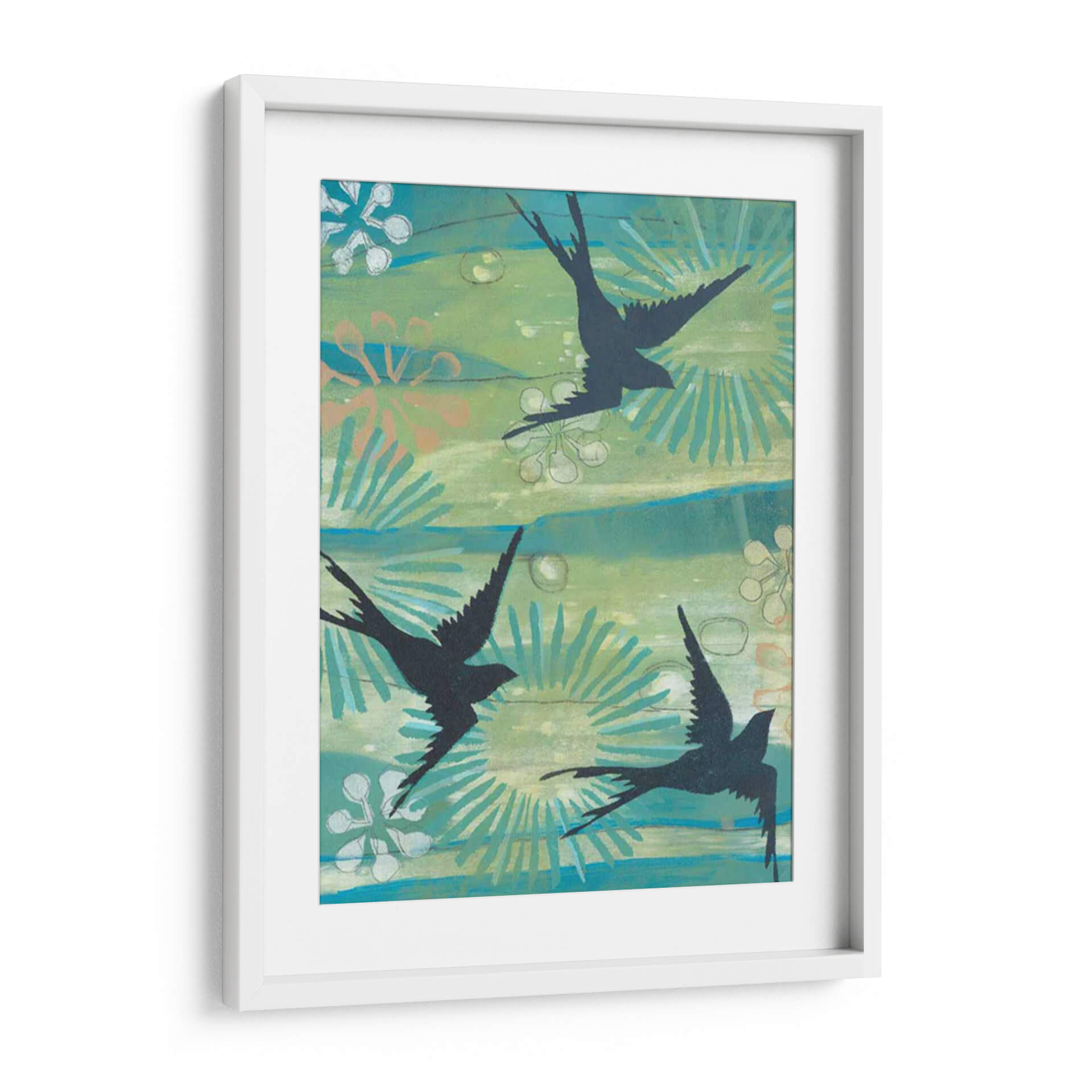 Captura la esencia de la libertad y la serenidad con 'Swoop I', una obra de arte contemporáneo que evoca la gracia de las aves en pleno vuelo. La pieza presenta siluetas oscuras de golondrinas que se desplazan con elegancia a través de un paisaje abstracto de tonos verdes y azules, salpicado de delicados motivos florales y estallidos solares en tonos tierra y blancos. La paleta de colores, dominada por verdes vibrantes y azules serenos, crea una atmósfera de calma y naturalidad, perfecta para infundir tranquilidad en cualquier espacio. El estilo artístico combina elementos de arte abstracto y figurativo, con texturas sutiles que añaden profundidad y dimensión. Ideal para aquellos que buscan añadir un toque de naturaleza estilizada y movimiento a su decoración, este cuadro decorativo es un punto focal cautivador para salones, dormitorios o estudios, invitando a la contemplación y a la conexión con el mundo natural. 'Swoop I' es más que una simple imagen; es una ventana a la belleza efímera del vuelo y la armonía.