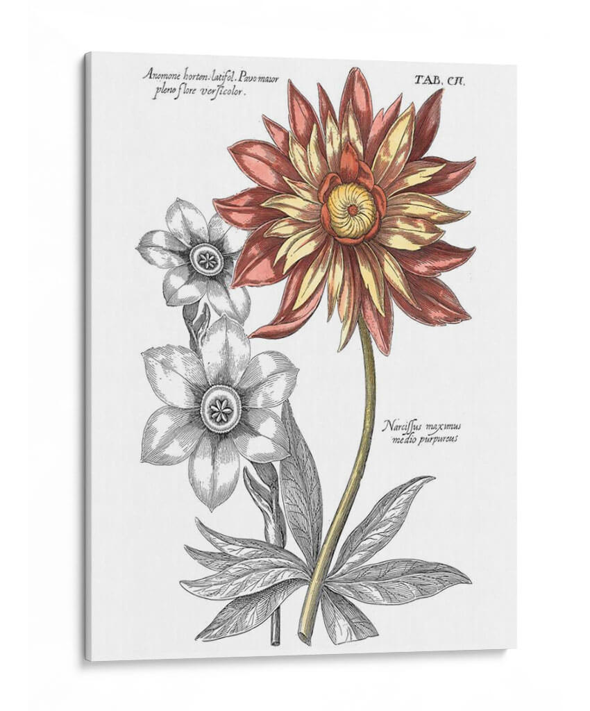 Embellece tu hogar con el cuadro decorativo 'Tintado Floral Iii', una obra maestra botánica que captura la delicadeza y la vibrante belleza de la naturaleza. Esta pieza, inspirada en las ilustraciones científicas clásicas, presenta un detallado estudio de flores, destacando un llamativo capullo principal en tonos rojizos y dorados, acompañado por delicadas flores secundarias en escala de grises. La cuidada composición y la rica paleta de colores, que fusiona la calidez de los tonos cobrizos con la sobriedad del blanco y negro, otorgan a esta obra una elegancia atemporal. Ideal para añadir un toque de sofisticación botánica a cualquier espacio, desde un salón moderno hasta una oficina con encanto. Este cuadro decorativo es perfecto para los amantes de la botánica, el arte clásico y quienes buscan piezas únicas que aporten vida y color a sus paredes. Su estilo detallado y su atmósfera serena lo convierten en un punto focal que invita a la contemplación y realza la decoración existente.