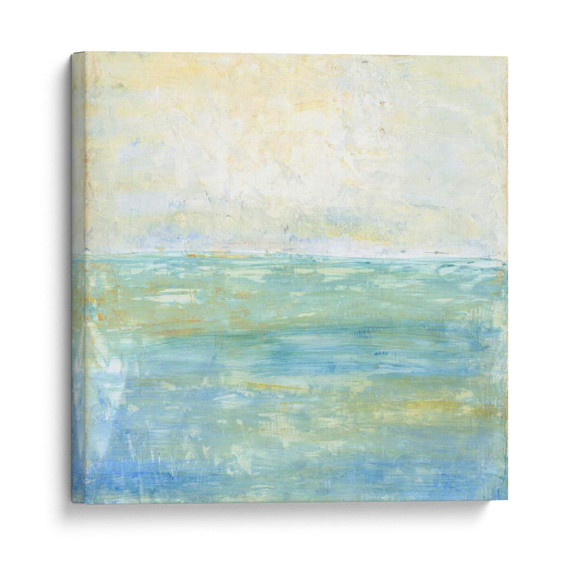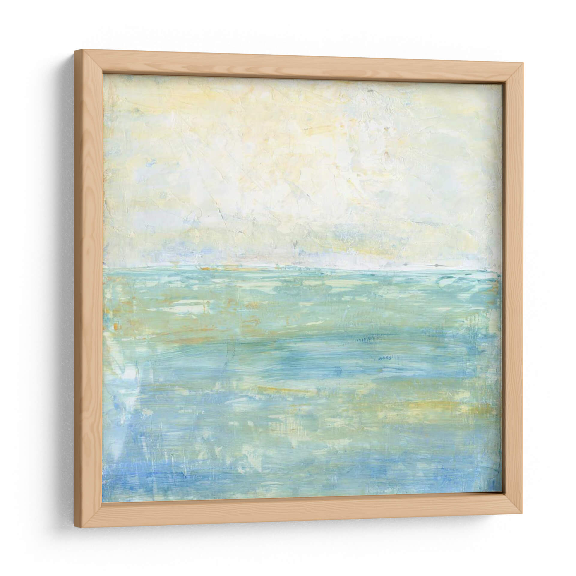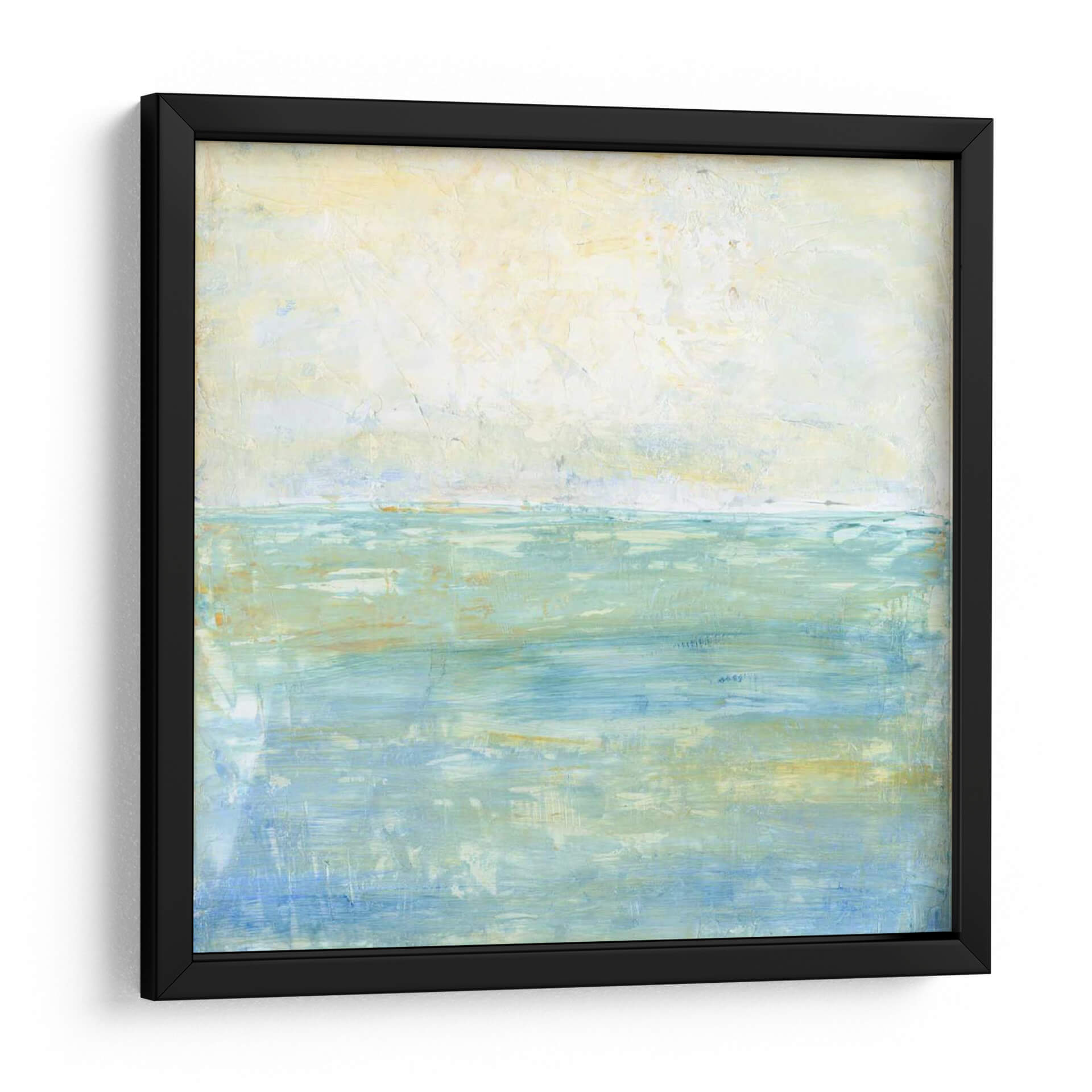 Sumérgete en la serenidad de 'Tranquilo Costa I', una cautivadora obra de arte abstracto que evoca la calma de un paisaje marino o un cielo etéreo. Julie Holland plasma magistralmente la esencia de la tranquilidad a través de pinceladas sueltas y una paleta de colores suaves que combinan tonos celestes, aguamarina y toques de amarillo pálido, creando una atmósfera de paz y contemplación. La composición, dividida sutilmente entre el cielo y el mar, ofrece una perspectiva minimalista pero profundamente evocadora. Este cuadro decorativo es ideal para añadir un toque de serenidad y sofisticación a cualquier espacio, ya sea un dormitorio, un estudio o una sala de estar que busque un refugio visual. Su estilo abstracto contemporáneo se integra a la perfección en decoraciones modernas o costeras, invitando a la reflexión y al descanso. Descubre la belleza del minimalismo y la expresión emocional con esta pieza única.