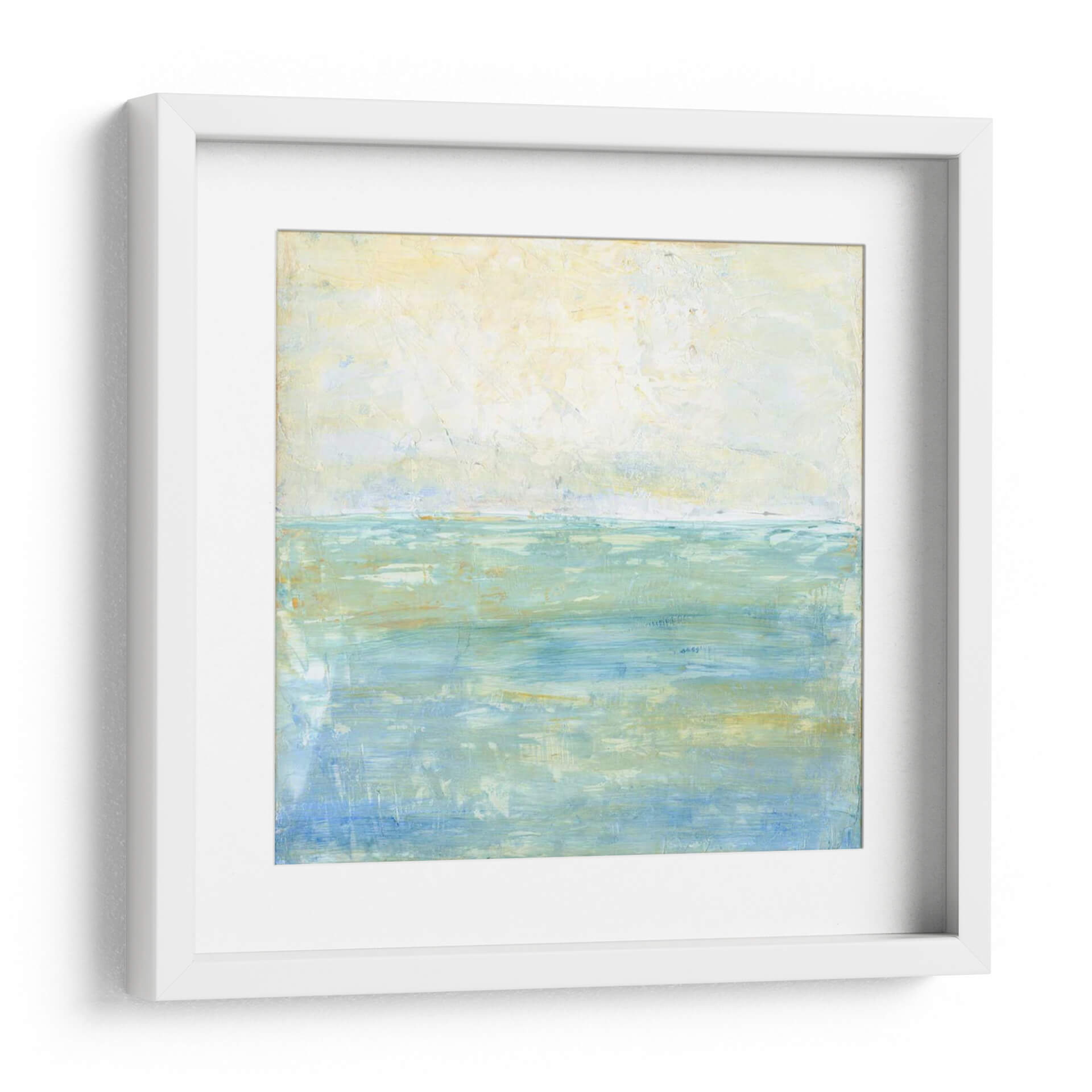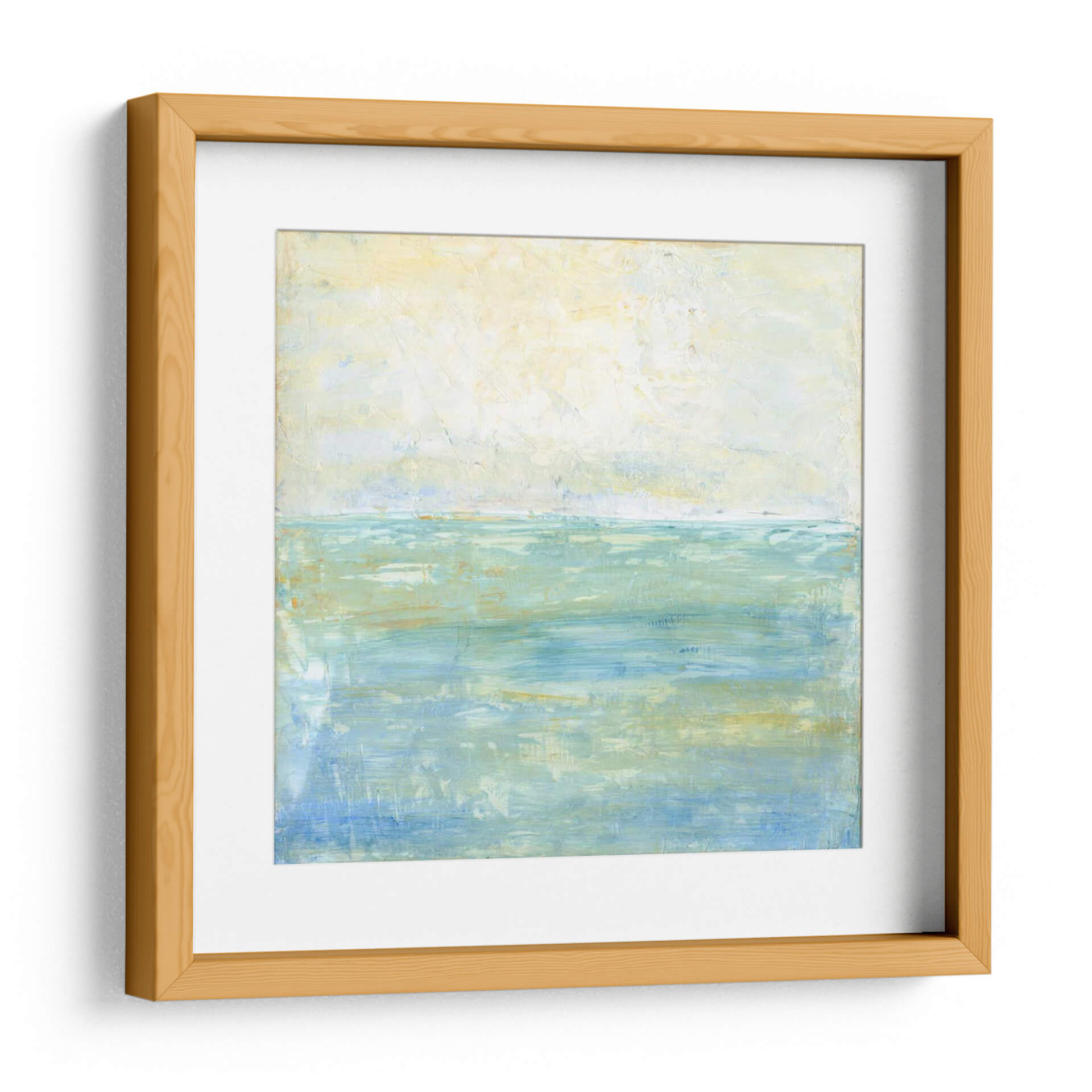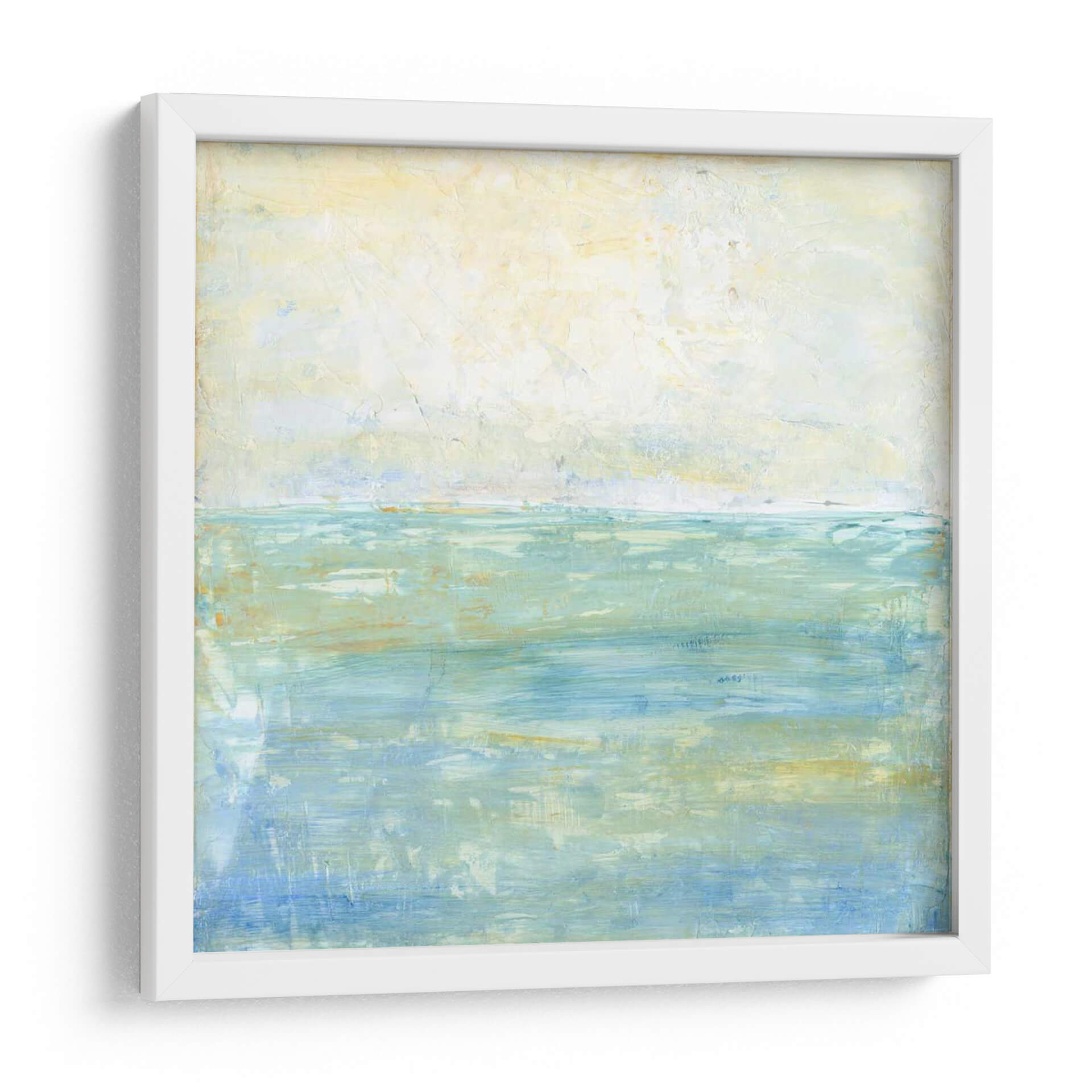 Sumérgete en la serenidad de 'Tranquilo Costa I', una cautivadora obra de arte abstracto que evoca la calma de un paisaje marino o un cielo etéreo. Julie Holland plasma magistralmente la esencia de la tranquilidad a través de pinceladas sueltas y una paleta de colores suaves que combinan tonos celestes, aguamarina y toques de amarillo pálido, creando una atmósfera de paz y contemplación. La composición, dividida sutilmente entre el cielo y el mar, ofrece una perspectiva minimalista pero profundamente evocadora. Este cuadro decorativo es ideal para añadir un toque de serenidad y sofisticación a cualquier espacio, ya sea un dormitorio, un estudio o una sala de estar que busque un refugio visual. Su estilo abstracto contemporáneo se integra a la perfección en decoraciones modernas o costeras, invitando a la reflexión y al descanso. Descubre la belleza del minimalismo y la expresión emocional con esta pieza única.