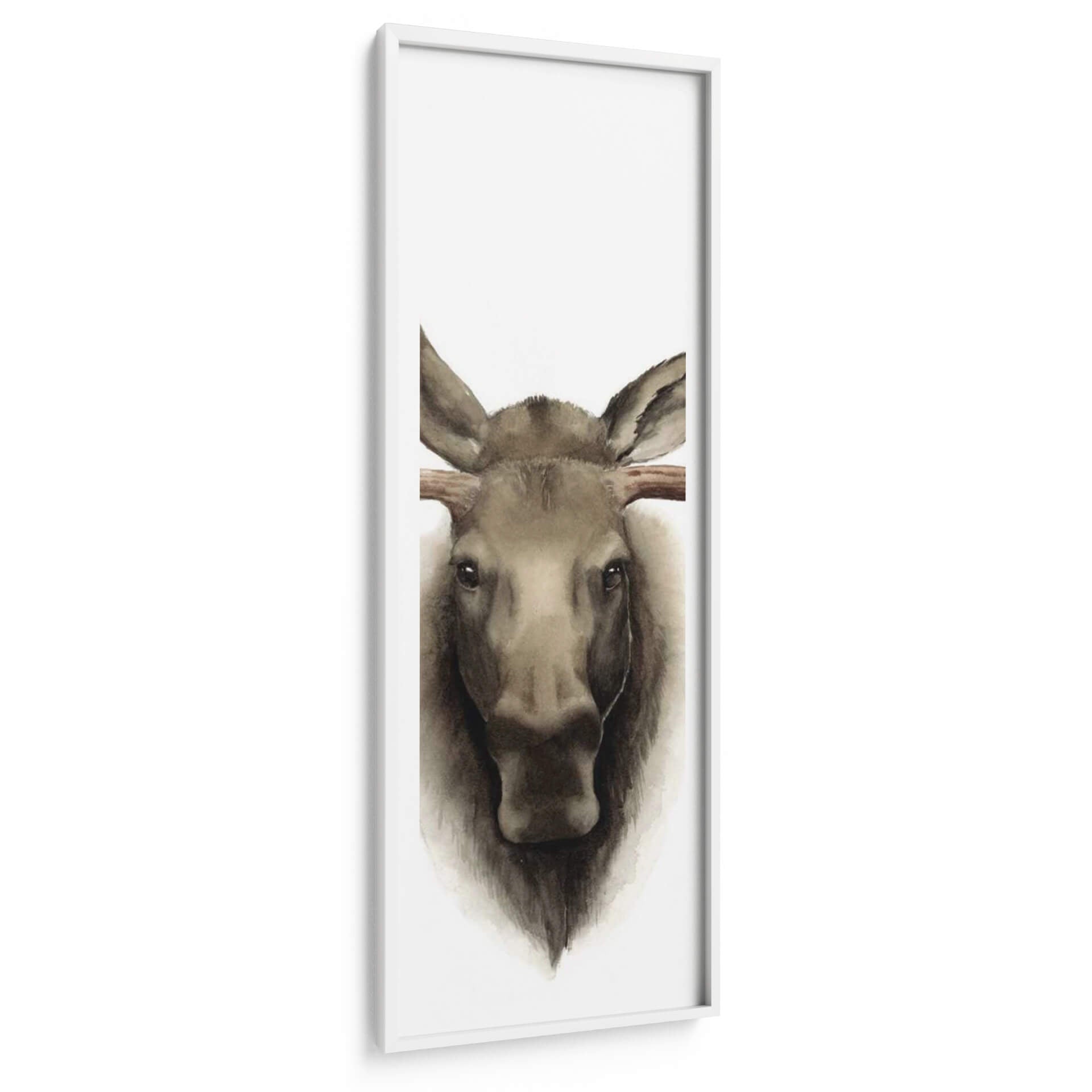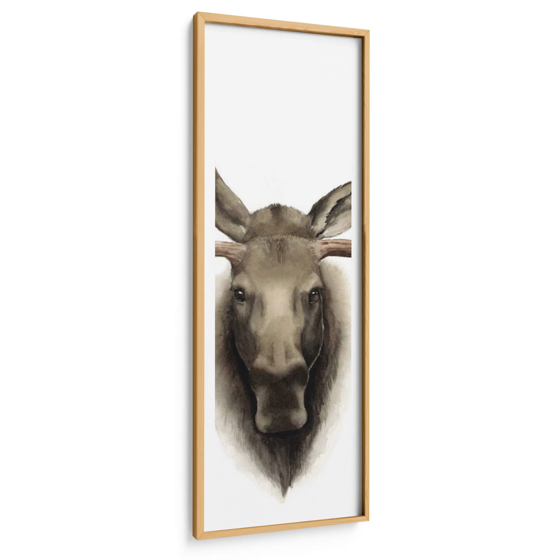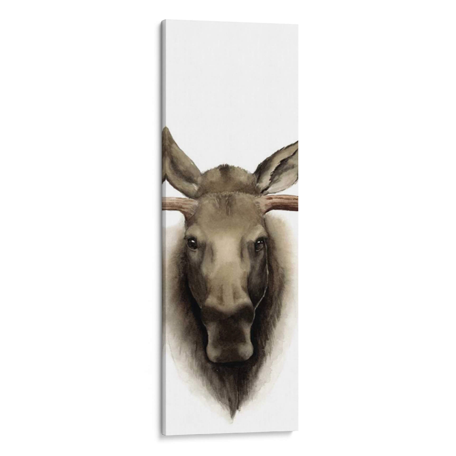 Atrae la majestuosidad de la naturaleza a tu hogar con este cautivador cuadro decorativo de un alce, "Tríptico Alce II" de Grace Popp. Esta obra de arte, ejecutada con una delicada técnica de acuarela, presenta un primer plano del rostro de un imponente alce, capturando su mirada penetrante y la textura de su pelaje con pinceladas suaves y fluidas. La paleta de colores se centra en tonos tierra, marrones y grises, creando una atmósfera serena y natural que evoca la tranquilidad de los bosques. La composición vertical y minimalista, con un fondo blanco o de muy baja saturación, permite que el sujeto principal sea el protagonista indiscutible, aportando un toque de elegancia rústica a cualquier espacio. Ideal para salones, estudios o dormitorios, este tríptico decorativo es perfecto para quienes buscan infundir sus ambientes con la fuerza serena de la vida silvestre y un estilo contemporáneo. Añade una pieza de arte única que conecte con la esencia salvaje y aporta sofisticación a tu decoración.