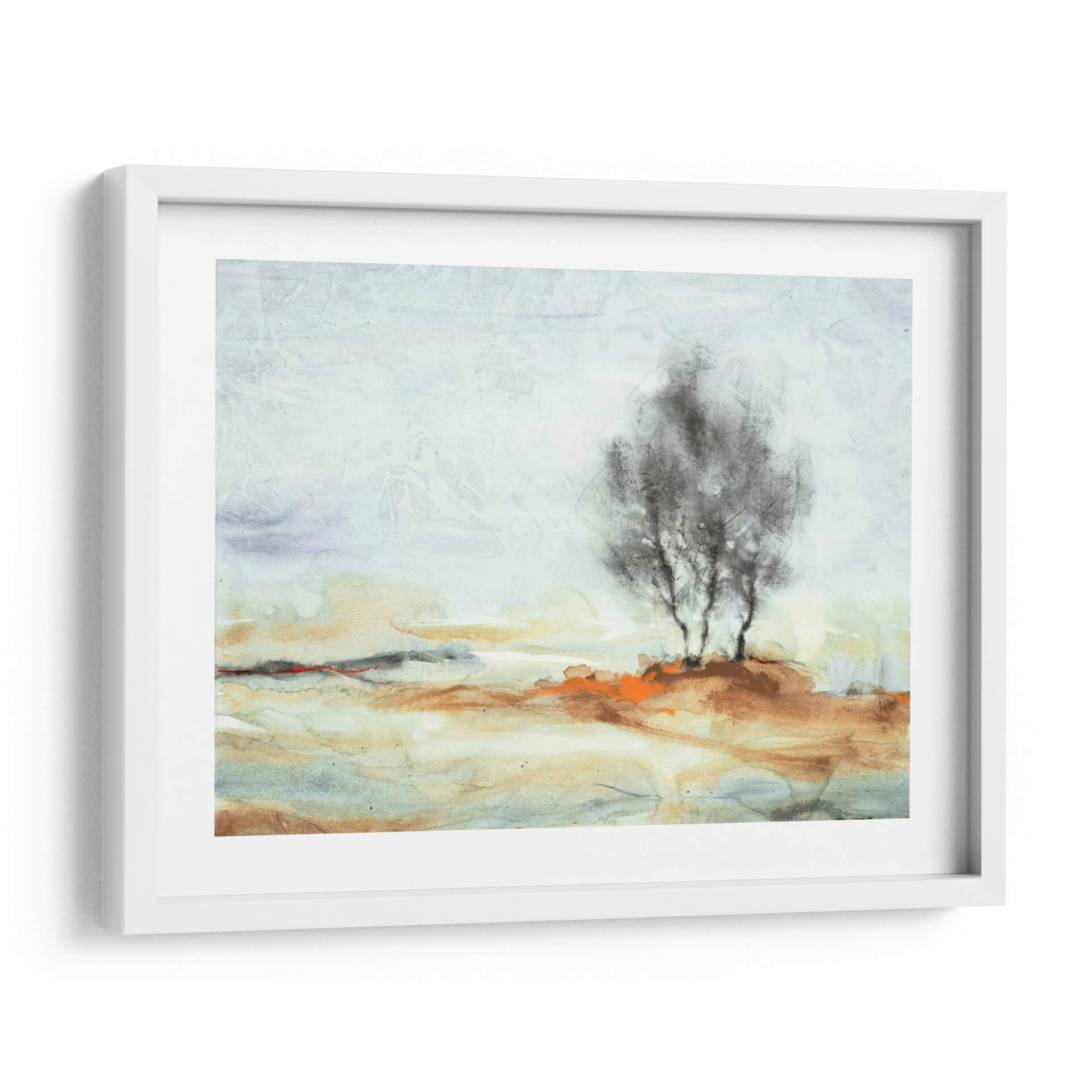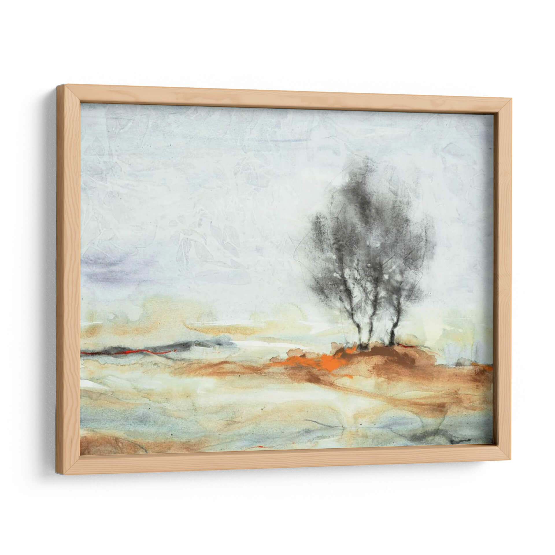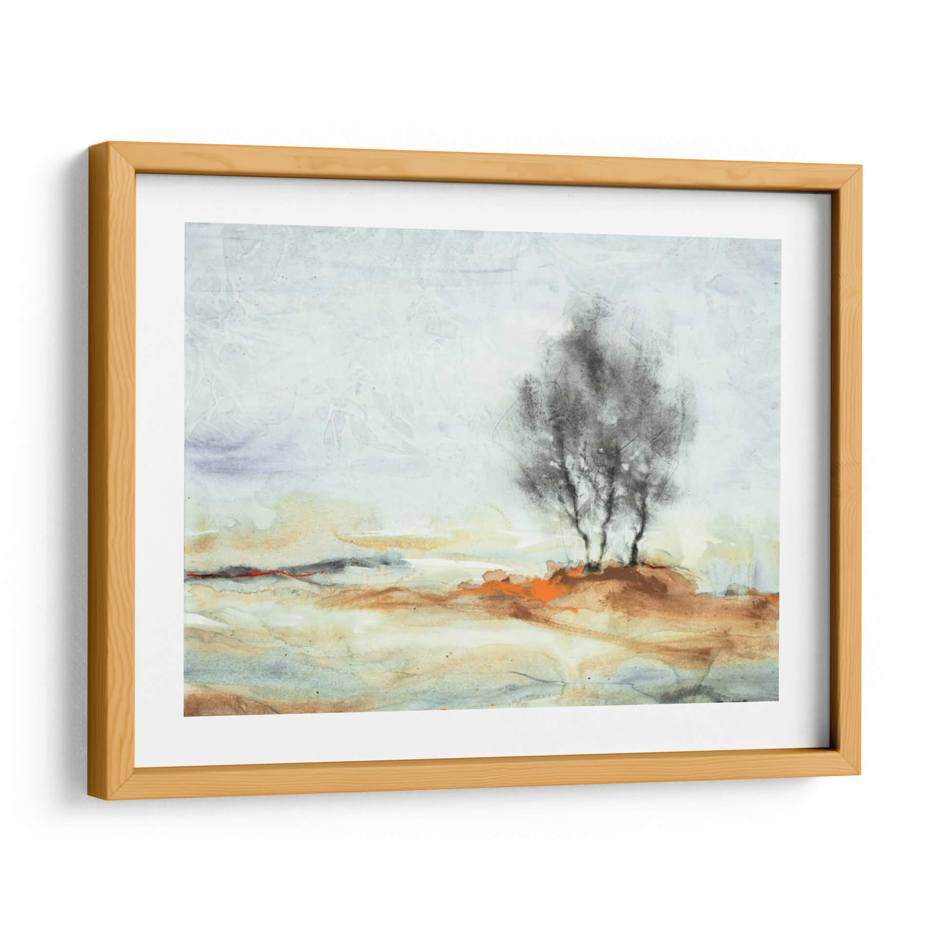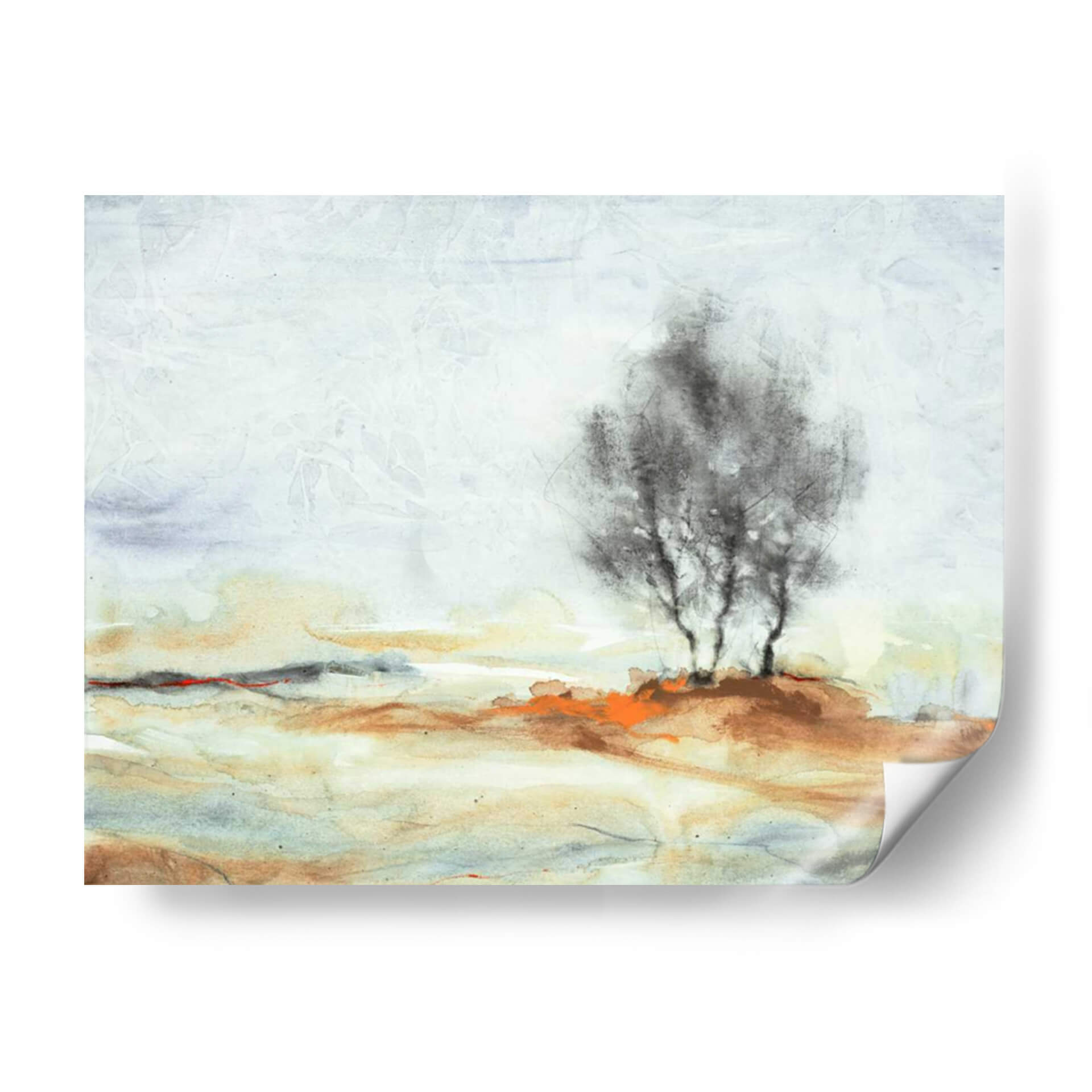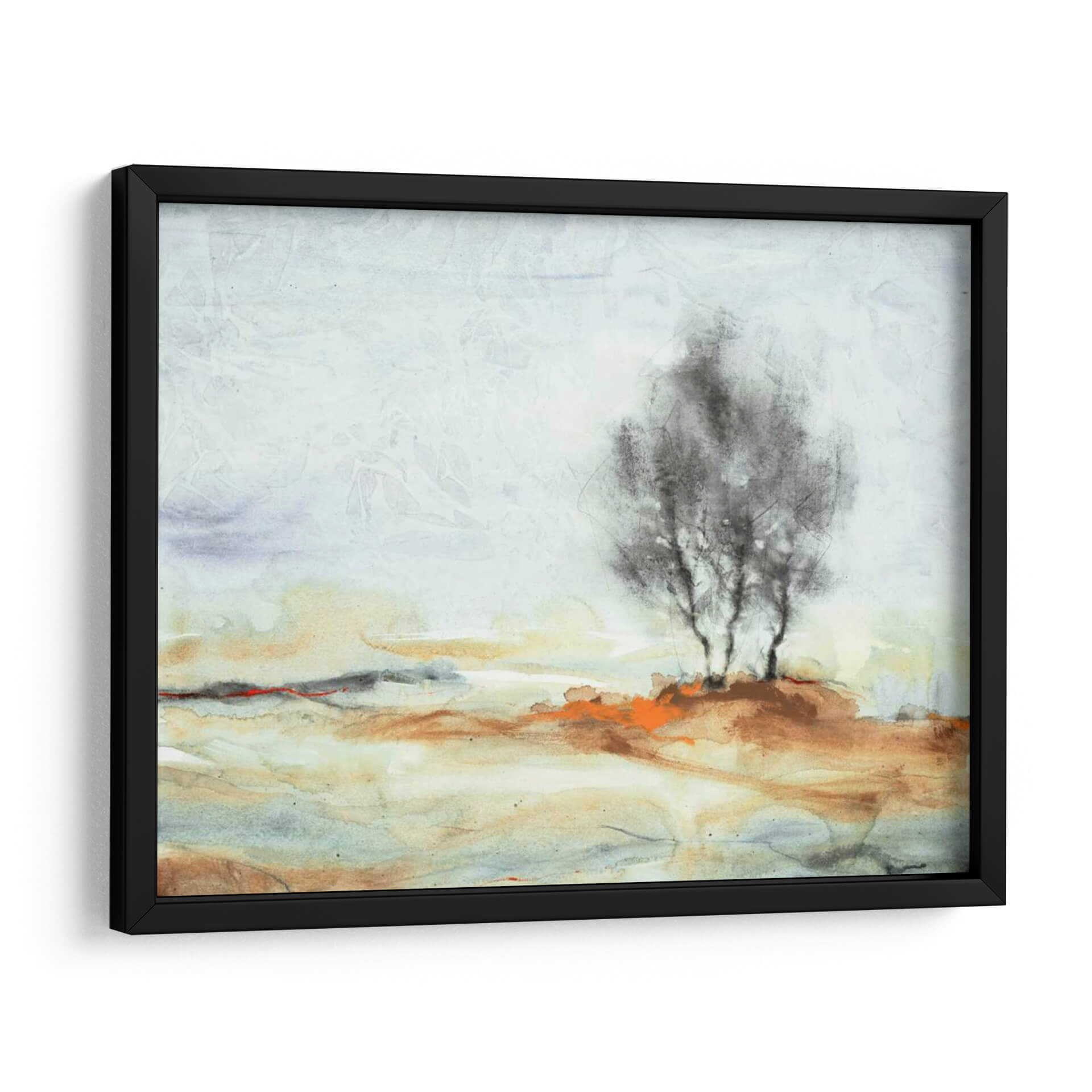 Sumérgete en la atmósfera etérea de "Tunnelscape 4", una obra de arte contemporáneo que evoca una sensación de profundidad y serenidad. Este cuadro decorativo presenta un paisaje estilizado con árboles solitarios que emergen de una tierra texturizada, enmarcado por un cielo sutilmente arremolinado y una paleta de colores que combina tonos tierra cálidos, grises suaves y un toque vibrante de naranja. La técnica pictórica, que recuerda a la acuarela o al lavado de tinta, crea una textura visual rica y un efecto casi onírico. Las pinceladas sueltas y las capas transparentes invitan a la contemplación, convirtiendo esta pieza en un punto focal ideal para espacios que buscan transmitir calma y sofisticación. "Tunnelscape 4" es perfecto para añadir un toque de arte abstracto y evocador a tu sala de estar, dormitorio u oficina, creando un ambiente introspectivo y moderno. Su composición equilibrada y su paleta de colores versátil permiten que se integre armoniosamente en diversos estilos decorativos, desde el minimalista hasta el bohemio, aportando una dosis de arte contemporáneo y elegancia discreta a tu hogar.