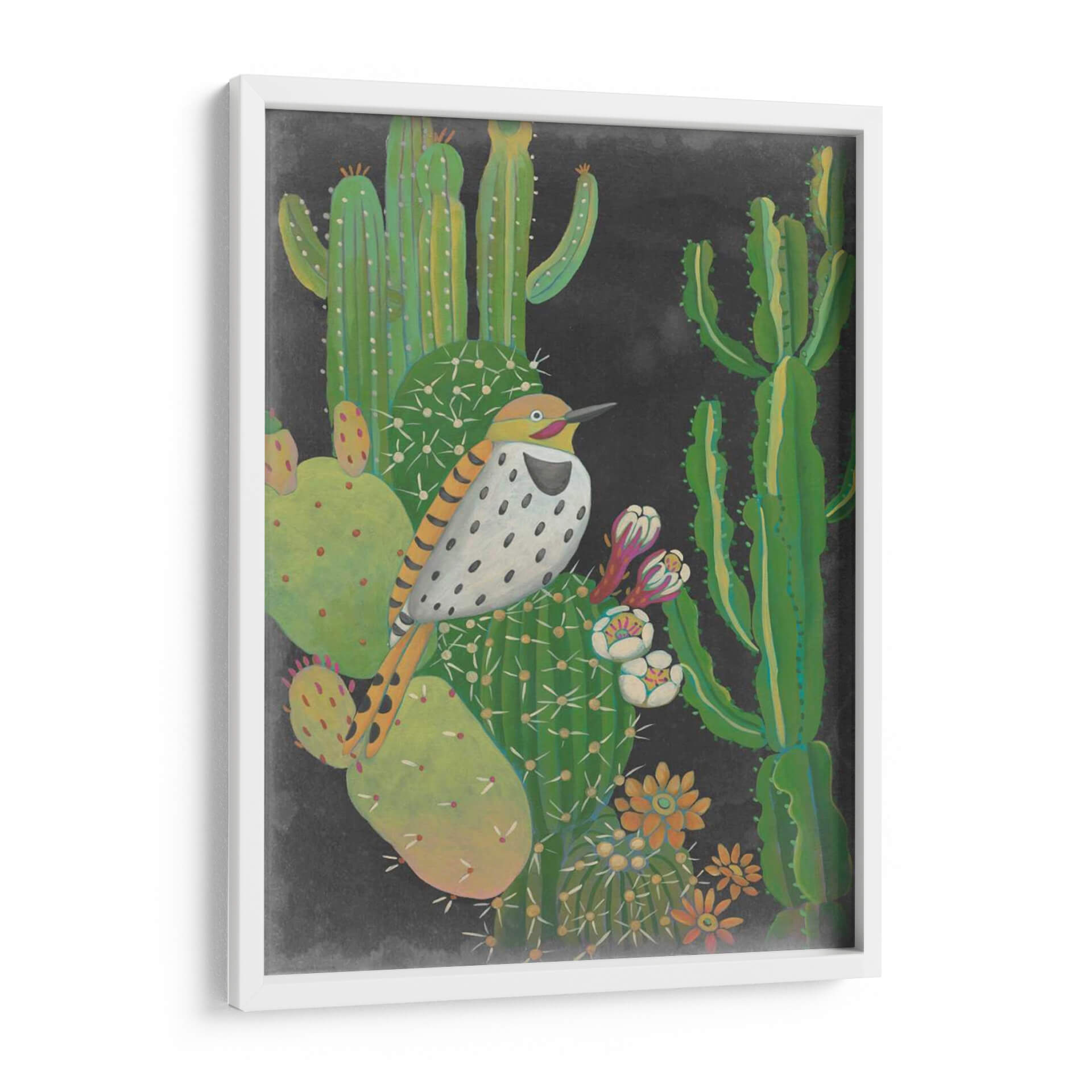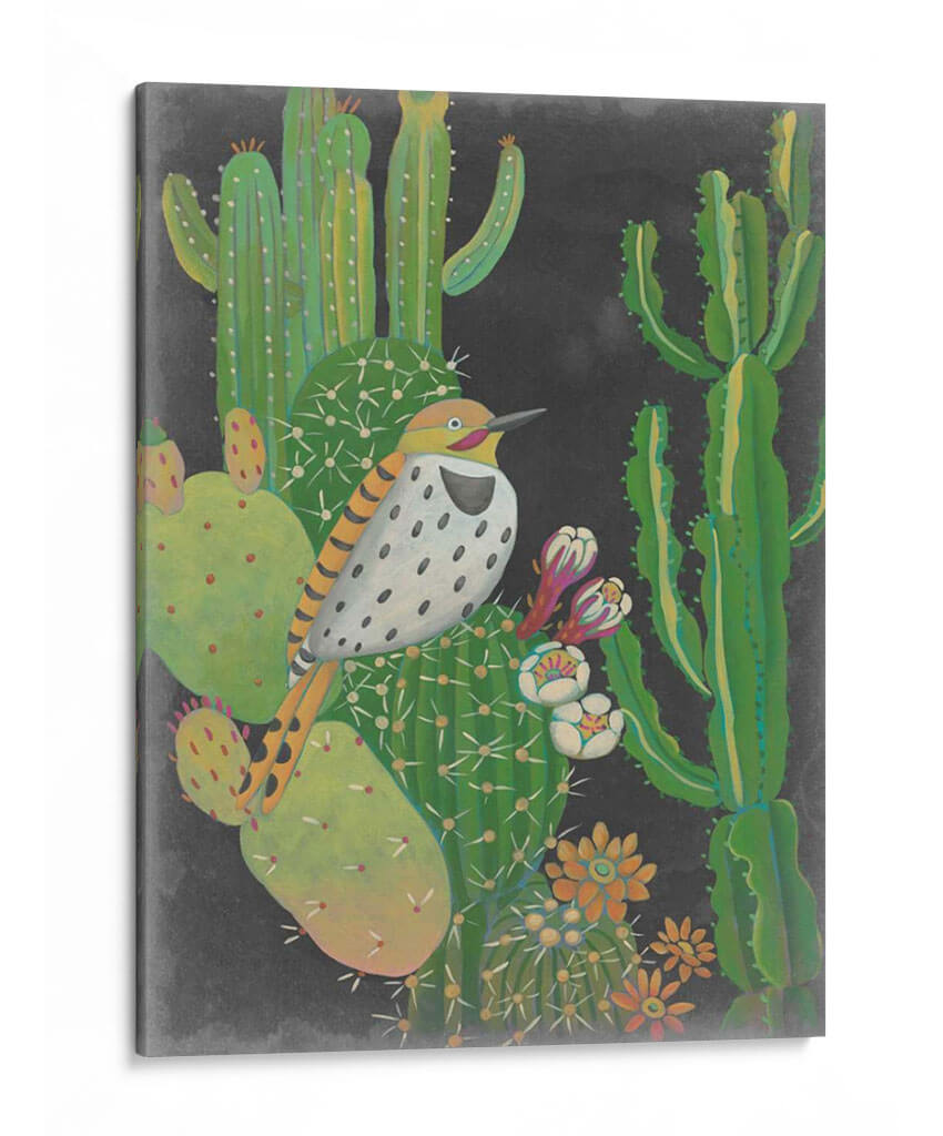 Sumérgete en la serena belleza del desierto con nuestro cuadro decorativo 'Twilight Del Desierto I', una obra de arte cautivadora de Chariklia Zarris. Esta pieza presenta una vibrante escena del desierto, con cactus majestuosos de diversas formas y tamaños emergiendo de un fondo oscuro y misterioso. Un pájaro de plumaje distintivo, con detalles en blanco y negro y toques de amarillo y naranja, se posa delicadamente sobre un cactus, contemplando el entorno con serenidad. La paleta de colores, dominada por verdes intensos de los cactus, contrastados con los tonos tierra y ocres del pájaro y las flores silvestres que salpican la base, crea una atmósfera de calma y conexión con la naturaleza. El estilo artístico, que combina elementos realistas con un toque de fantasía, convierte esta obra en un punto focal ideal para cualquier espacio que busque un toque de la naturaleza salvaje y pacífica del desierto. Es perfecta para añadir vida y color a tu sala de estar, un toque de inspiración a tu oficina o serenidad a tu dormitorio. Este cuadro es una invitación a la contemplación y al disfrute de la flora y fauna del desierto en todo su esplendor.