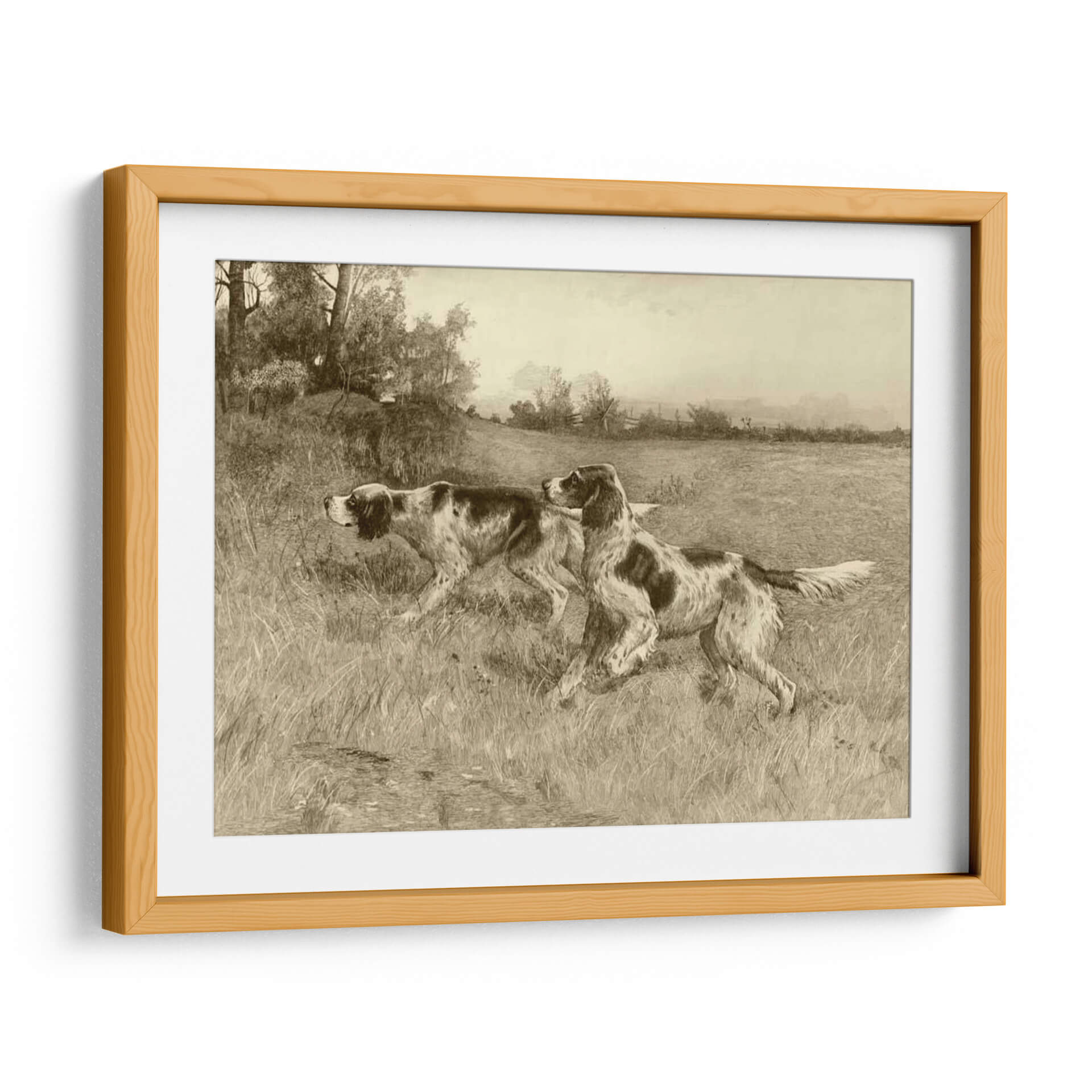 Captura la esencia de la naturaleza y la caza con "Un Momento Emocionante", una obra maestra del artista E.H. Osthaus. Este cuadro decorativo en tonos sepia evoca la intensidad y la belleza de dos perros de caza en plena acción, adentrándose en un paisaje rural sereno. La detallada representación de la hierba alta y el follaje, junto con la sutil atmósfera del cielo y el fondo, transporta al espectador a un momento de anticipación y concentración. El estilo realista y la paleta de colores cálidos y terrosos crean una atmósfera nostálgica y clásica, ideal para añadir un toque de elegancia rústica a cualquier hogar u oficina. Imagina esta pieza como el punto focal de tu sala de estar, aportando una sensación de aventura y conexión con el mundo natural. "Un Momento Emocionante" no es solo una decoración, es una ventana a una historia de instinto y armonía, perfecta para los amantes de los animales y la estética atemporal. Añade esta obra de arte a tu colección y transforma tu espacio en un santuario de calma y sofisticación.