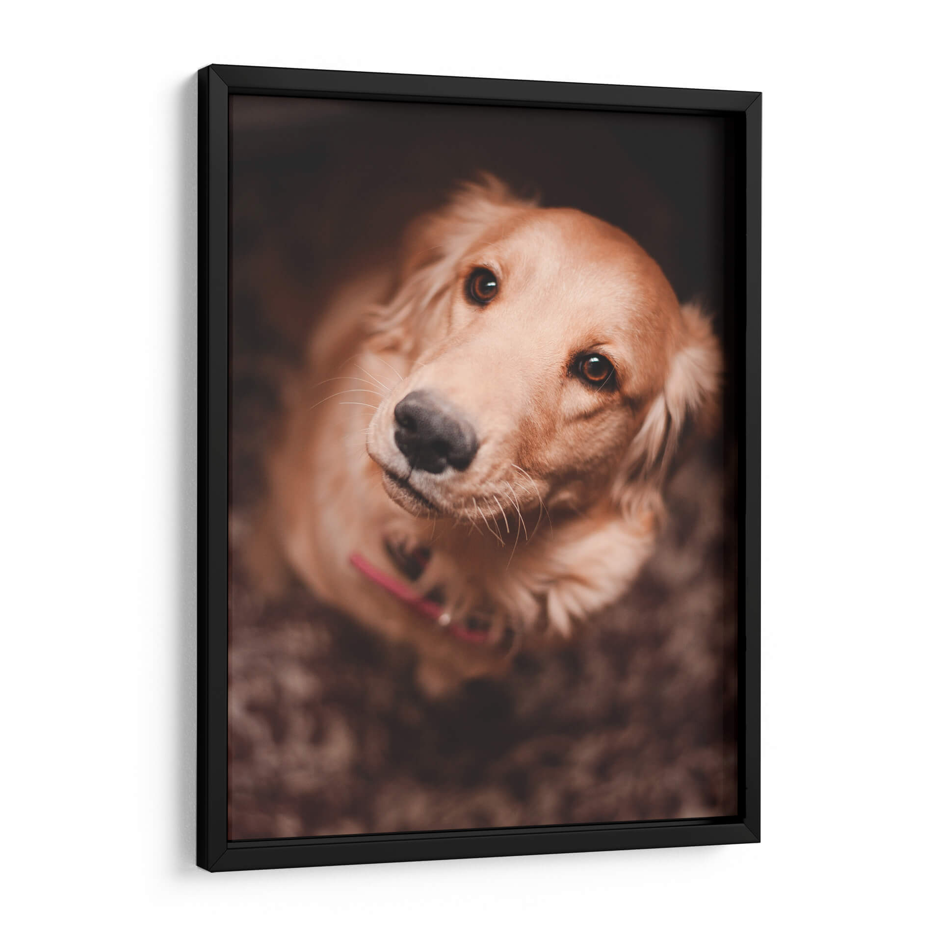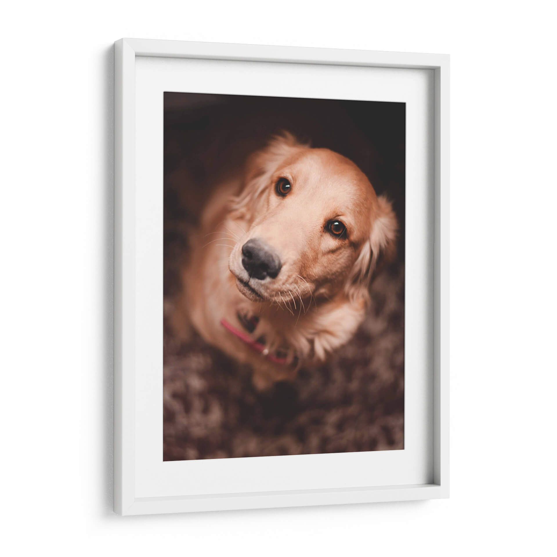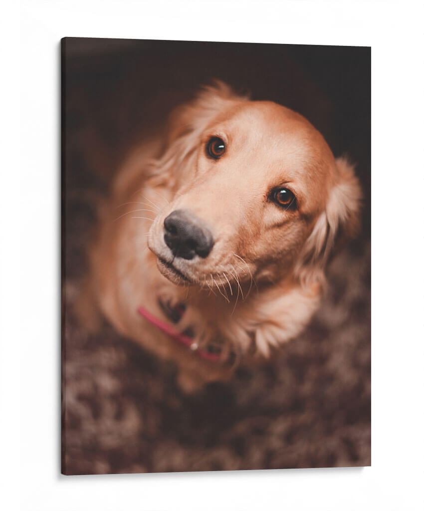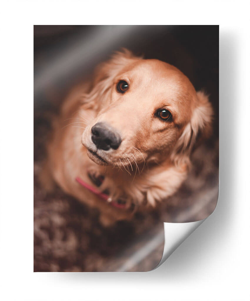 Captura la esencia de la lealtad incondicional con este conmovedor cuadro decorativo que presenta el primer plano de un Golden Retriever. La obra, titulada "Una mirada leal", evoca una profunda conexión emocional a través de sus ojos expresivos y su postura de confianza. La paleta de colores, dominada por tonos cálidos y terrosos, crea una atmósfera acogedora y serena, perfecta para cualquier espacio que busque un toque de calidez y afecto. La iluminación suave y enfocada resalta la textura del pelaje y la dulzura del animal, invitando a la contemplación y al cariño. Este retrato fotográfico, con su composición íntima y su tema universalmente apreciado, es ideal para añadir personalidad a salas de estar, dormitorios o incluso estudios y oficinas, recordándonos la alegría y el amor que nuestras mascotas nos brindan. Un detalle perfecto para amantes de los perros y para quienes buscan una pieza de arte que transmita paz y fidelidad.
