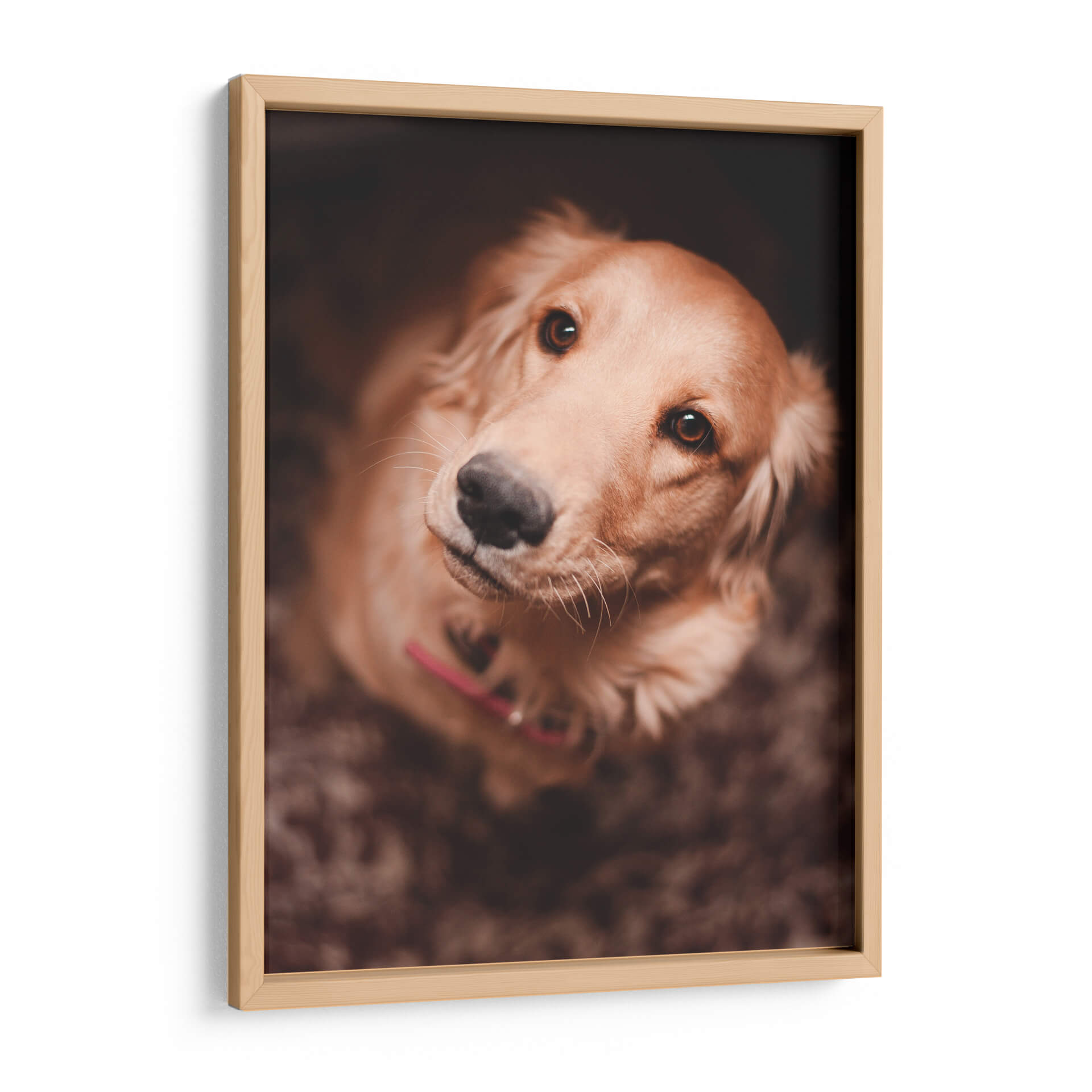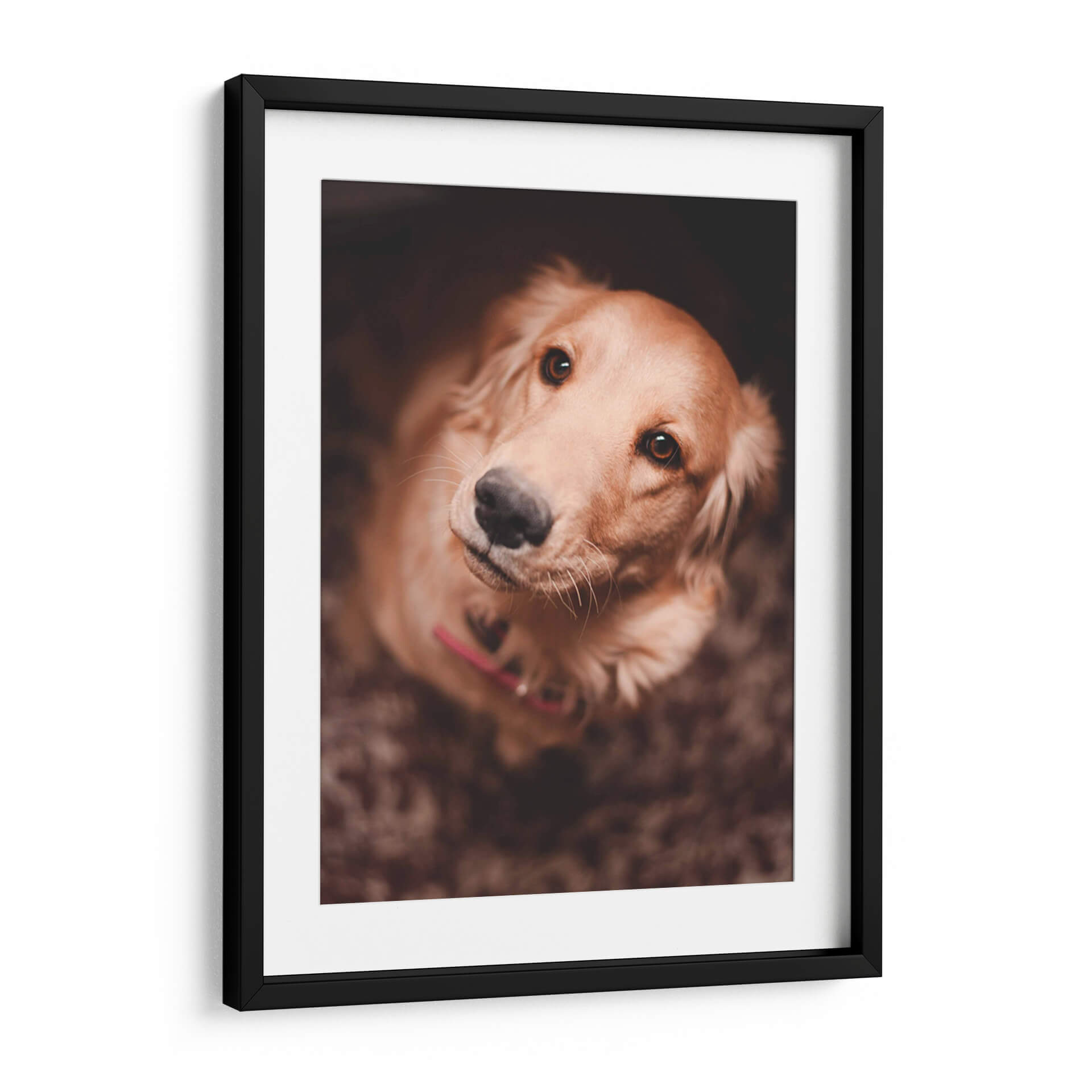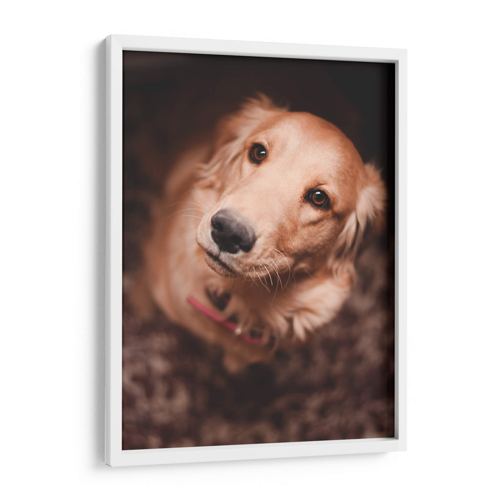 Captura la esencia de la lealtad incondicional con este conmovedor cuadro decorativo que presenta el primer plano de un Golden Retriever. La obra, titulada "Una mirada leal", evoca una profunda conexión emocional a través de sus ojos expresivos y su postura de confianza. La paleta de colores, dominada por tonos cálidos y terrosos, crea una atmósfera acogedora y serena, perfecta para cualquier espacio que busque un toque de calidez y afecto. La iluminación suave y enfocada resalta la textura del pelaje y la dulzura del animal, invitando a la contemplación y al cariño. Este retrato fotográfico, con su composición íntima y su tema universalmente apreciado, es ideal para añadir personalidad a salas de estar, dormitorios o incluso estudios y oficinas, recordándonos la alegría y el amor que nuestras mascotas nos brindan. Un detalle perfecto para amantes de los perros y para quienes buscan una pieza de arte que transmita paz y fidelidad.