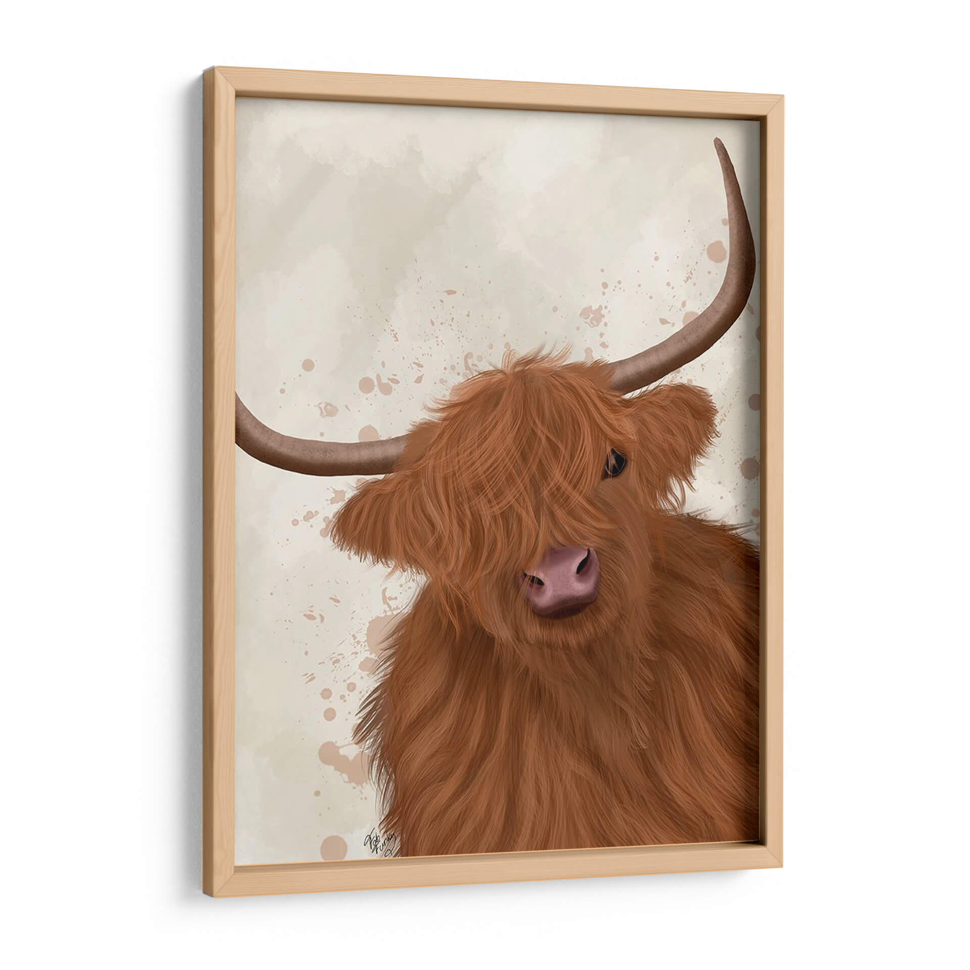 Este cautivador cuadro decorativo de una vaca Highland de estilo "cow punk" es una pieza única que añade personalidad y calidez a cualquier espacio. La obra presenta un retrato cercano de este majestuoso animal, con su característico pelaje largo y ondulado de tonos rojizos y marrones que casi oculta sus ojos. El artista Fab Funky ha capturado la esencia rústica y un toque de rebeldía con una técnica digital que imita texturas y salpicaduras sutiles, creando un efecto visual dinámico sobre un fondo neutro y texturizado en tonos beige y ocre. La paleta de colores cálidos y terrosos hace que esta pieza sea increíblemente versátil, ideal para ambientes rústicos, modernos o incluso eclécticos. Su composición centrada en el rostro del animal crea una conexión instantánea y evoca sentimientos de ternura, fuerza y un espíritu libre. Este retrato de vaca Highland es perfecto para añadir un punto focal interesante a salones, dormitorios, estudios o incluso espacios comerciales que busquen un toque de originalidad y carácter. Transforma tu hogar con este arte de pared que celebra la belleza de la naturaleza con un giro contemporáneo y artístico. Es una excelente opción para amantes de los animales y del arte con un toque de humor y estilo.
