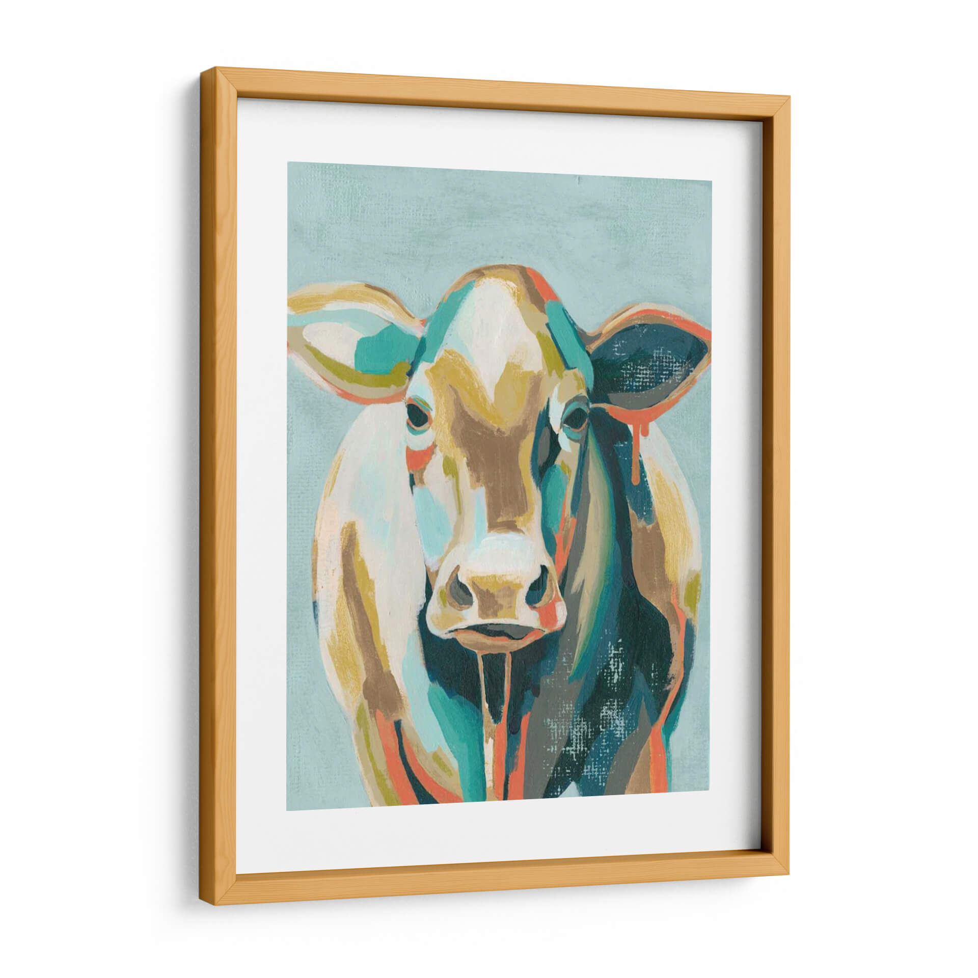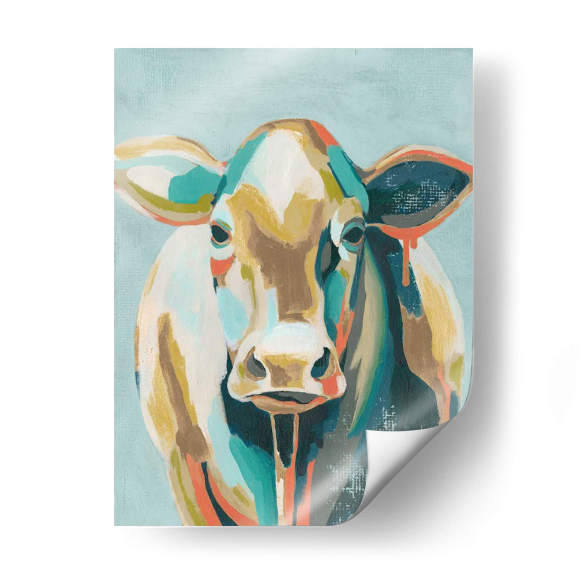 Inyecta vida y color a tus espacios con "Vacas Coloridas II", una obra de arte vibrante del artista Grace Popp. Este cuadro decorativo presenta un retrato abstracto de una vaca, donde la forma familiar se reinterpreta a través de pinceladas audaces y una paleta de colores ecléctica. Los tonos tierra se entrelazan con toques de turquesa, naranja y blanco roto, creando una composición dinámica que atrae la mirada y estimula la imaginación. El fondo, de un suave azul verdoso, proporciona un contraste sereno que permite que la figura central destaque con fuerza. El estilo expresionista y la técnica que sugiere texturas y movimiento, invitan a una contemplación profunda, pero también aportan una energía juguetona y moderna. Es una pieza ideal para quienes buscan añadir un punto focal lleno de personalidad a su sala de estar, comedor o incluso una oficina. "Vacas Coloridas II" no es solo una decoración, es una declaración de estilo que evoca la alegría de la naturaleza y la creatividad contemporánea, perfecta para romper la monotonía y añadir un toque de arte único a cualquier ambiente.