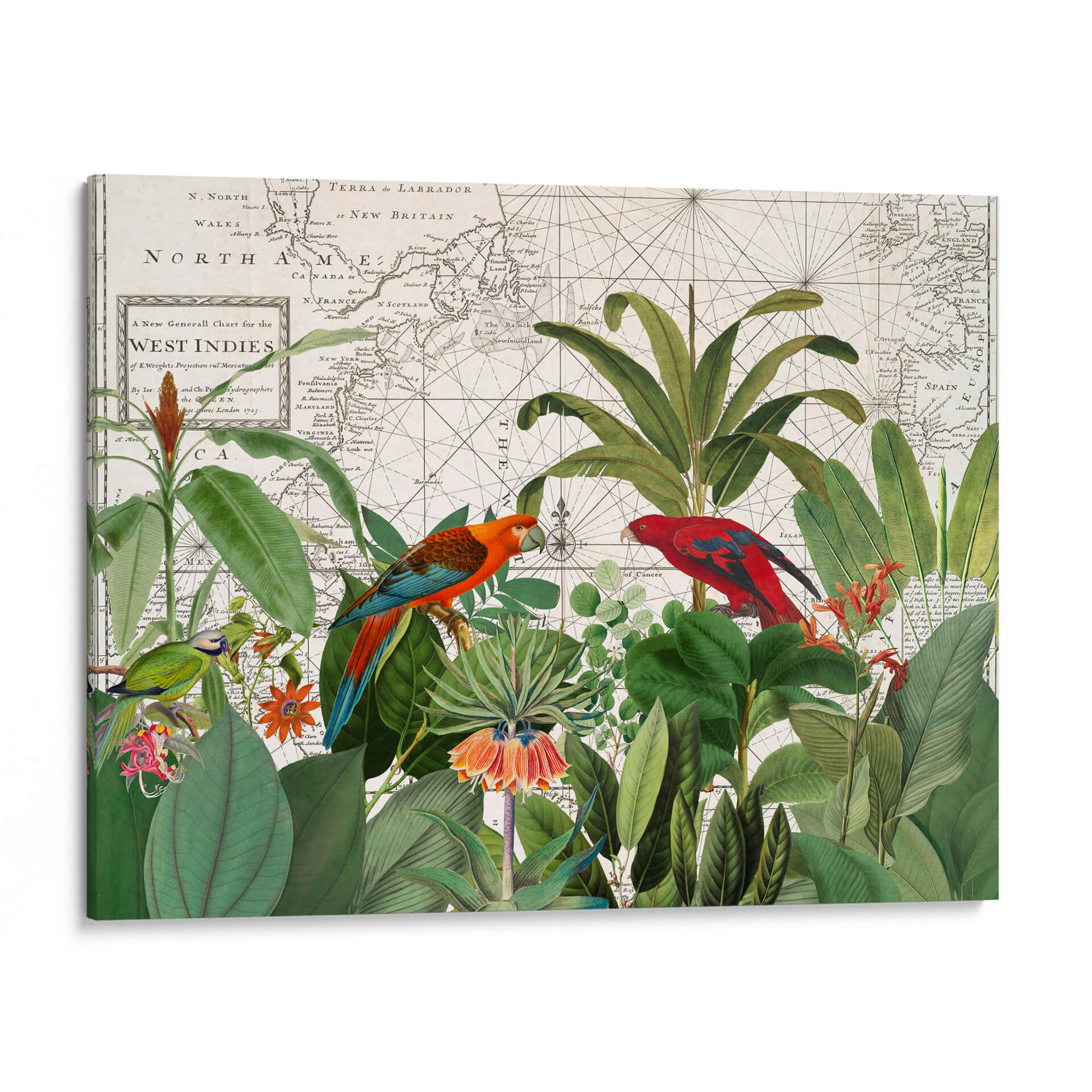 Sumérgete en un mundo de maravilla natural con nuestro cuadro decorativo 'Vida Silvestre Exótica 006', una obra maestra de Andrea Haase que evoca la exuberancia y el misterio de los trópicos. Esta pieza visualmente impactante fusiona un detallado mapa antiguo del Caribe con una vibrante representación de flora exótica y aves coloridas, creando una composición única que transporta al espectador a un paraíso perdido. Los tonos verdes profundos de las hojas tropicales contrastan maravillosamente con los vibrantes rojos y naranjas de los loros y las flores, mientras que el sutil fondo del mapa aporta un toque de historia y aventura. El estilo, una mezcla de ilustración botánica clásica y collage digital contemporáneo, resulta en una obra de arte que es a la vez nostálgica y fresca. Imagina este cuadro decorativo como el punto focal perfecto para tu sala de estar, aportando una dosis de color y sofisticación, o como un toque de serenidad y escapismo en tu estudio u oficina. 'Vida Silvestre Exótica 006' no es solo una decoración, es una ventana a un mundo fascinante, ideal para aquellos que buscan añadir carácter y un sentido de exploración a su hogar. La rica paleta de colores y la intrincada composición lo convierten en una pieza versátil, capaz de complementar tanto decoraciones modernas como más tradicionales, invitando a la contemplación y al asombro en cualquier espacio.
