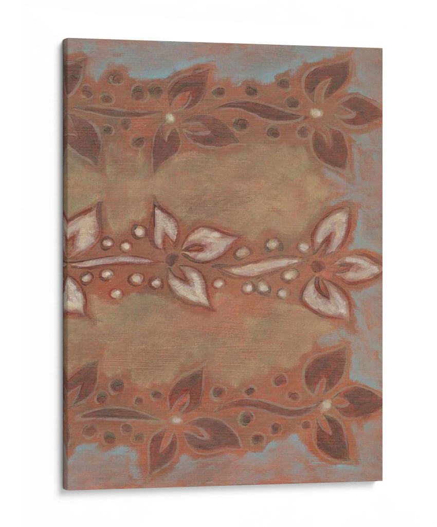 Embellece tu hogar con la delicada belleza de "Vides Florales II", una cautivadora obra de arte de Karen Deans. Esta pieza presenta un patrón repetitivo de vides florales en tonos tierra y terracota, contrastando sutilmente con un fondo en tonos azulados y beige. La composición, inspirada en motivos botánicos, evoca una sensación de calma y conexión con la naturaleza, ideal para quienes buscan añadir un toque orgánico y sereno a su decoración. Las pinceladas suaves y el estilo semi-abstracto de Deans aportan profundidad y textura, creando una atmósfera acogedora y elegante. "Vides Florales II" es perfecta para salones, dormitorios o cualquier espacio que necesite un acento de color suave y un diseño atemporal. Su versatilidad permite integrarla en diversos estilos decorativos, desde el rústico hasta el contemporáneo, aportando siempre una nota de sofisticación natural. Descubre cómo esta obra puede transformar tu ambiente, invitando a la reflexión y al bienestar.