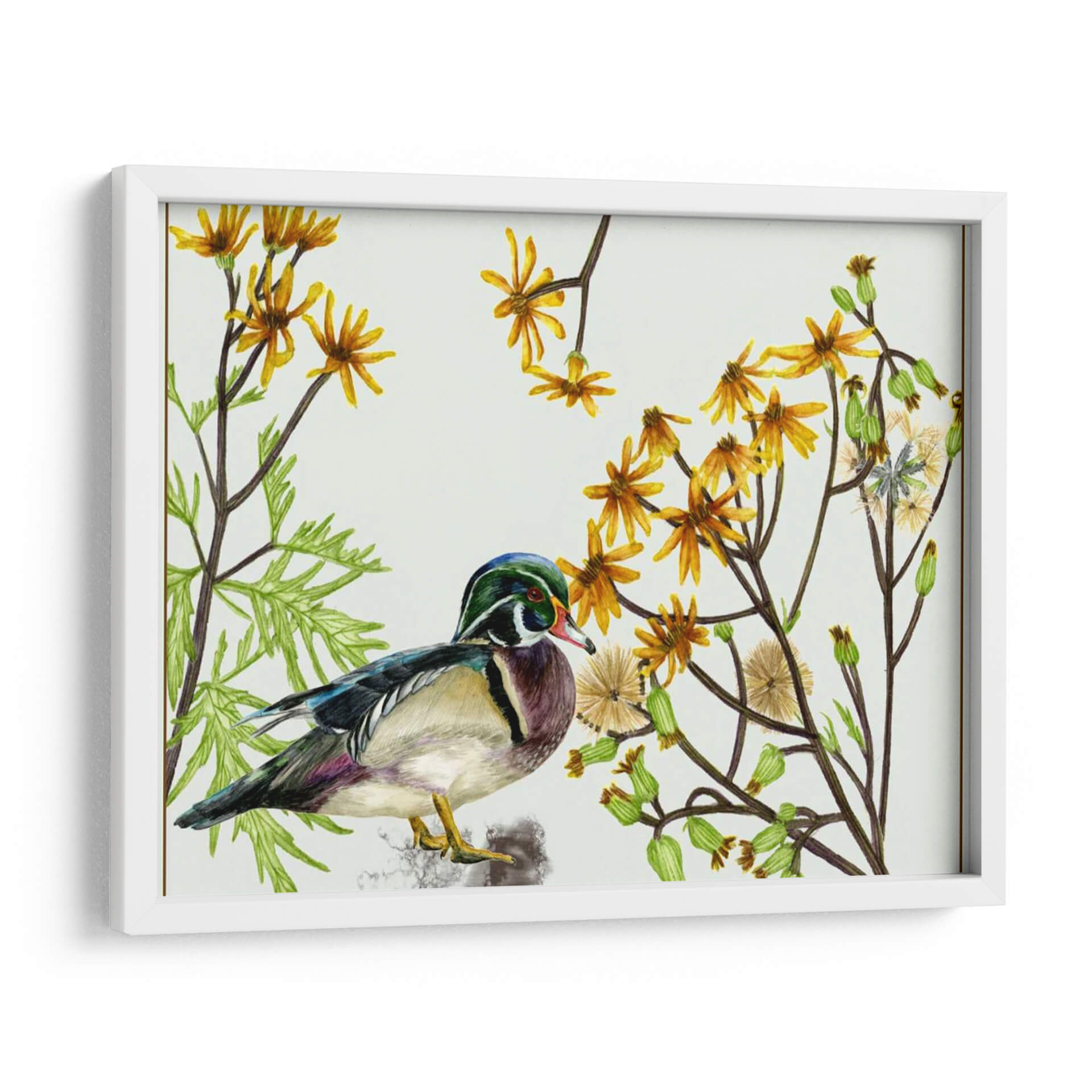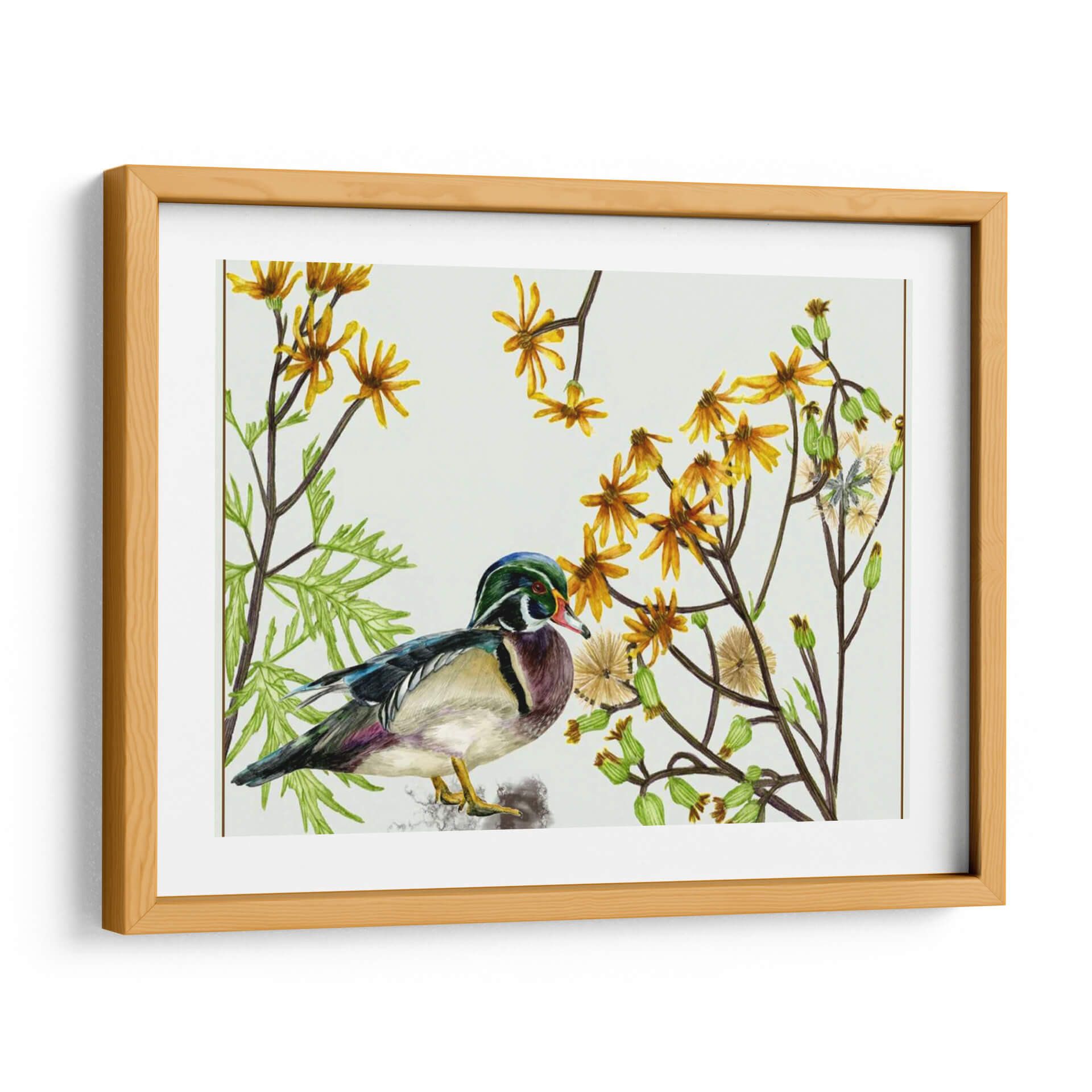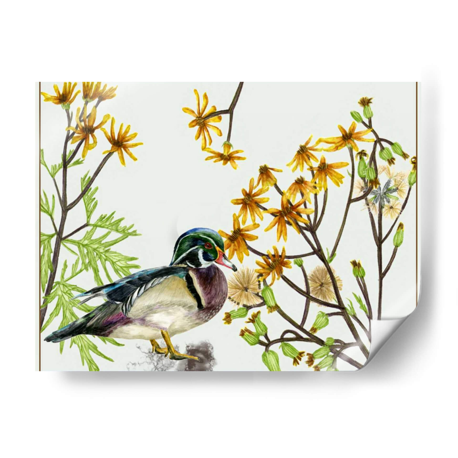 Sumérgete en la delicadeza de la naturaleza con "Viejo En La Primavera II", una obra maestra de Melissa Wang. Este cuadro decorativo captura la serena belleza de un pato mandarín posado entre vibrantes flores amarillas y exuberante follaje verde. La paleta de colores, dominada por los tonos cálidos del amarillo y los verdes terrosos, crea una atmósfera de tranquilidad y renovación, evocando la frescura de la primavera. El estilo detallado y realista de la ilustración, casi botánica, resalta la intrincada plumaje del ave y la delicadeza de las flores en pleno florecimiento. La composición equilibrada, con el ave como protagonista central rodeada por la vegetación, invita a la contemplación y aporta un toque de vida orgánica a cualquier espacio. Ideal para quienes buscan infundir calma y color en su hogar u oficina, este cuadro es perfecto para salones, dormitorios o estudios, transformando cualquier rincón en un santuario de paz natural. Su presencia evoca la armonía del ecosistema y la belleza efímera de la estación primaveral, convirtiéndose en una pieza de conversación y un reflejo de buen gusto.