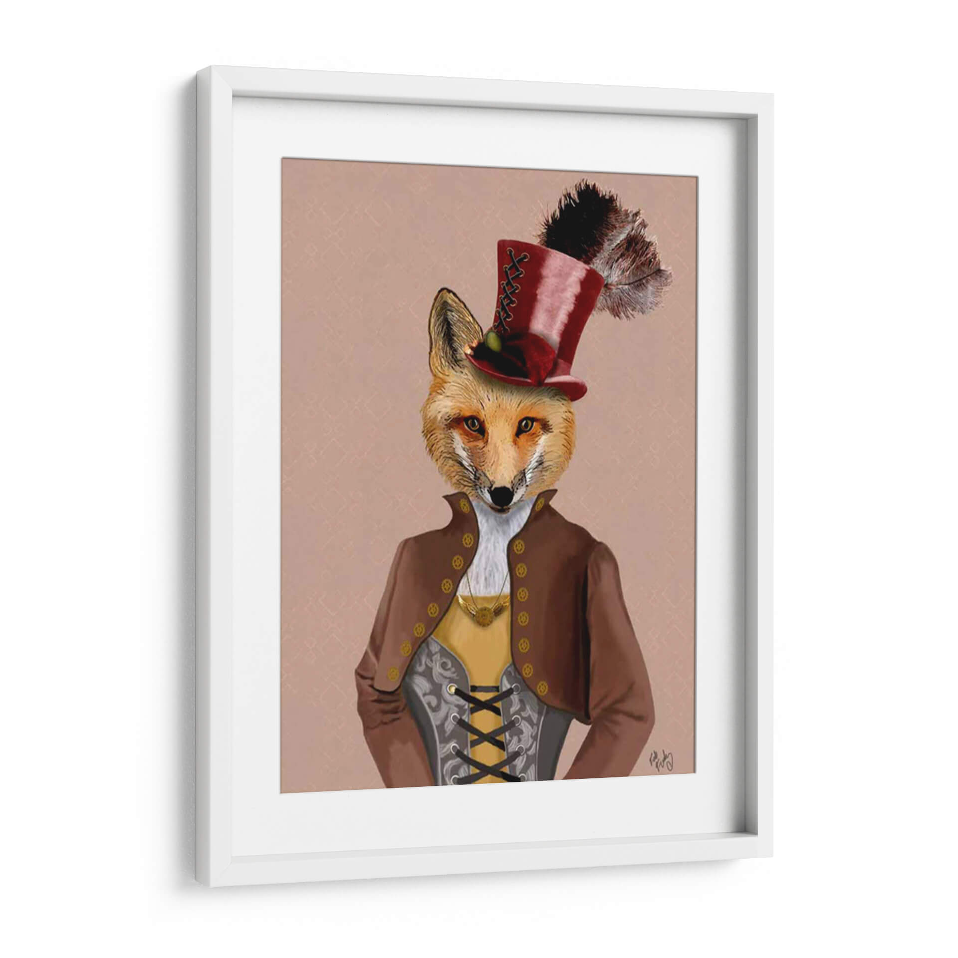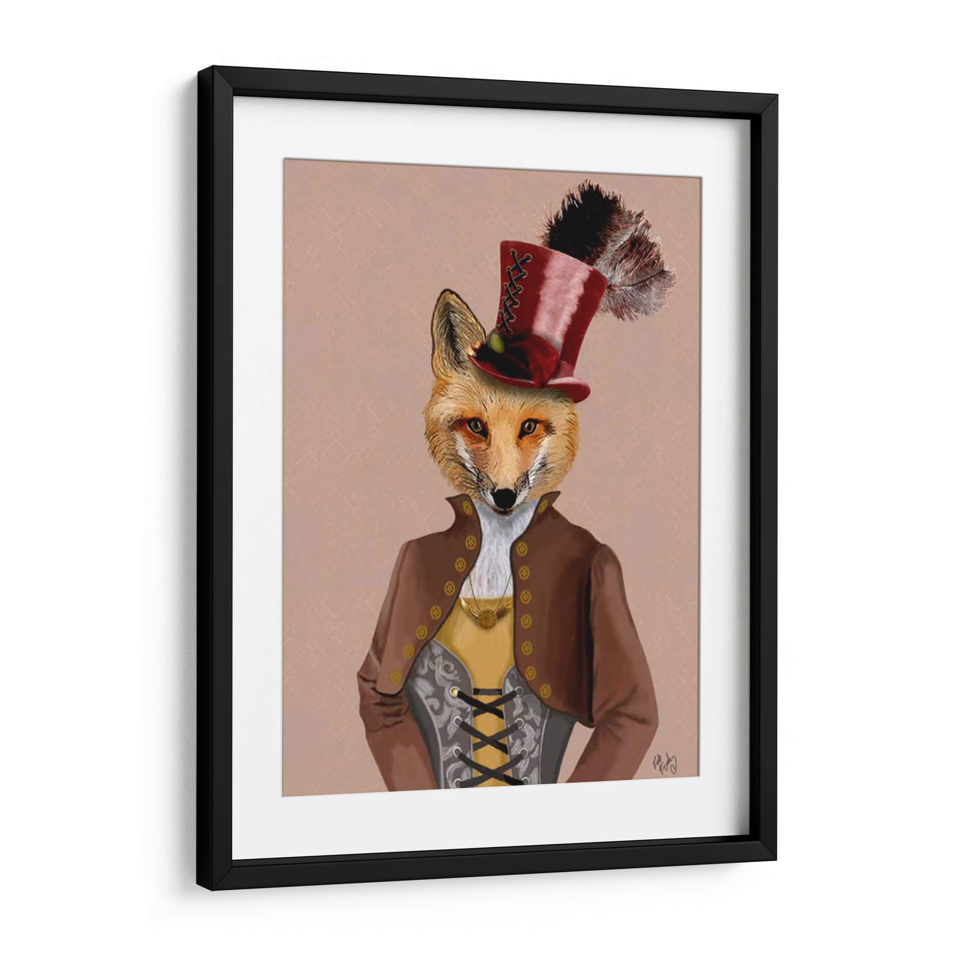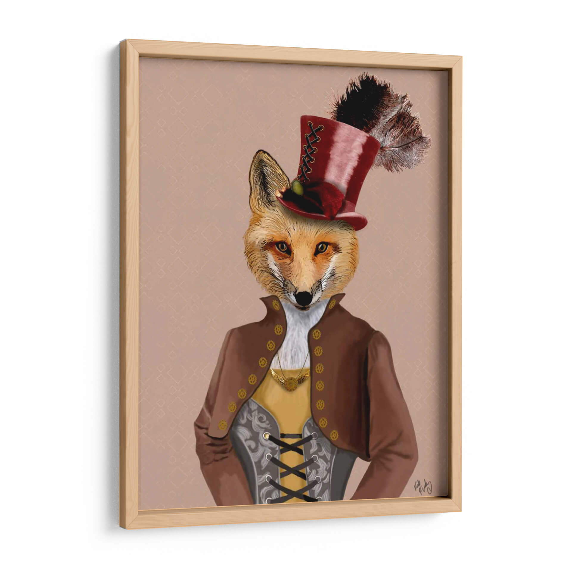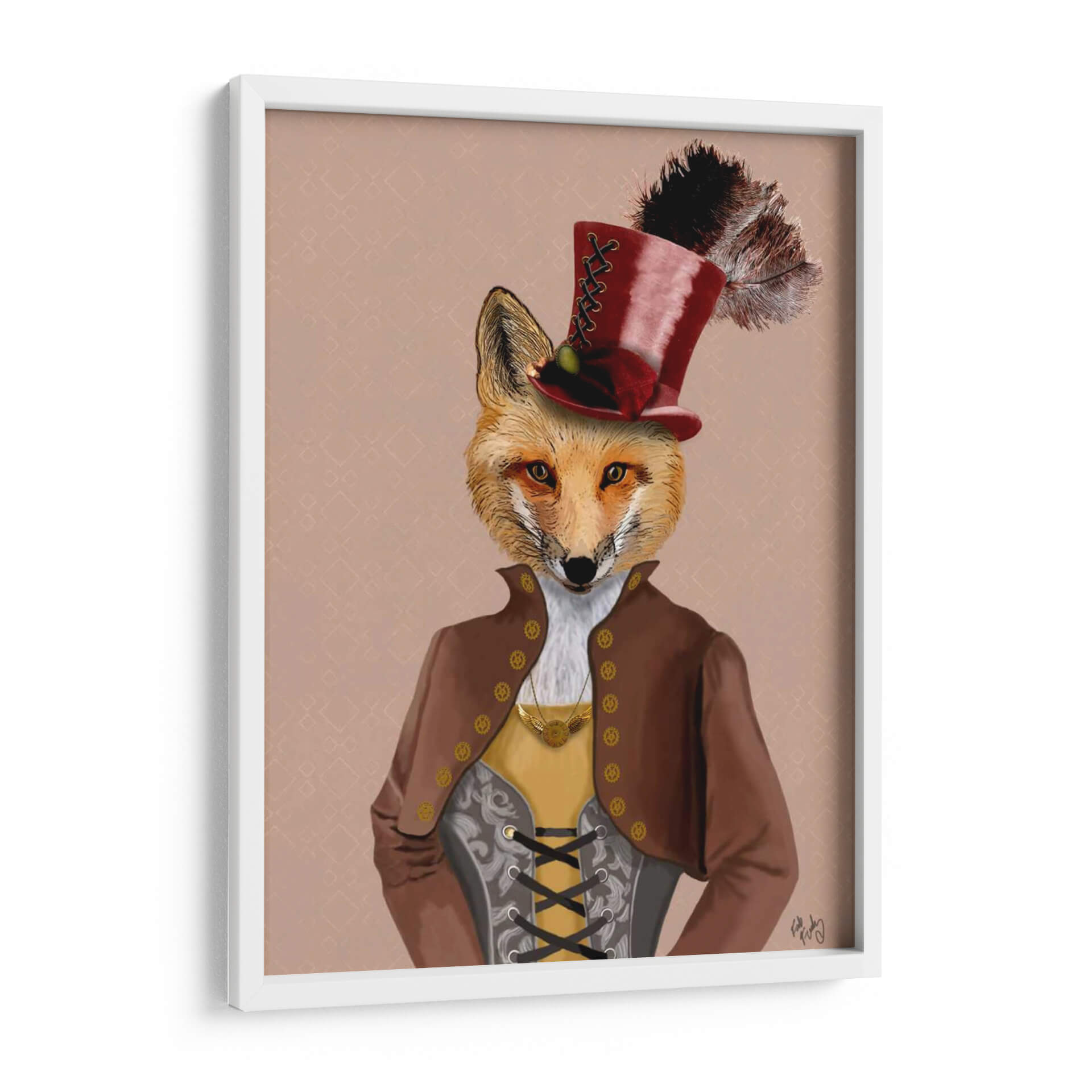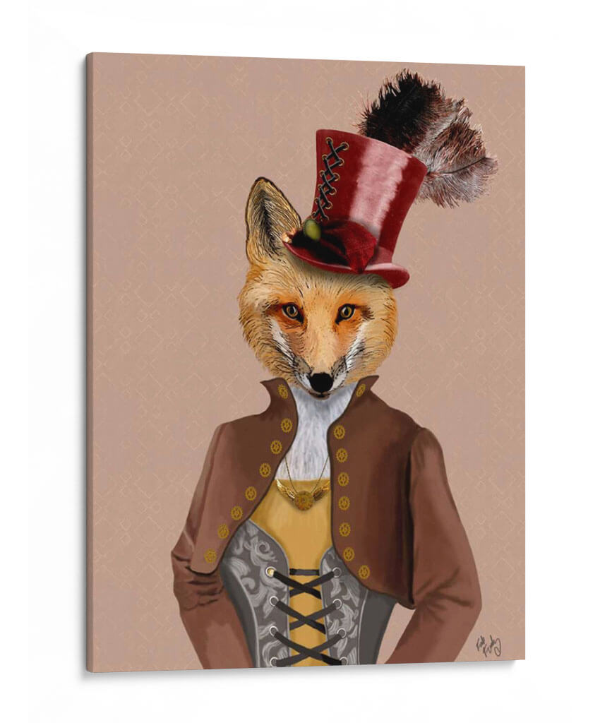 Emb erve en el mundo del encanto victoriano y la fantasía con este cautivador cuadro decorativo, "Vivienne Steampunk Fox". Esta obra maestra presenta a un zorro antropomórfico elegantemente vestido con un atuendo de inspiración steampunk, coronado con un sombrero de copa rojo adornado con plumas y cordones intrincados. La paleta de colores, dominada por tonos tierra cálidos, marrones ricos y acentos de oro, crea una atmósfera sofisticada y ligeramente misteriosa. El detallado corsé gris con cordones y el chaleco ocre complementan la chaqueta marrón texturizada, mientras que un delicado colgante alado añade un toque de magia. El fondo sutilmente texturizado proporciona un contraste suave que permite que la figura central destaque. Este cuadro decorativo es ideal para añadir un toque de originalidad y carácter a salones, estudios u oficinas. Su estilo único, que fusiona lo clásico con lo imaginativo, lo convierte en una pieza de conversación perfecta para aquellos que aprecian el arte contemporáneo con un giro narrativo. "Vivienne Steampunk Fox" no es solo una imagen, es una invitación a un universo de elegancia retrofuturista.