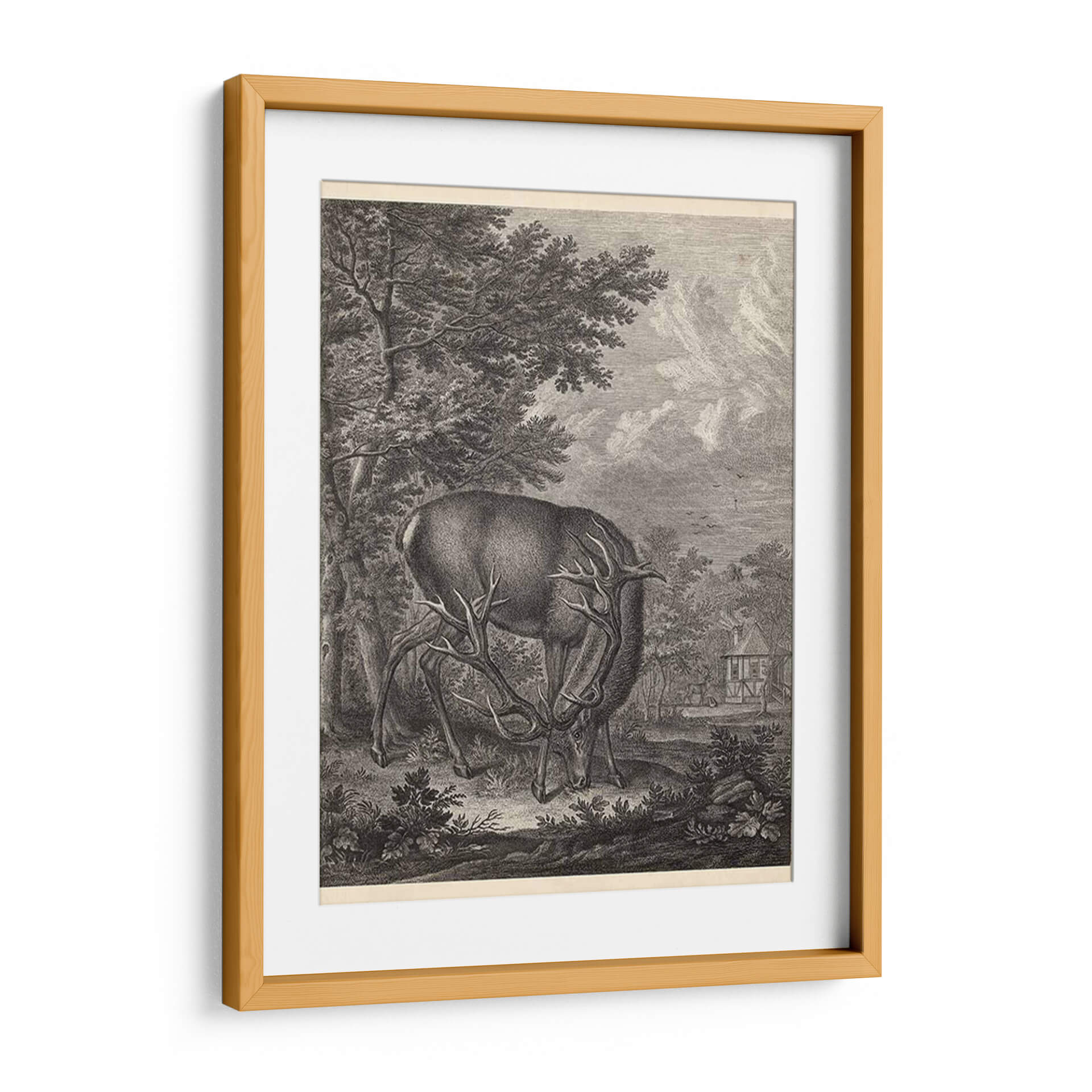 Sumérgete en la majestuosidad de la naturaleza con "Woodland Ciervo Iv", una obra de arte decorativo que captura la esencia de la vida salvaje en su hábitat natural. Este cuadro decorativo presenta un imponente ciervo con astas ramificadas, arrodillado en un entorno boscoso detallado. La técnica de grabado o linograbado, evidente en los finos trazos y el sombreado, aporta una textura rica y una atmósfera atemporal a la pieza. Los tonos monocromáticos, que varían entre negros profundos, grises sutiles y blancos luminosos, crean un contraste dramático y resaltan la figura central y el paisaje circundante. El bosque se despliega con una profusión de detalles, desde la rugosidad de los árboles hasta la delicadeza de la vegetación en primer plano, mientras que al fondo se vislumbra una pintoresca edificación, sugiriendo una coexistencia armónica entre la naturaleza y la presencia humana. La composición, con el ciervo inclinando su cabeza para pastar, irradia una sensación de paz y conexión con la tierra. Este cuadro decorativo es ideal para añadir un toque de elegancia rústica y serenidad a cualquier espacio, ya sea una sala de estar acogedora, un estudio introspectivo o un comedor con carácter. "Woodland Ciervo Iv" no es solo una imagen, es una ventana a la tranquilidad del bosque, perfecta para los amantes de la fauna y el arte clásico.