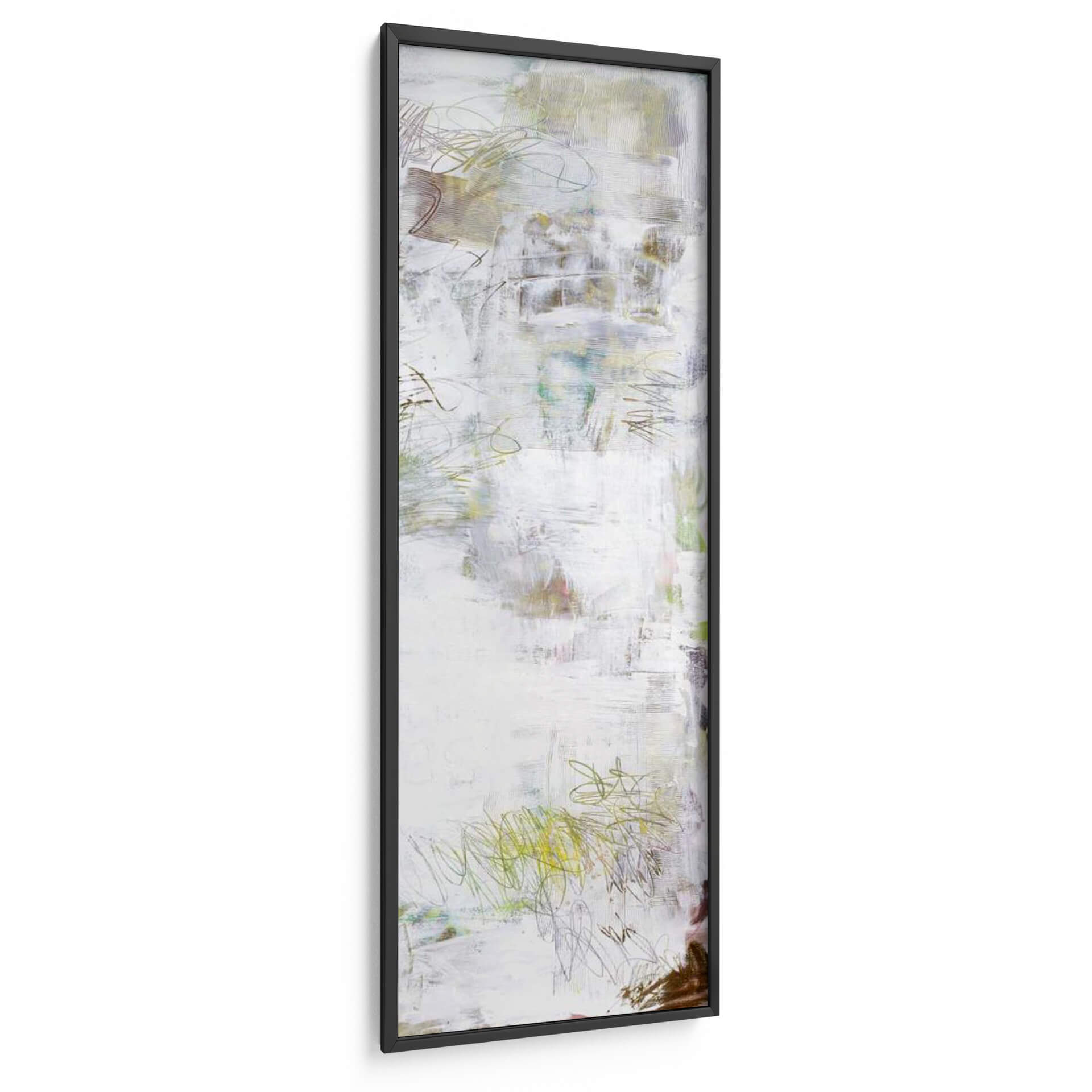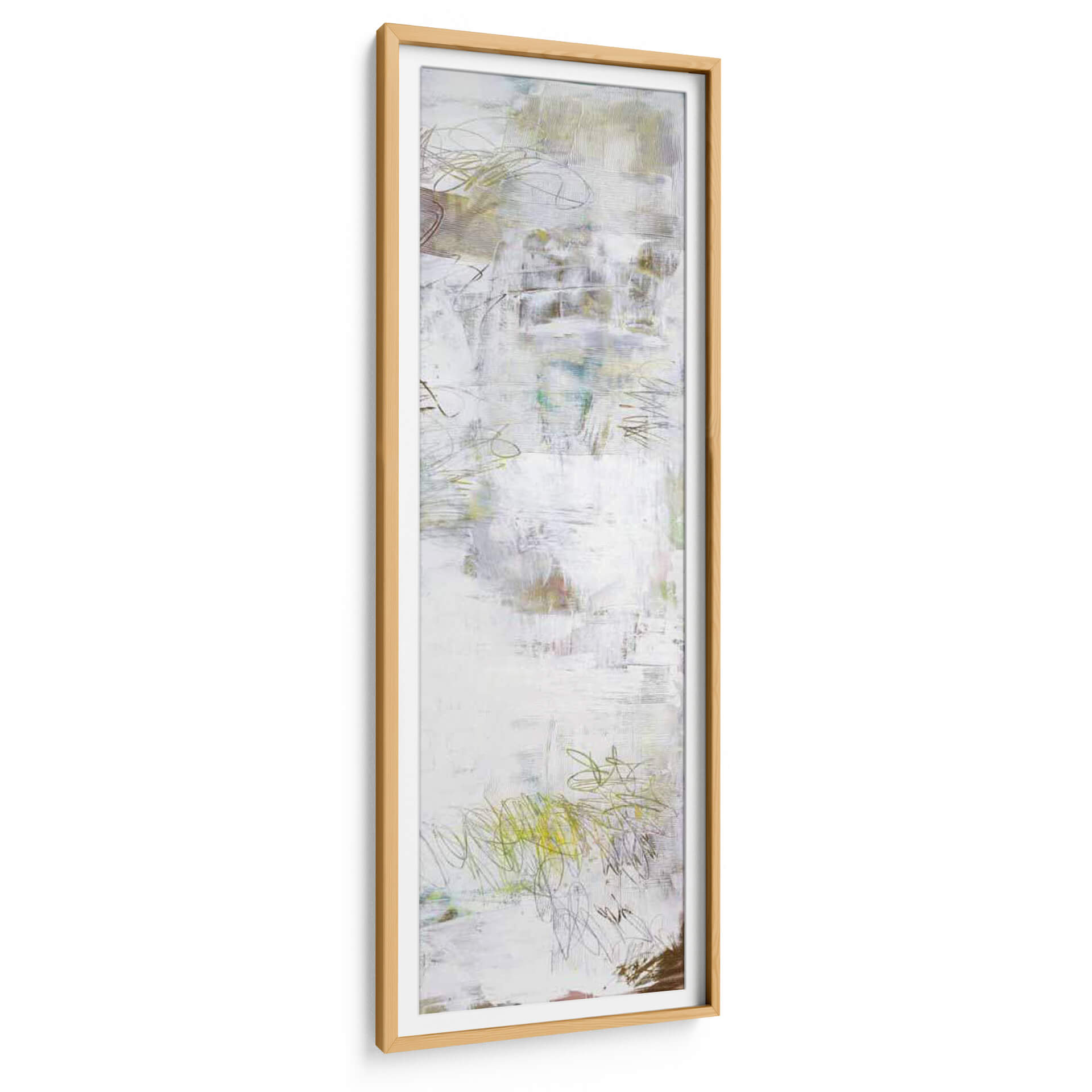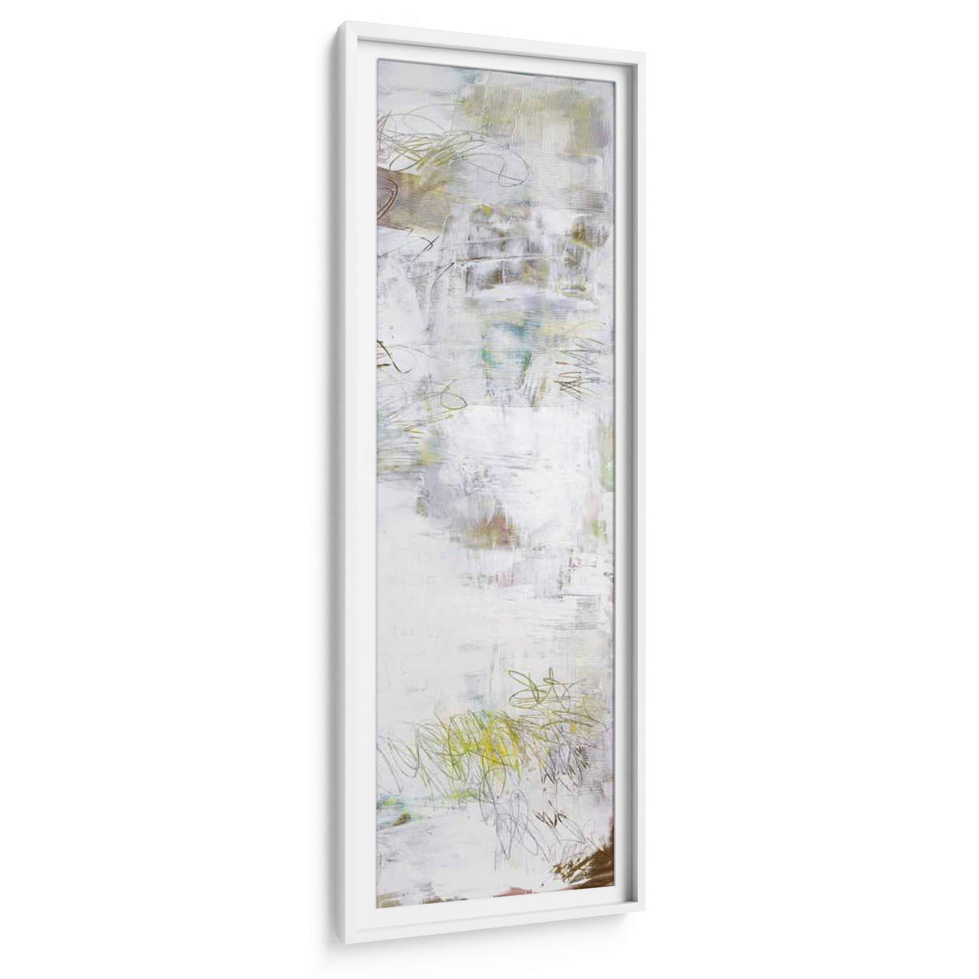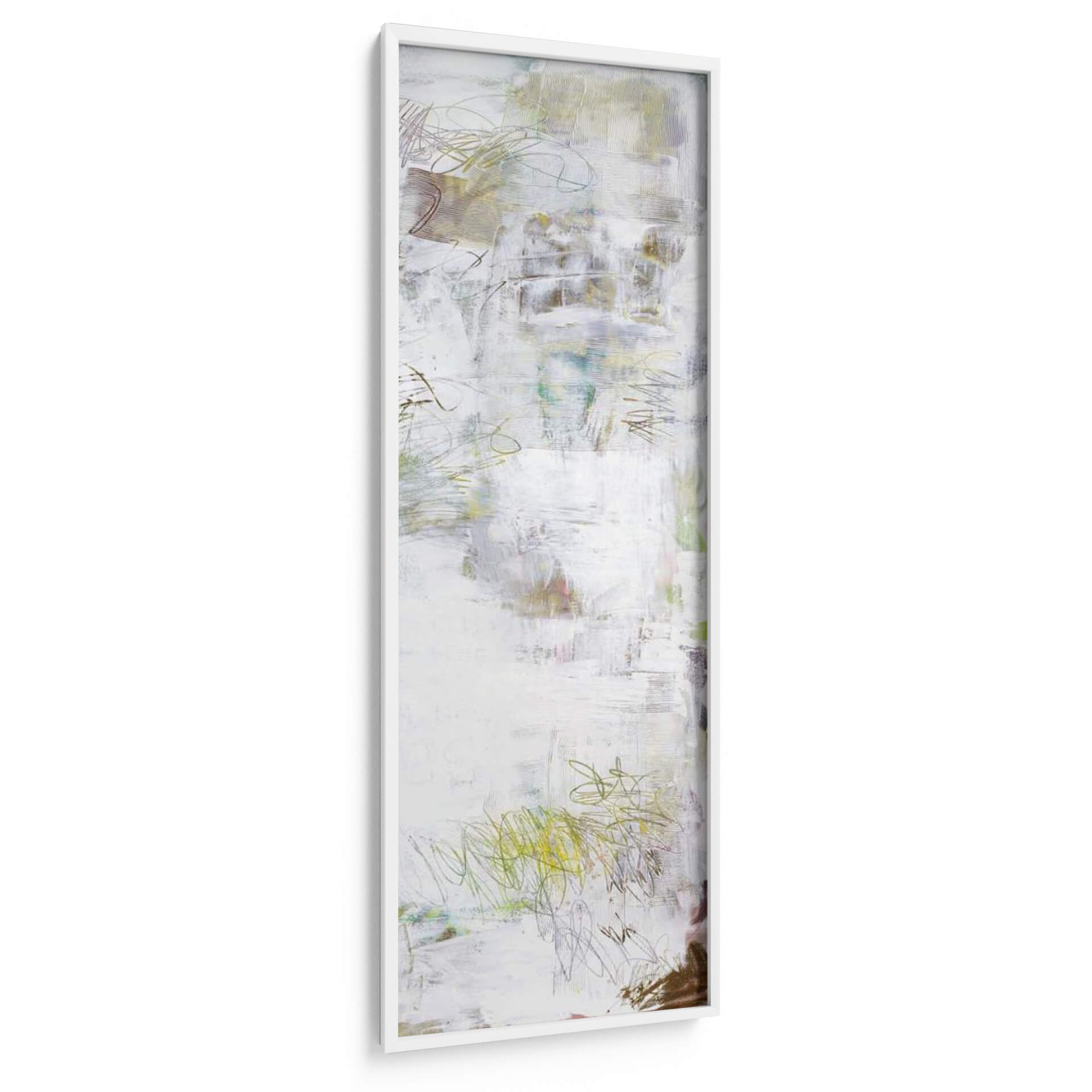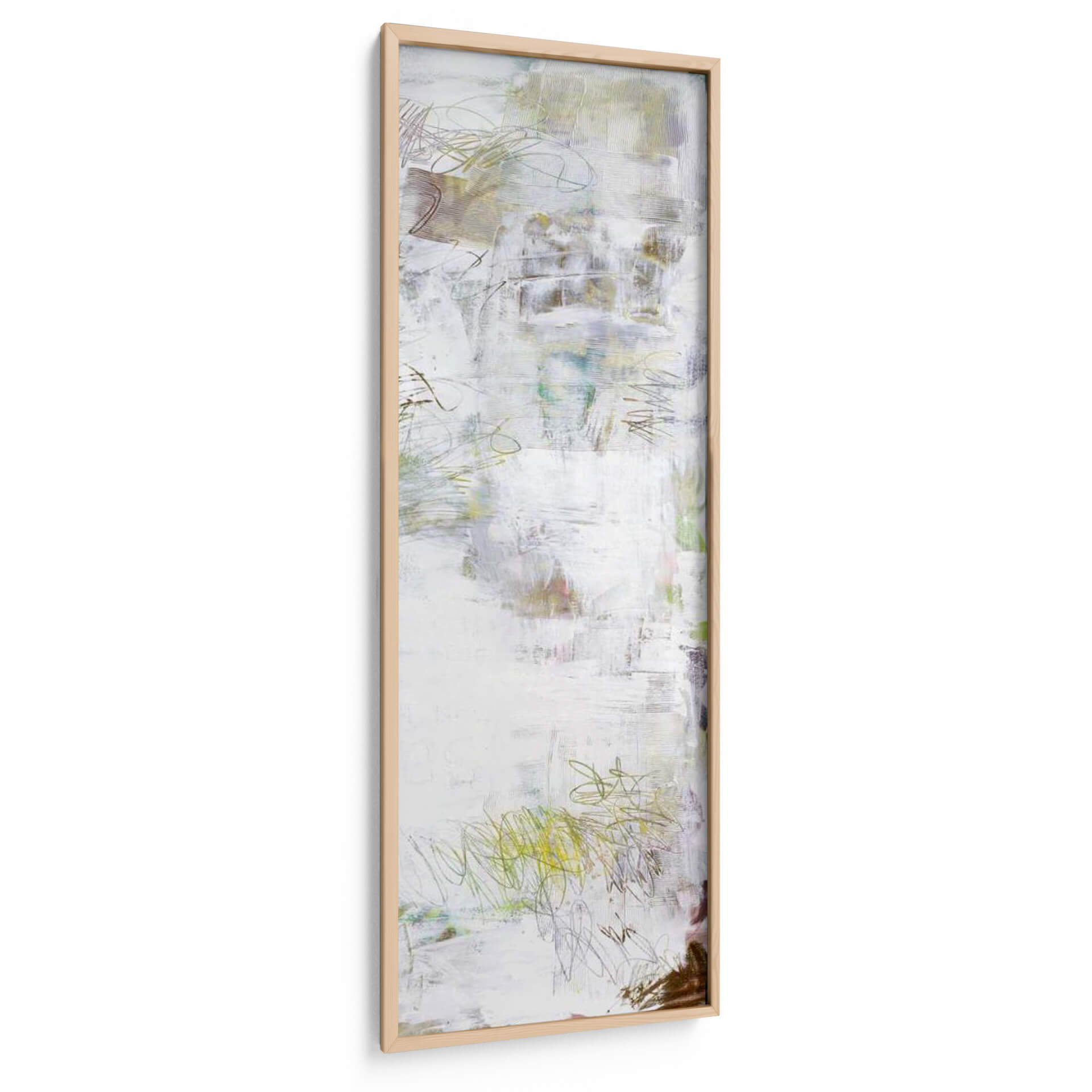 Sumérgete en la delicadeza y el movimiento de "Zapatos Blancos II" de Kent Youngstrom, una obra abstracta que invita a la contemplación. Este cuadro decorativo se caracteriza por su paleta de colores etérea, dominada por blancos luminosos, suaves grises y toques sutiles de verde y amarillo que aportan vitalidad. Las pinceladas gestuales y las líneas fluidas crean una sensación de energía contenida y espontaneidad, evocando la textura y la forma de manera abstracta. La composición, aunque abstracta, guía la mirada a través de capas de pintura, sugiriendo profundidad y dinamismo. Es una pieza perfecta para añadir un toque de sofisticación moderna y serenidad a cualquier espacio, desde una sala de estar minimalista hasta un tranquilo dormitorio o una oficina contemporánea. "Zapatos Blancos II" no es solo una decoración, sino una experiencia visual que estimula la imaginación y aporta una atmósfera de calma y elegancia sutil a tu hogar u oficina. Descubre cómo este lienzo puede transformar tu ambiente, aportando arte contemporáneo y diseño distintivo a tus paredes.