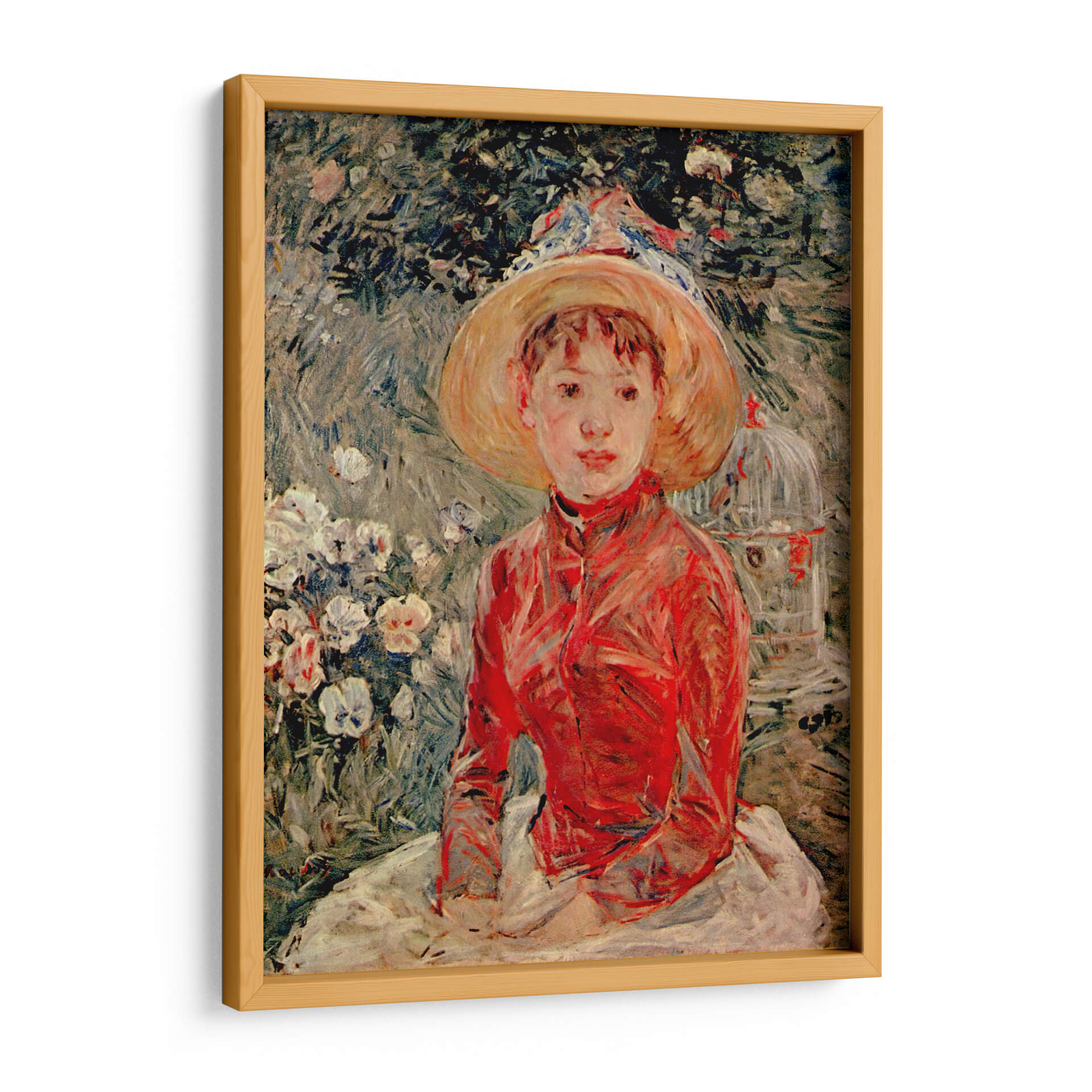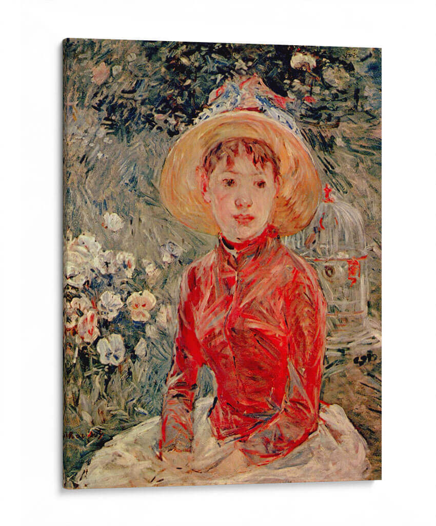 Sumérgete en la delicadeza y el encanto del impresionismo con "El corpiño rojo" de Berthe Morisot. Esta cautivadora obra maestra presenta a una joven figura femenina vestida con un vibrante corpiño rojo, coronada por un sombrero de paja de ala ancha que proyecta una suave sombra sobre su rostro. La artista captura magistralmente la luz y la atmósfera de un día al aire libre, con un fondo sugerente de vegetación exuberante y flores delicadas en tonos pastel. La pincelada suelta y expresiva, característica del estilo impresionista, da vida a la escena, transmitiendo una sensación de espontaneidad y serenidad. La paleta de colores, dominada por el intenso rojo del corpiño que contrasta con los suaves blancos y verdes del entorno, crea un punto focal cautivador. "El corpiño rojo" es una pieza que irradia una atmósfera de tranquilidad y belleza efímera, ideal para añadir un toque de sofisticación y color a cualquier sala de estar, estudio o dormitorio. Es una ventana a la sensibilidad artística de Morisot, invitando a la contemplación y al disfrute estético en tu propio espacio.