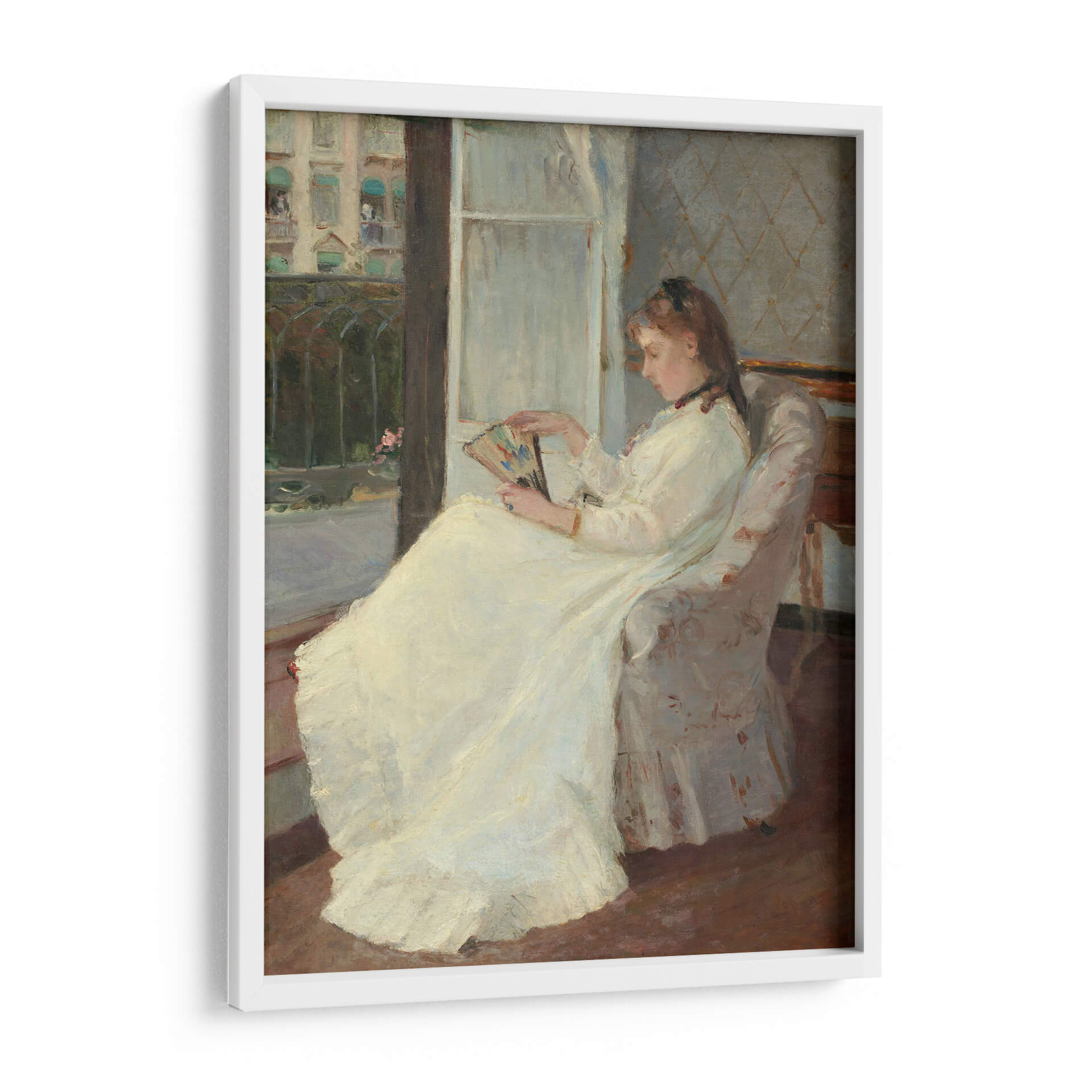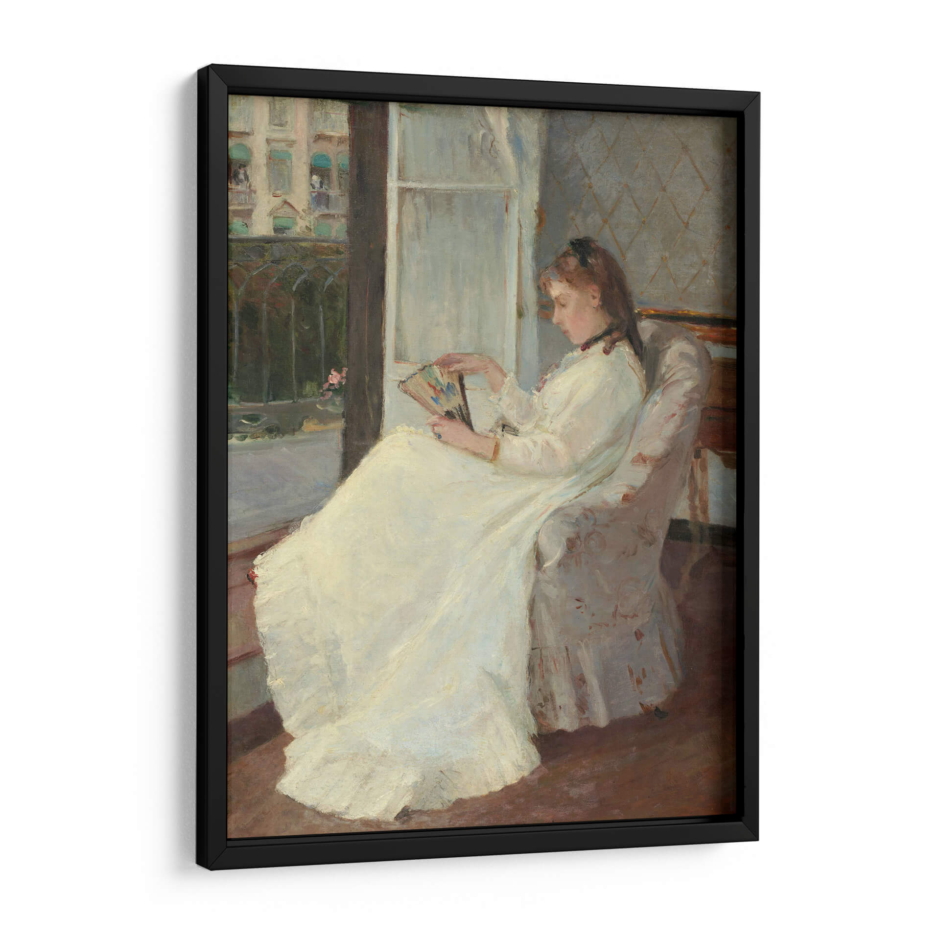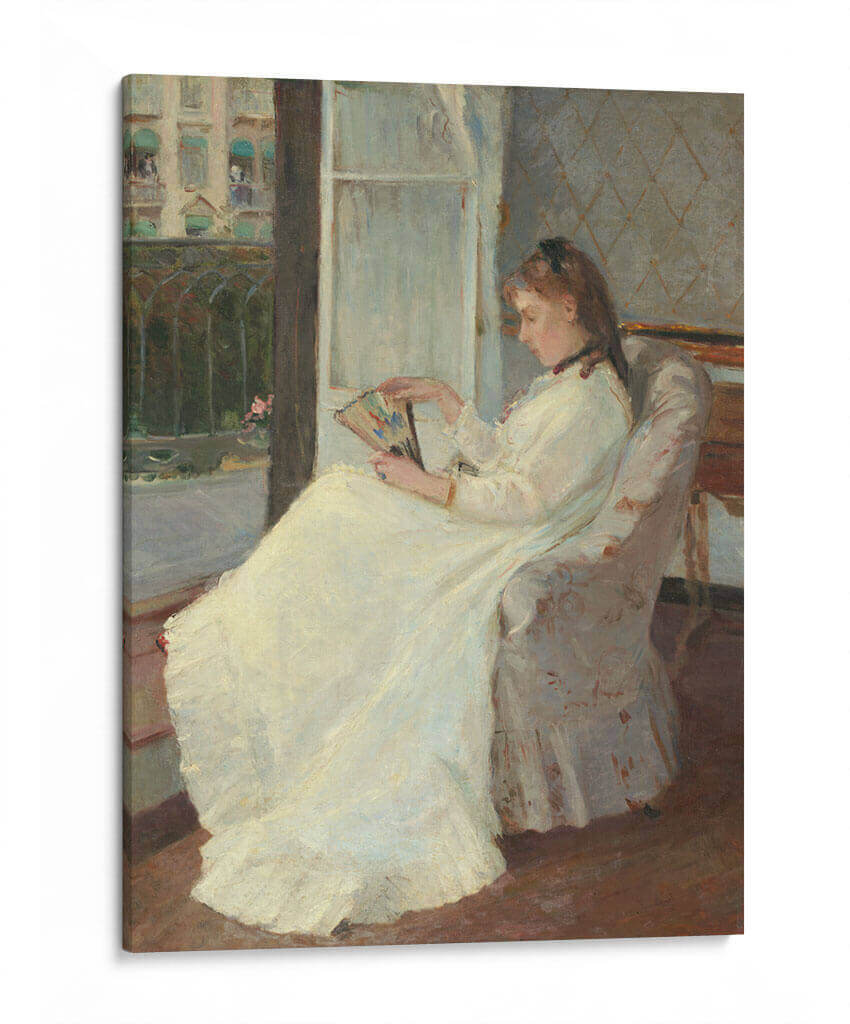 Sumérgete en la serenidad y la elegancia con "La hermana de la artista en una ventana" de Berthe Morisot. Esta cautivadora obra de arte impresionista captura un momento íntimo de contemplación, presentando a una mujer elegantemente vestida con un vestido blanco vaporoso, absorta en un abanico decorado. La suave paleta de colores, dominada por tonos cremosos y pasteles sutiles, crea una atmósfera de calma y tranquilidad. La luz, filtrada a través de la ventana abierta, baña la escena con un brillo delicado, resaltando la delicadeza de los trazos y la maestría de Morisot en la captura de la atmósfera. El fondo, con una vista sugerida de un balcón y edificios al exterior, ancla la figura en un entorno cotidiano pero lleno de encanto. Ideal para añadir un toque de sofisticación atemporal a tu sala de estar, dormitorio o estudio, este lienzo impresionista invita a la reflexión y embellece cualquier espacio con su belleza serena. Descubre la delicadeza del arte de Berthe Morisot y transforma tu hogar en una galería personal de inspiración.