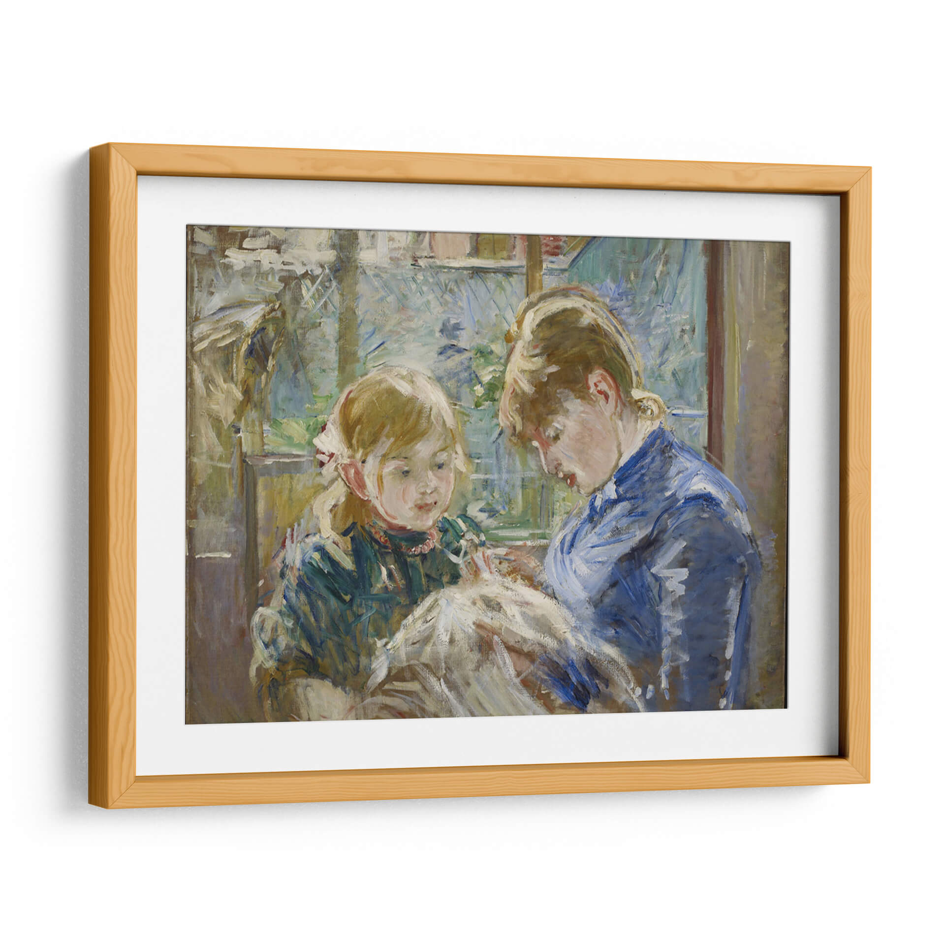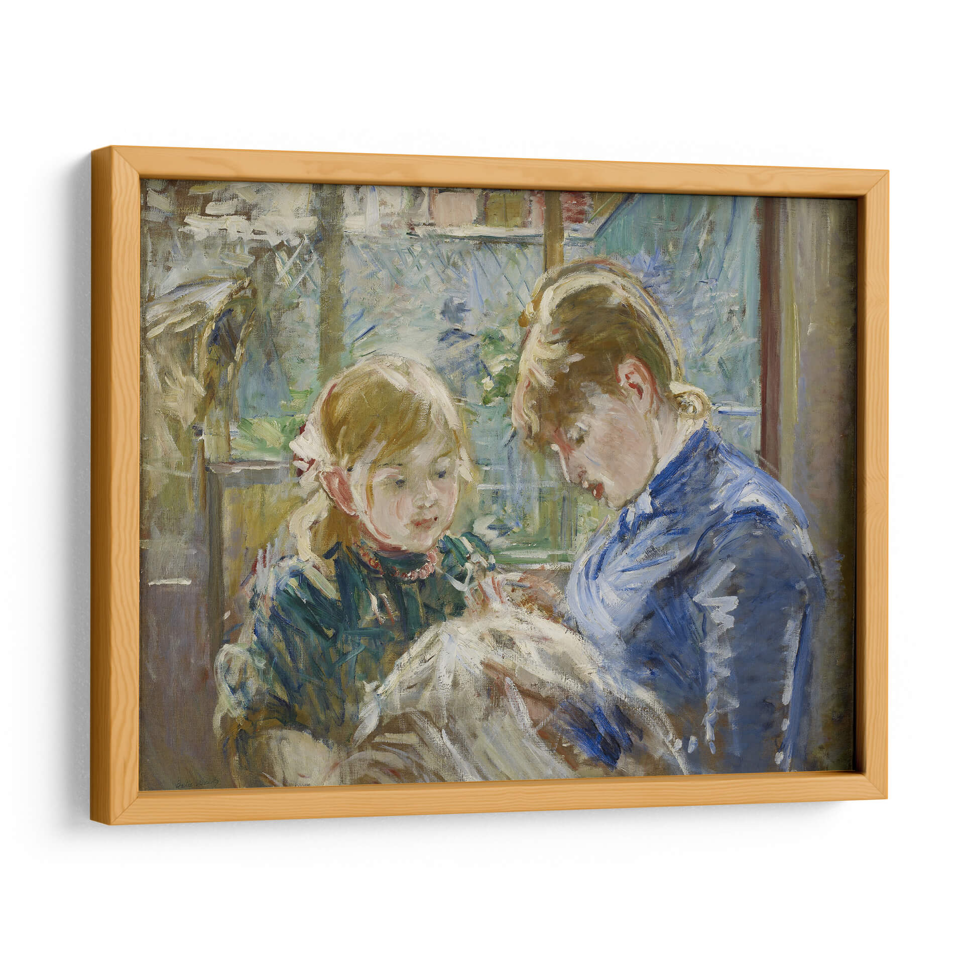Sumérgete en la ternura y la intimidad de "La hija del artista, Julie, con su niñera" de Berthe Morisot, una obra maestra impresionista que captura un momento fugaz de conexión familiar. Los pinceladas sueltas y vibrantes dan vida a una escena tierna, donde una figura adulta se inclina suavemente sobre una niña, ambas absortas en una actividad compartida. La paleta de colores, dominada por tonos azules, verdes y toques de luz cálida, crea una atmósfera serena y acogedora, evocando la luz natural que entra por una ventana. Este lienzo es ideal para añadir un toque de elegancia clásica y calidez a cualquier espacio, ya sea una sala de estar, un dormitorio o un estudio. Su estilo impresionista, con su énfasis en la captura de la luz y el movimiento, ofrece una perspectiva fresca y emotiva sobre la vida cotidiana. "La hija del artista, Julie, con su niñera" no es solo una pieza decorativa, sino una ventana a un mundo de afecto y momentos preciosos, perfecta para quienes buscan arte que hable al corazón y embellezca su hogar.