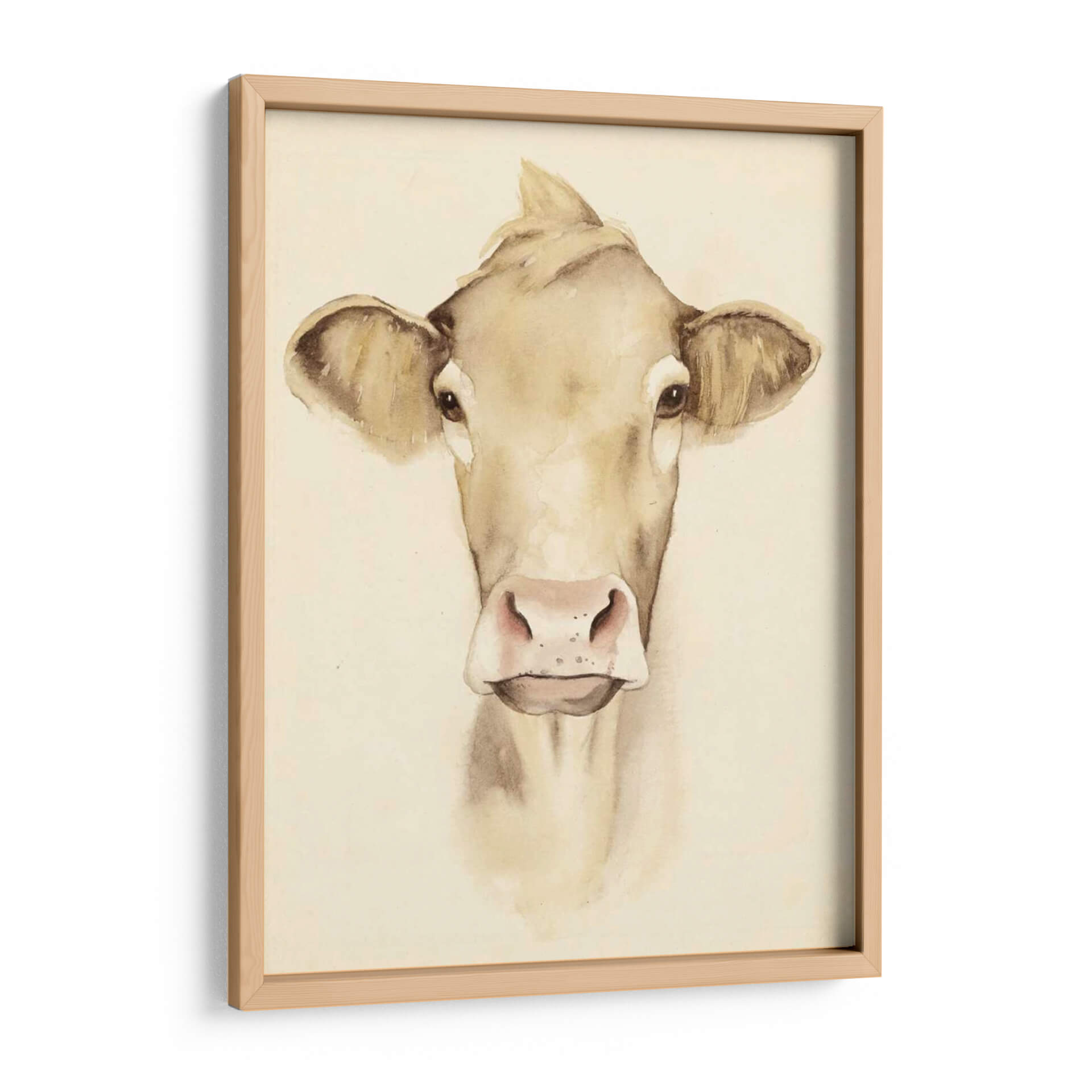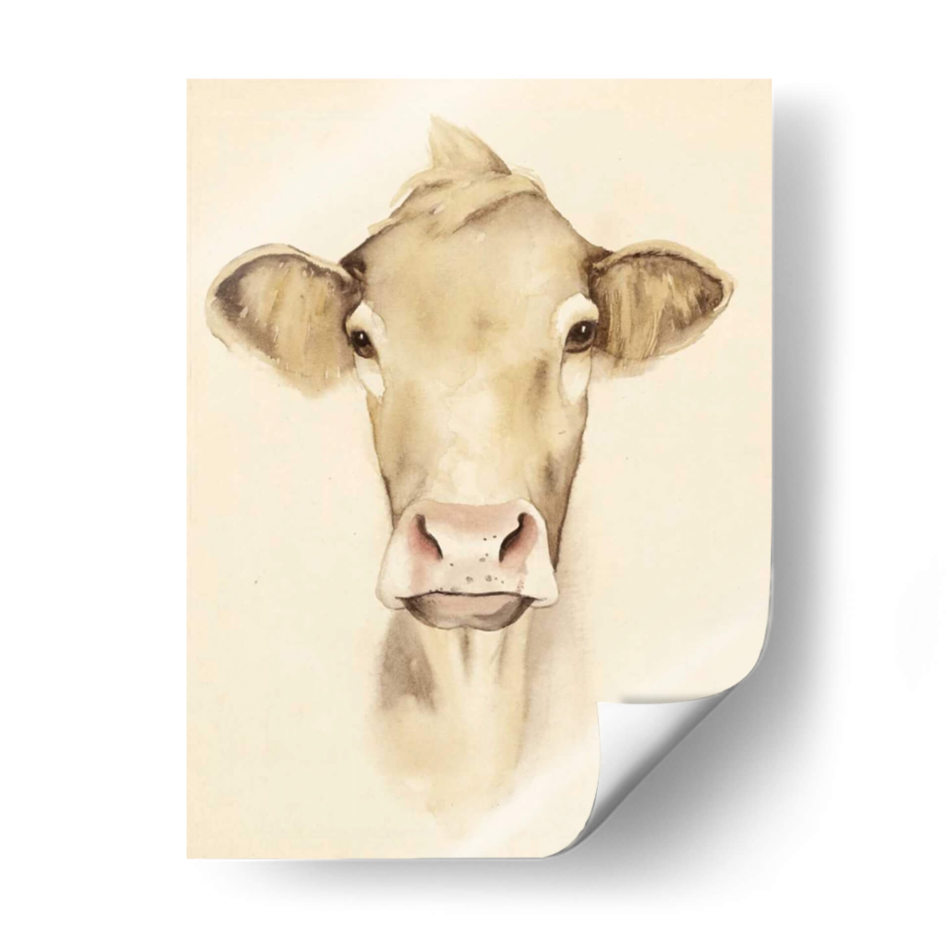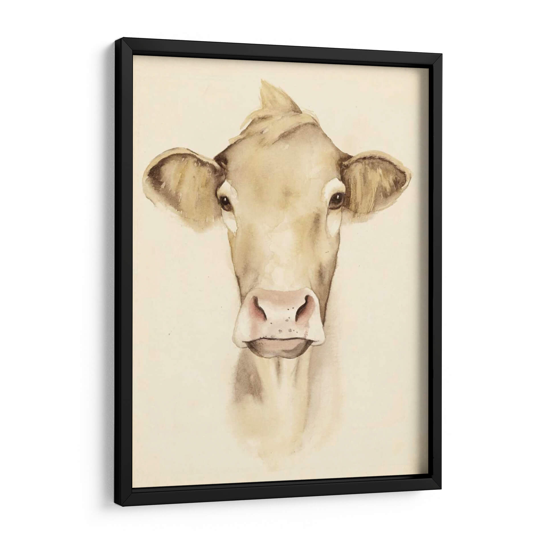 Aporta un toque de serenidad campestre y encanto rústico a tu hogar con esta encantadora obra de arte "Acuarela Barn Animales III" de Grace Popp. La pieza presenta un primer plano de una vaca pintada con delicadeza en tonos tierra y acuarela, transmitiendo una sensación de calma y nobleza. La técnica de acuarela, con sus suaves transiciones de color y líneas fluidas, crea una atmósfera etérea y acogedora, perfecta para cualquier espacio que busque un respiro de la vida moderna. Los detalles sutiles en los ojos y la nariz de la vaca añaden una profundidad conmovedora, invitando a la contemplación. Este cuadro decorativo es ideal para salones, dormitorios o incluso cocinas con temática rústica o farmhouse, añadiendo un punto focal de dulzura natural. La paleta de colores neutros y cálidos se integra fácilmente con diversas decoraciones, desde lo minimalista hasta lo más tradicional. Descubre la belleza sencilla de la naturaleza a través de la visión artística de Grace Popp y transforma tu pared en un lienzo de tranquilidad y estilo.