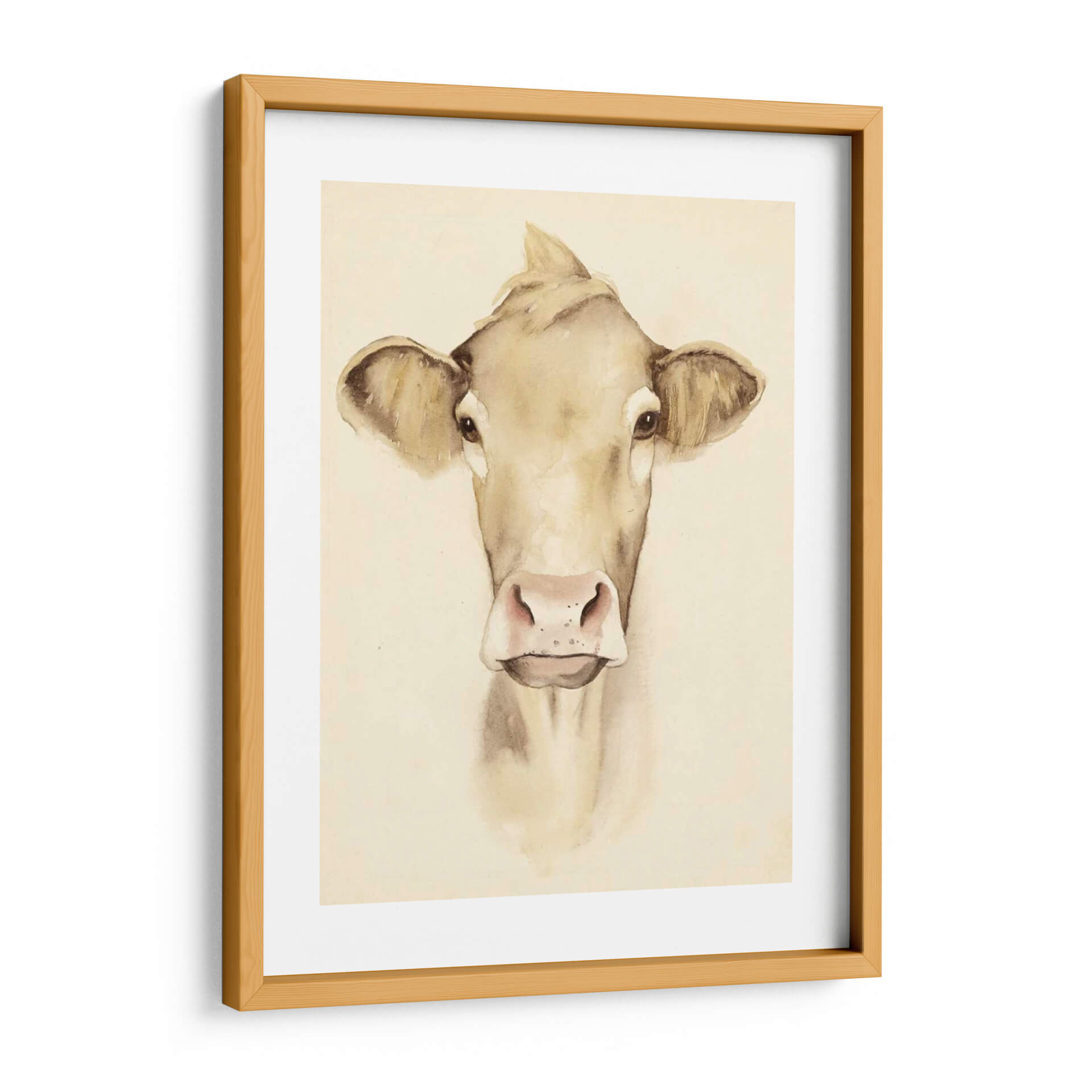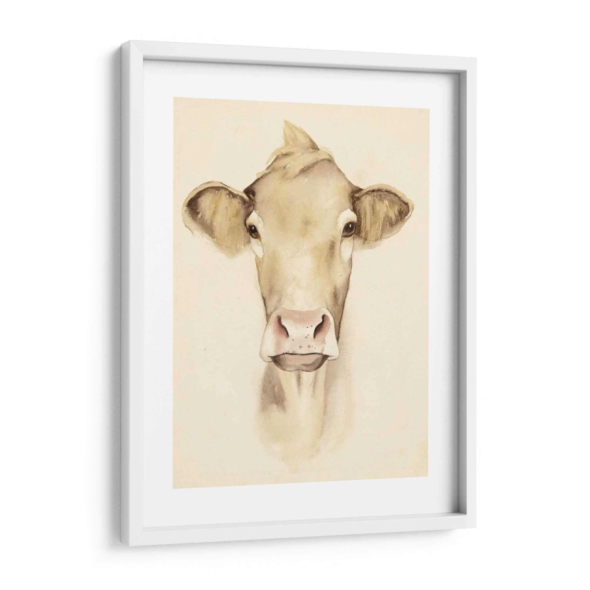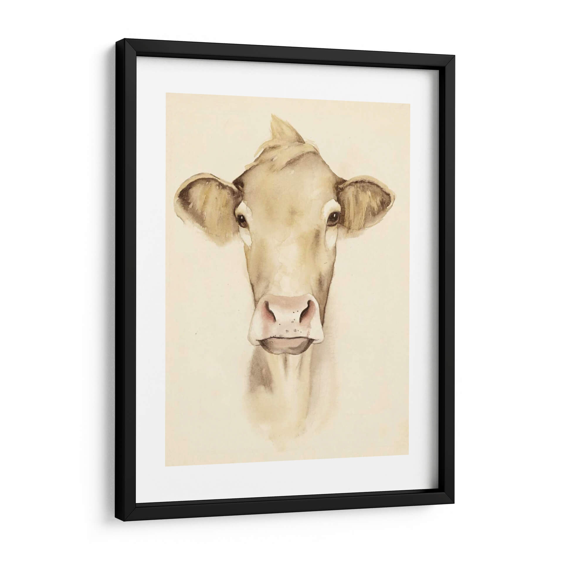 Aporta un toque de serenidad campestre y encanto rústico a tu hogar con esta encantadora obra de arte "Acuarela Barn Animales III" de Grace Popp. La pieza presenta un primer plano de una vaca pintada con delicadeza en tonos tierra y acuarela, transmitiendo una sensación de calma y nobleza. La técnica de acuarela, con sus suaves transiciones de color y líneas fluidas, crea una atmósfera etérea y acogedora, perfecta para cualquier espacio que busque un respiro de la vida moderna. Los detalles sutiles en los ojos y la nariz de la vaca añaden una profundidad conmovedora, invitando a la contemplación. Este cuadro decorativo es ideal para salones, dormitorios o incluso cocinas con temática rústica o farmhouse, añadiendo un punto focal de dulzura natural. La paleta de colores neutros y cálidos se integra fácilmente con diversas decoraciones, desde lo minimalista hasta lo más tradicional. Descubre la belleza sencilla de la naturaleza a través de la visión artística de Grace Popp y transforma tu pared en un lienzo de tranquilidad y estilo.