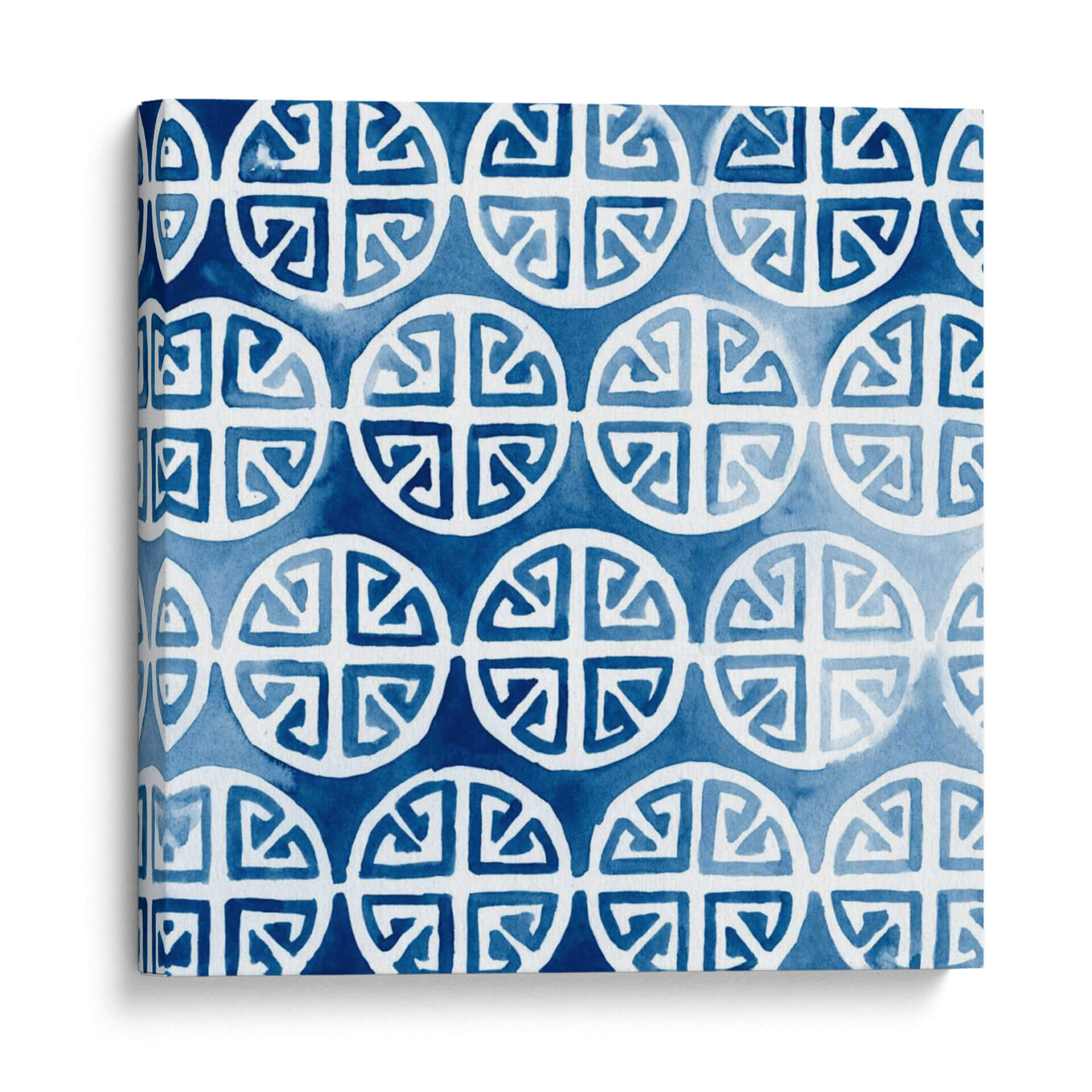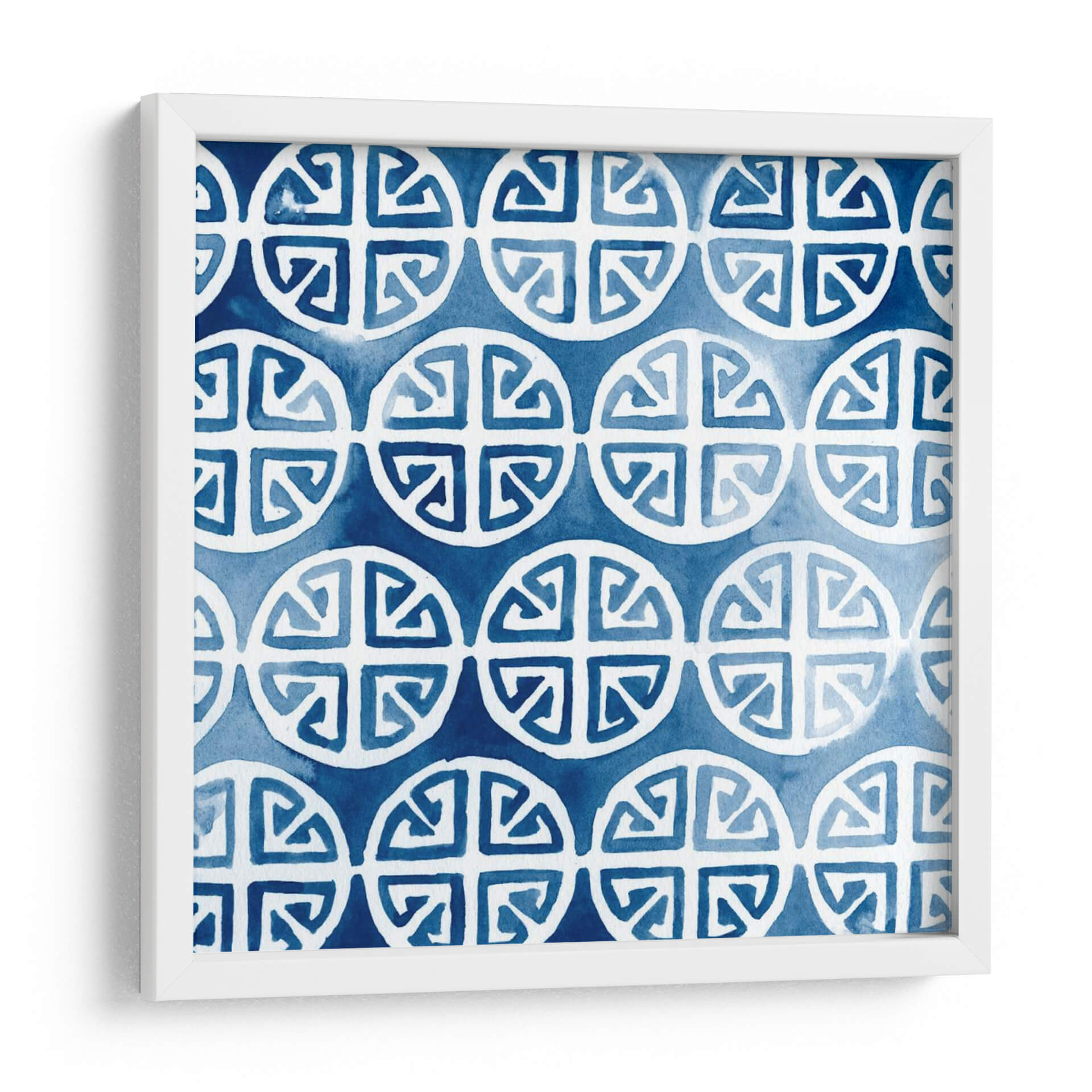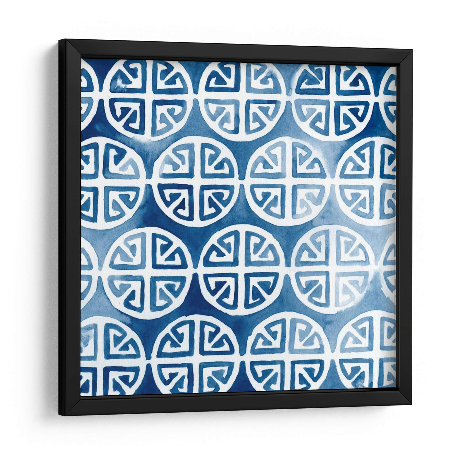Sumérgete en la serenidad y el estilo de 'Acuarela Índigo II', una obra de arte decorativo que evoca la tranquilidad del mar profundo y la claridad de un cielo despejado. Esta pieza, creada por June Erica Vess, presenta un patrón repetitivo de formas circulares estilizadas con intrincados diseños interiores, aplicados con la delicadeza y fluidez de la técnica de acuarela. Los tonos de azul índigo, que varían desde un cobalto intenso hasta matices más suaves y etéreos, crean una atmósfera de calma y sofisticación. La composición geométrica pero orgánica invita a la contemplación, ofreciendo un punto focal visual sin ser abrumadora. Este cuadro decorativo es ideal para infundir paz y elegancia en cualquier espacio, ya sea un dormitorio, una sala de estar moderna o un estudio. Su diseño atemporal y su paleta de colores relajantes lo convierten en una adición versátil para una variedad de estilos de decoración, desde el contemporáneo hasta el bohemio chic. 'Acuarela Índigo II' no es solo una pieza de arte; es una invitación a la introspección y al bienestar visual.