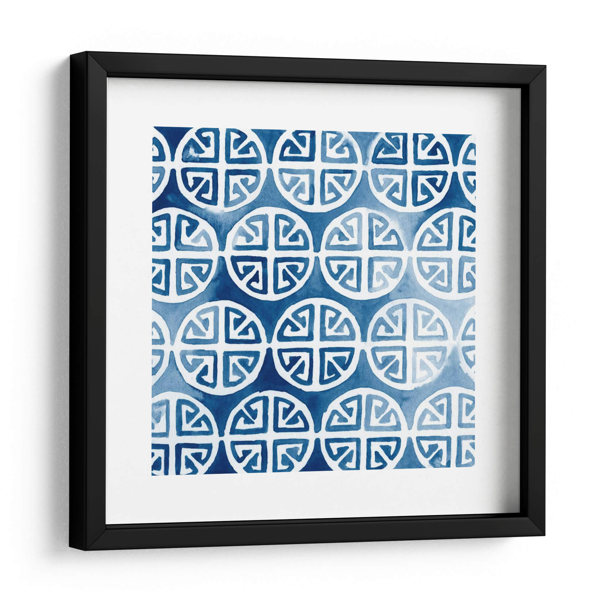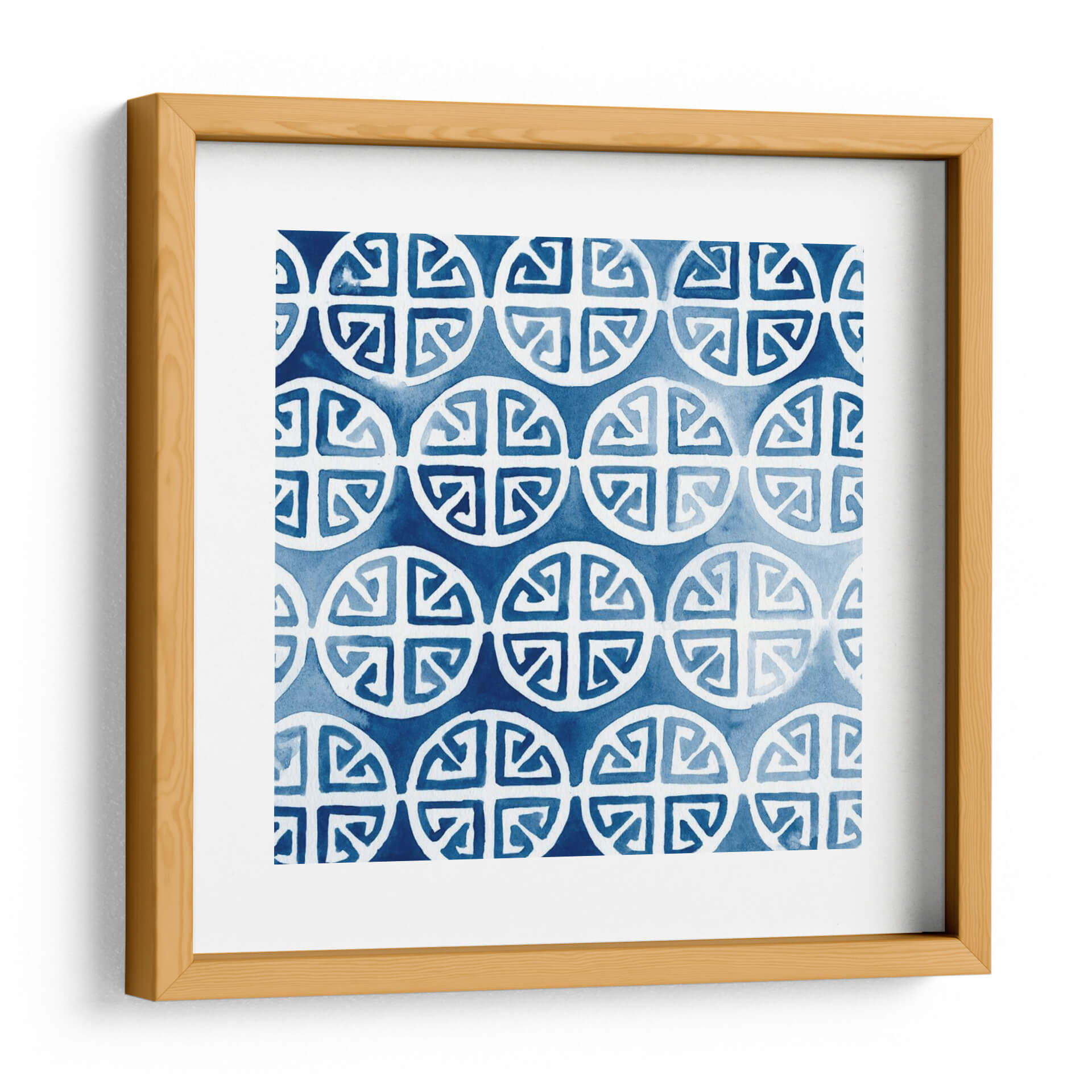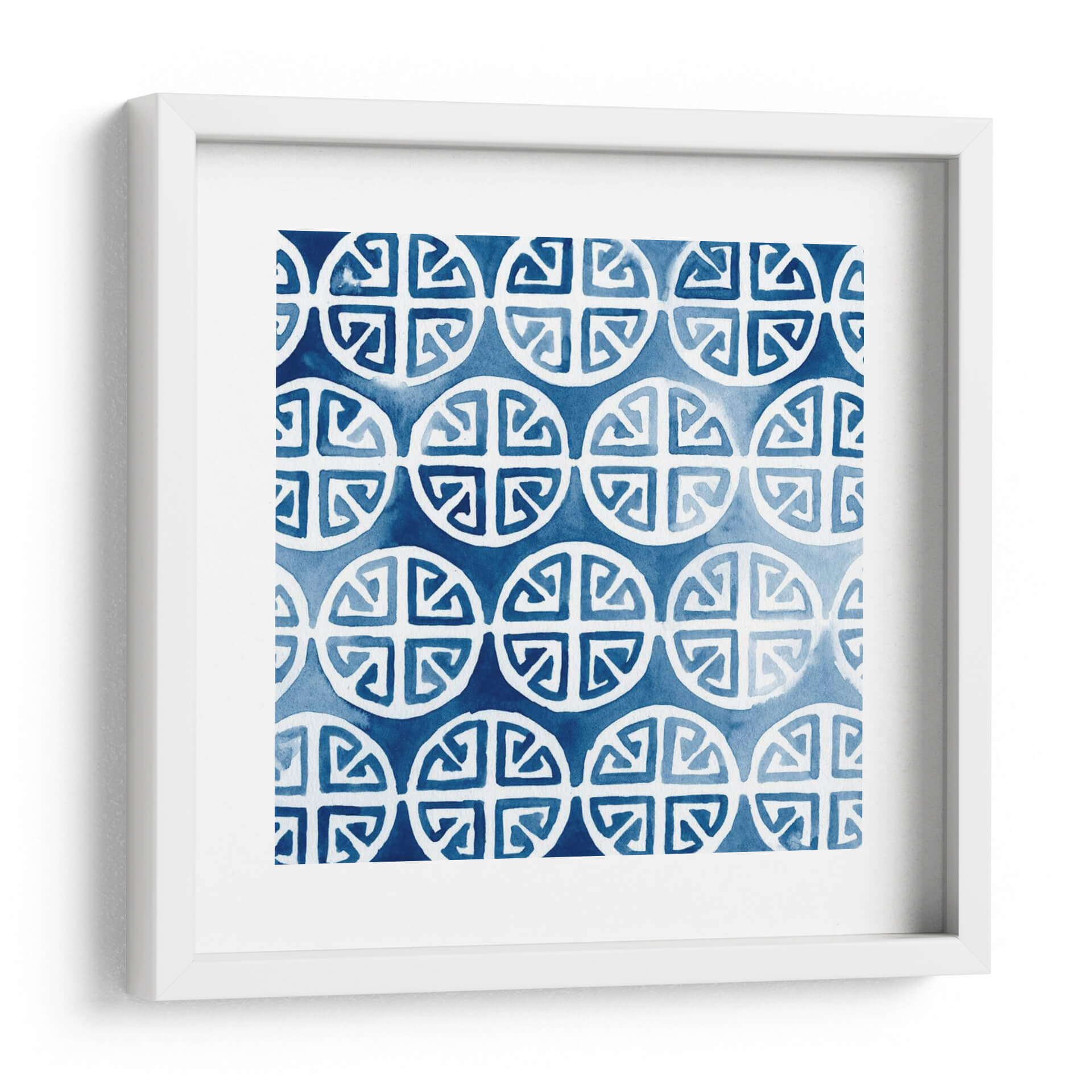 Sumérgete en la serenidad y el estilo de 'Acuarela Índigo II', una obra de arte decorativo que evoca la tranquilidad del mar profundo y la claridad de un cielo despejado. Esta pieza, creada por June Erica Vess, presenta un patrón repetitivo de formas circulares estilizadas con intrincados diseños interiores, aplicados con la delicadeza y fluidez de la técnica de acuarela. Los tonos de azul índigo, que varían desde un cobalto intenso hasta matices más suaves y etéreos, crean una atmósfera de calma y sofisticación. La composición geométrica pero orgánica invita a la contemplación, ofreciendo un punto focal visual sin ser abrumadora. Este cuadro decorativo es ideal para infundir paz y elegancia en cualquier espacio, ya sea un dormitorio, una sala de estar moderna o un estudio. Su diseño atemporal y su paleta de colores relajantes lo convierten en una adición versátil para una variedad de estilos de decoración, desde el contemporáneo hasta el bohemio chic. 'Acuarela Índigo II' no es solo una pieza de arte; es una invitación a la introspección y al bienestar visual.