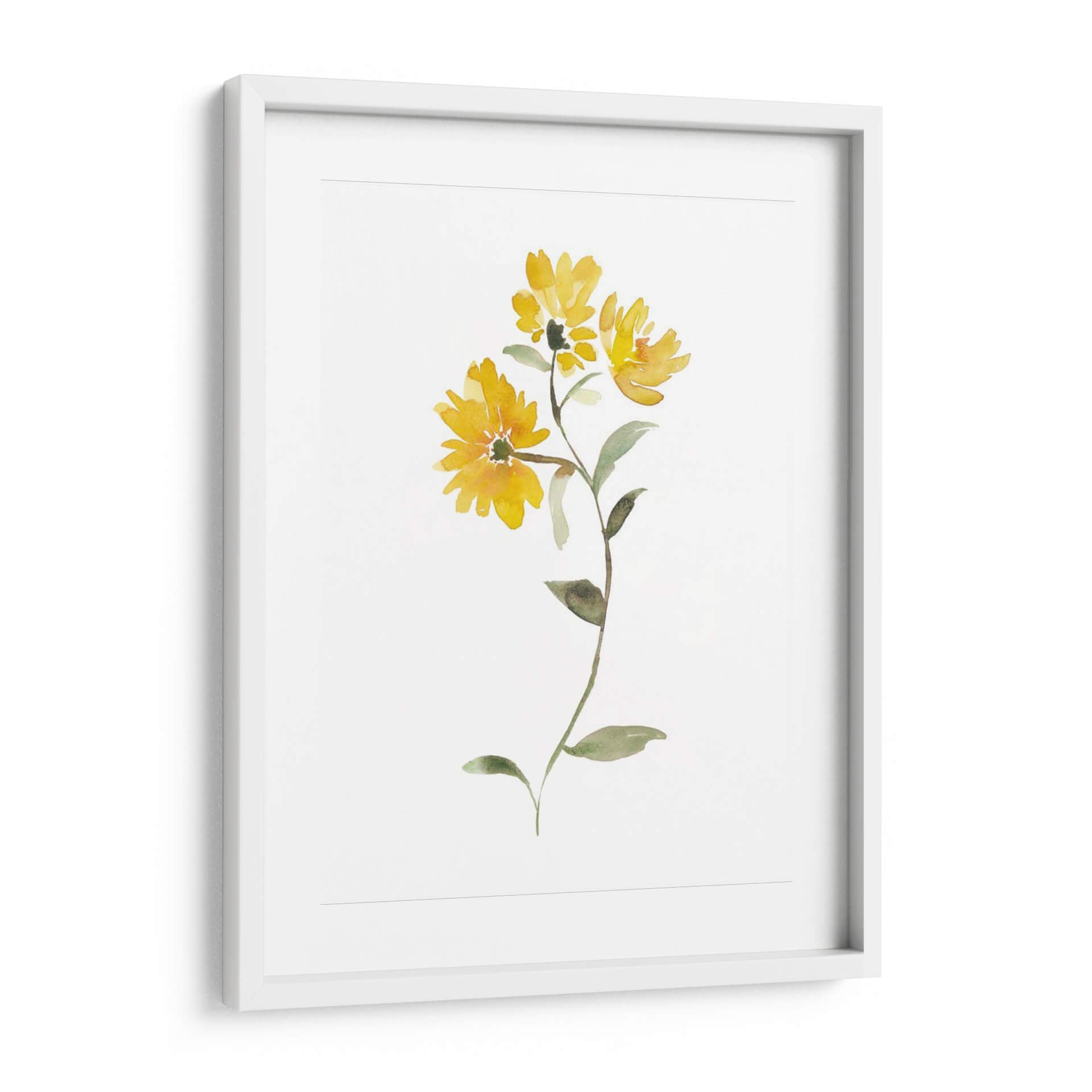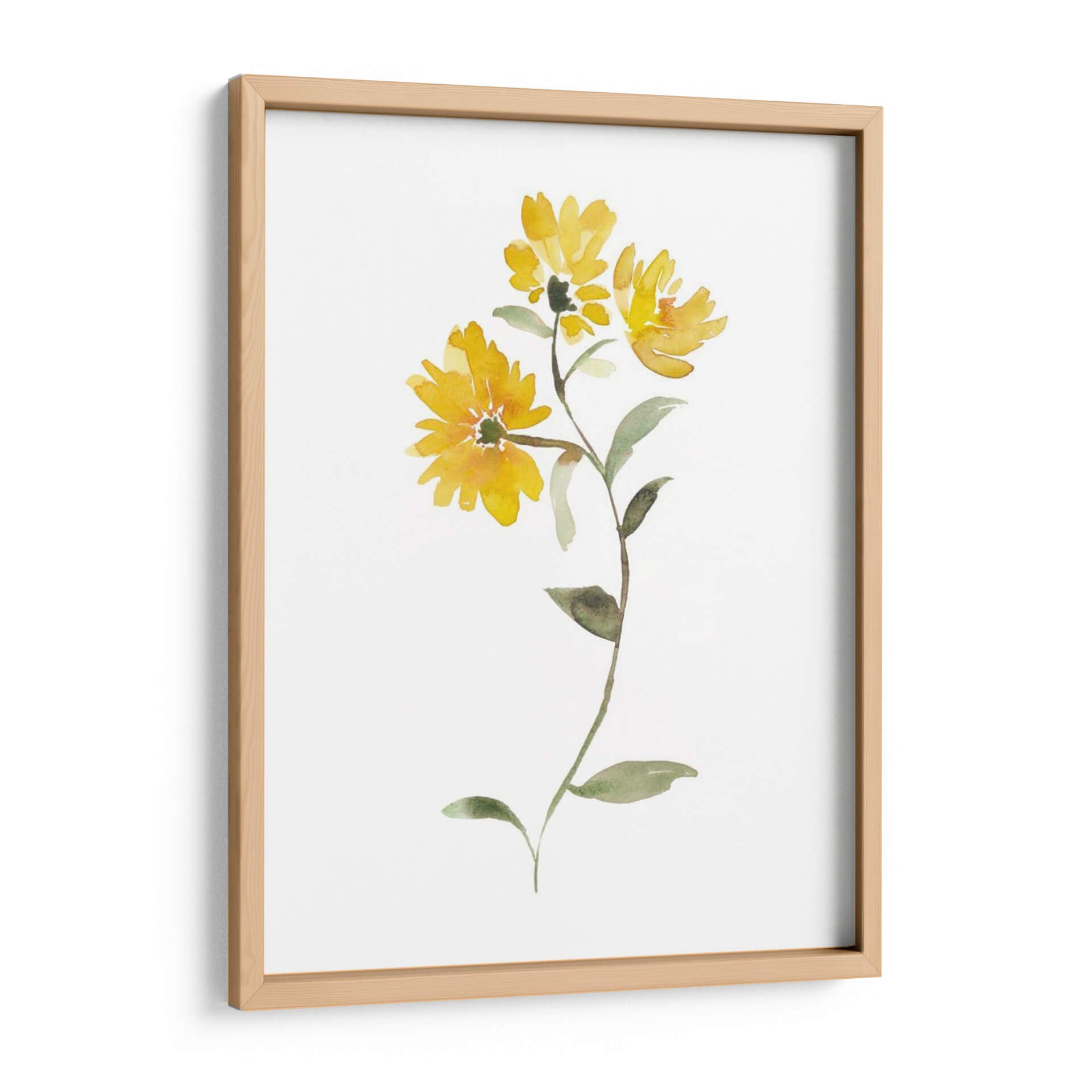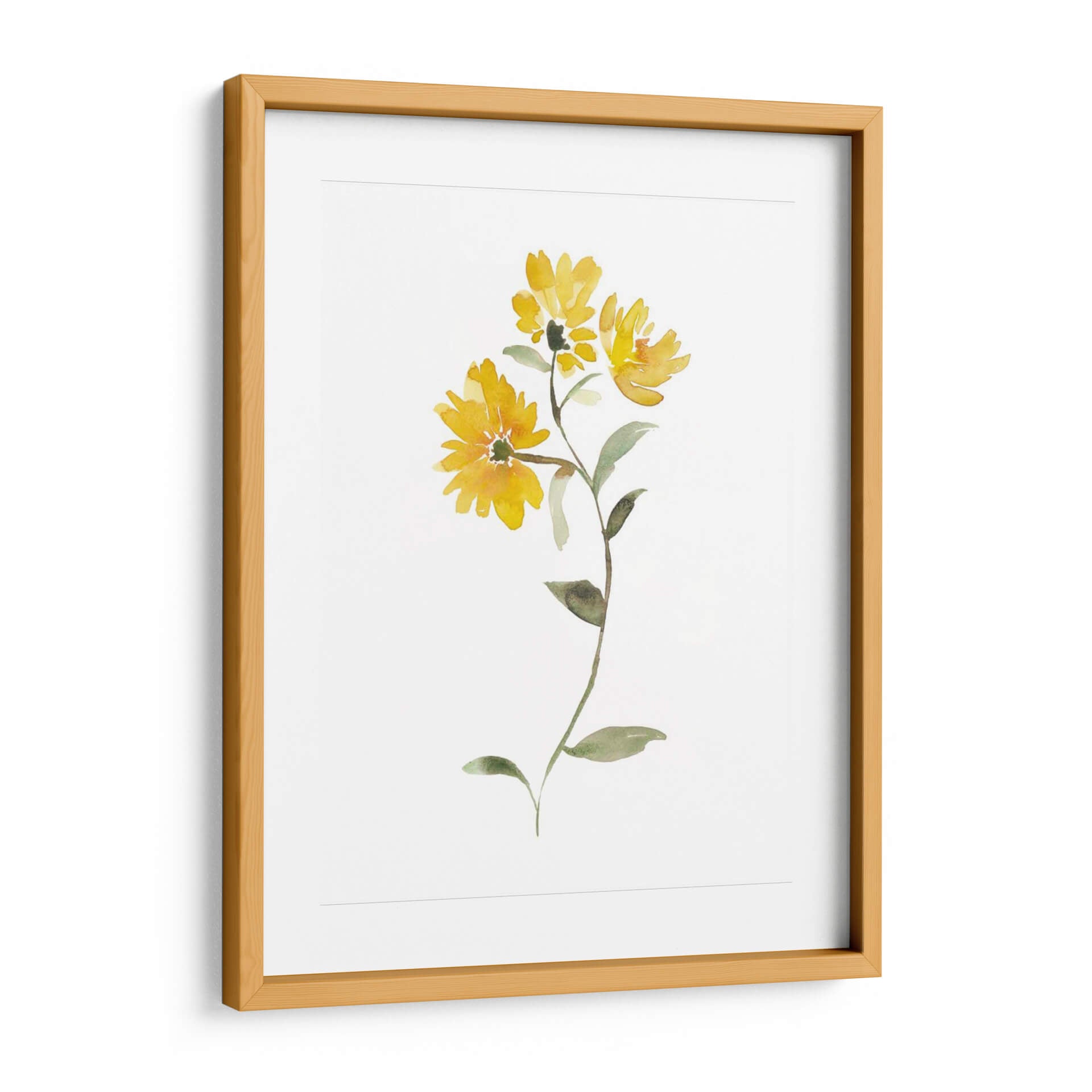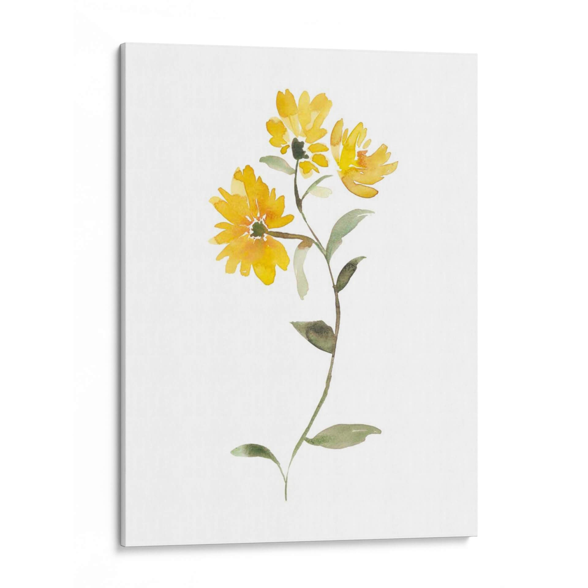 Embellece tu hogar u oficina con "Acuarela Jardín IV", una cautivadora obra de arte de Kiana Mosley. Este delicado cuadro decorativo presenta un trío de flores amarillas vibrantes, capturadas con la técnica etérea de la acuarela. Los pétalos parecen danzar sobre un fondo blanco impoluto, evocando una sensación de ligereza y frescura. La paleta de colores, dominada por amarillos solares y verdes suaves, irradia optimismo y vitalidad, transformando cualquier espacio en un oasis de calma y belleza natural. El estilo artístico, que combina la sutileza de la acuarela con una composición elegante y minimalista, permite que la obra respire, invitando a la contemplación. Cada pincelada transmite la delicadeza de la naturaleza, ideal para quienes buscan añadir un toque de alegría y serenidad a su decoración. "Acuarela Jardín IV" es más que una simple pieza decorativa; es una ventana a un jardín floreciente, perfecta para salones, dormitorios o cualquier rincón que necesite un estallido de color y luz.