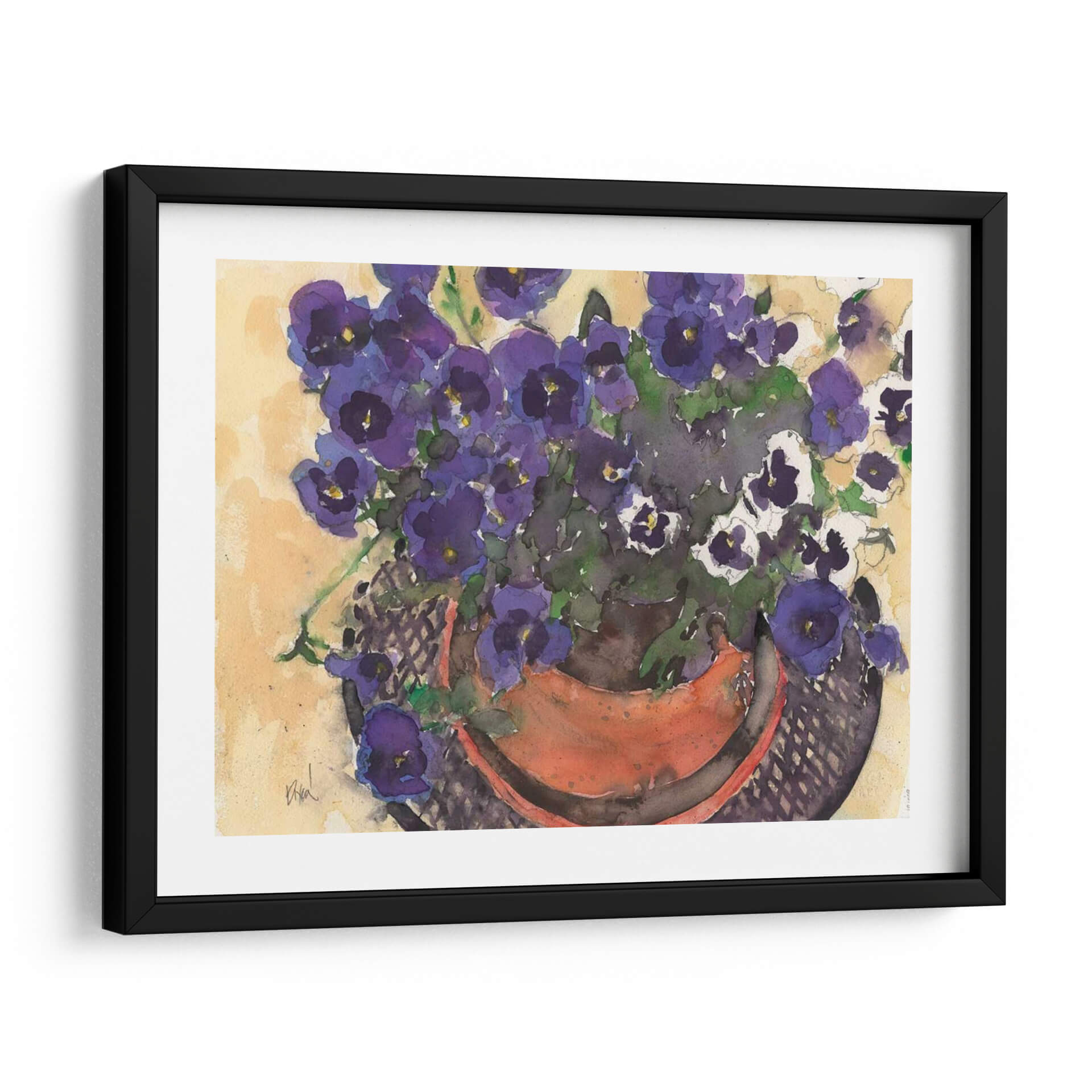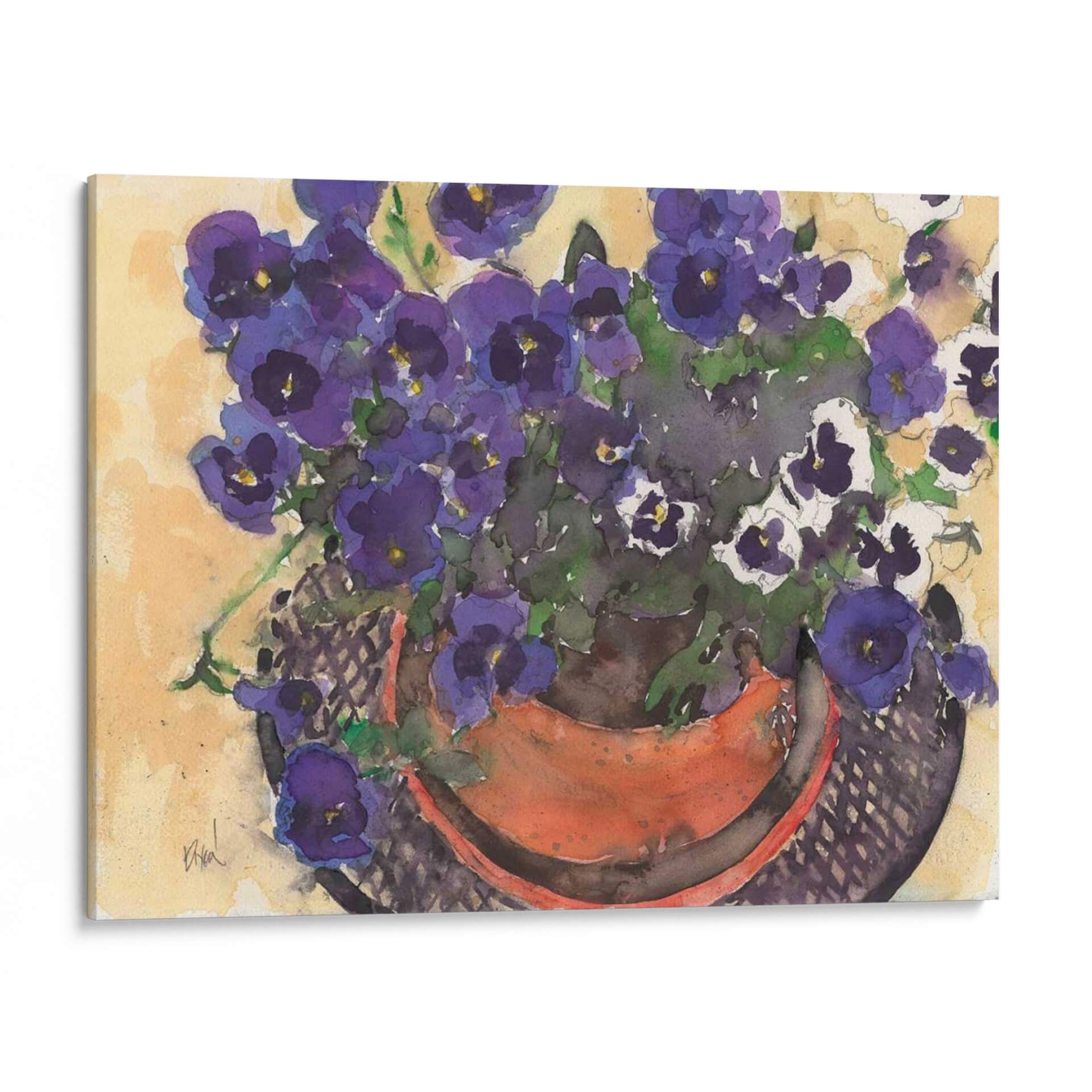 Adéntrate en la delicadeza floral de "Algo Floral Viii", una cautivadora obra de Samuel Dixon. Esta pieza, ejecutada en acuarela, presenta un vibrante y exuberante ramo de flores en tonos morados y blancos, dispuestas en una maceta de terracota. El estilo, que evoca la acuarela tradicional con pinceladas sueltas y fluidas, captura la belleza efímera de la naturaleza con una sensibilidad artística palpable. El fondo, de un cálido color ocre y con sutiles veladuras, resalta la frescura y vitalidad de las flores, creando una atmósfera serena y acogedora. La composición, centrada en el detalle de las flores y su maceta, invita a la contemplación y a apreciar la belleza en lo cotidiano. Este cuadro decorativo es ideal para añadir un toque de color y vida a cualquier estancia, desde un rincón luminoso en la sala de estar hasta un espacio de trabajo que necesite inspiración. Su encanto natural lo convierte en una pieza versátil, perfecta para quienes buscan arte que transmita calma y belleza orgánica. Descubre la magia de las flores a través de la mirada única de Samuel Dixon y transforma tus paredes en un jardín de sensaciones.