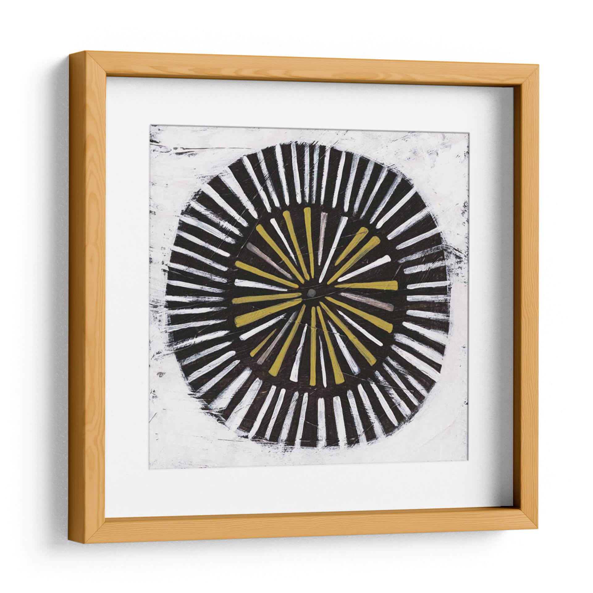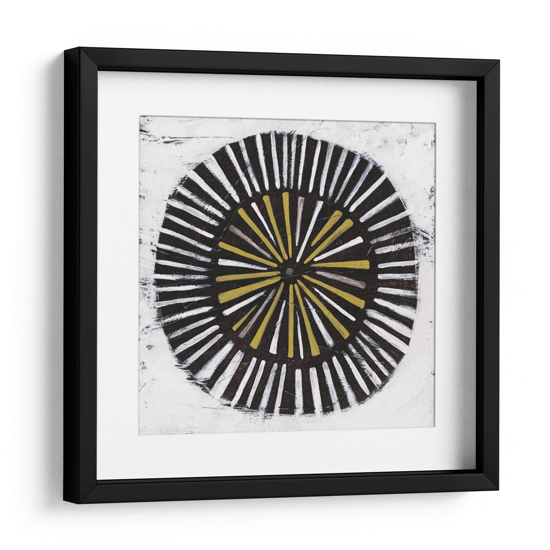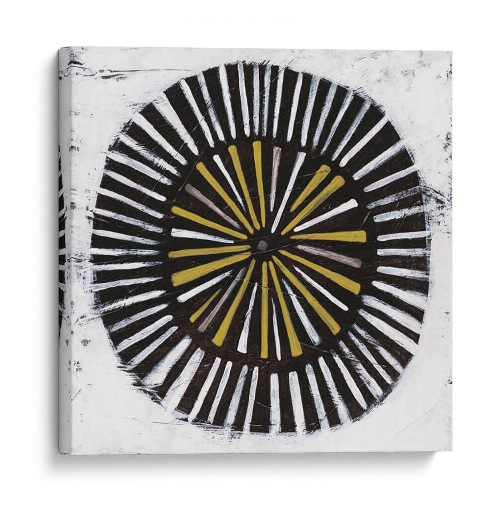 Sumérgete en la cautivadora abstracción geométrica de "Algoritmo II", una obra de arte contemporáneo de June Erica Vess que fusiona patrones dinámicos con una paleta de colores audaz. Este cuadro decorativo presenta un diseño circular central radiante, evocando la complejidad de un mecanismo o un fenómeno natural en expansión. Las líneas nítidas y repetitivas, en tonos blanco, negro y un vibrante amarillo mostaza, crean una sensación de movimiento y energía, mientras que las sutiles texturas en el fondo blanco aportan profundidad y un toque artesanal. "Algoritmo II" es una pieza que invita a la contemplación, perfecta para añadir un punto focal moderno y sofisticado a cualquier espacio. Su estilo abstracto lo hace versátil, integrándose maravillosamente en salones contemporáneos, oficinas minimalistas o estudios creativos, aportando un aire de intriga intelectual y estilo vanguardista. Descubre cómo esta composición única puede transformar tu decoración, inspirando conversación y añadiendo un toque de arte conceptual a tu vida diaria. Una elección ideal para quienes buscan un diseño impactante y lleno de carácter.