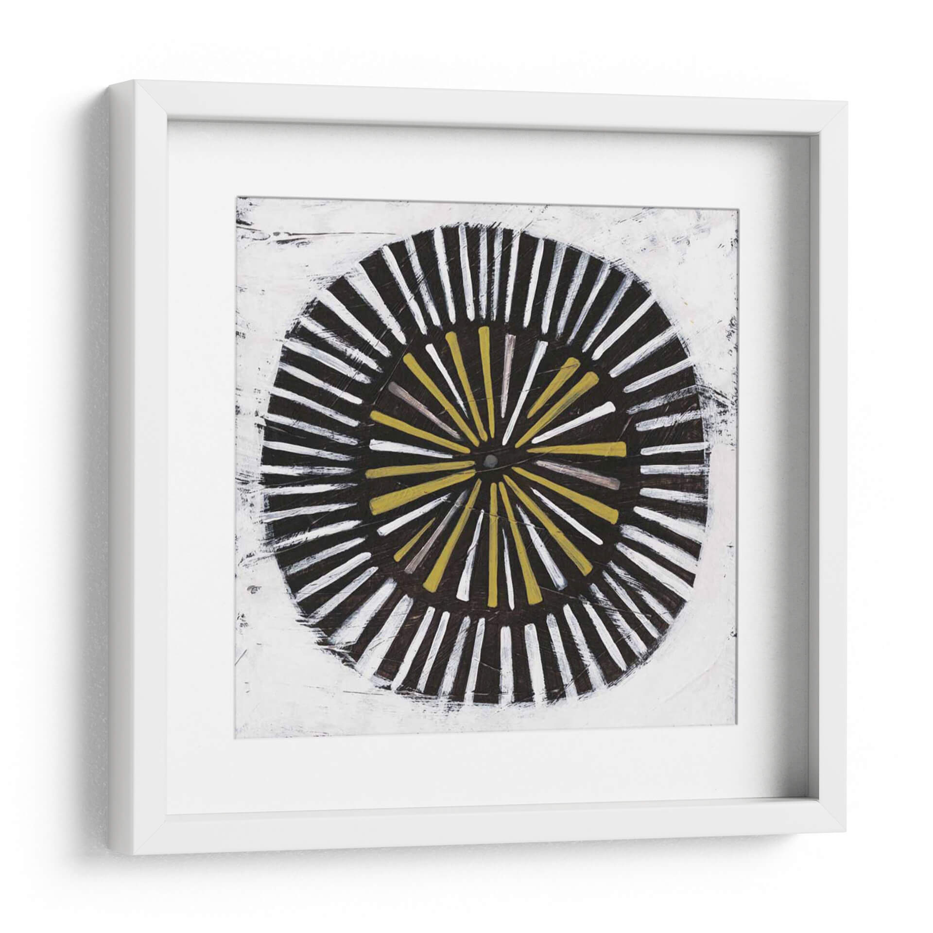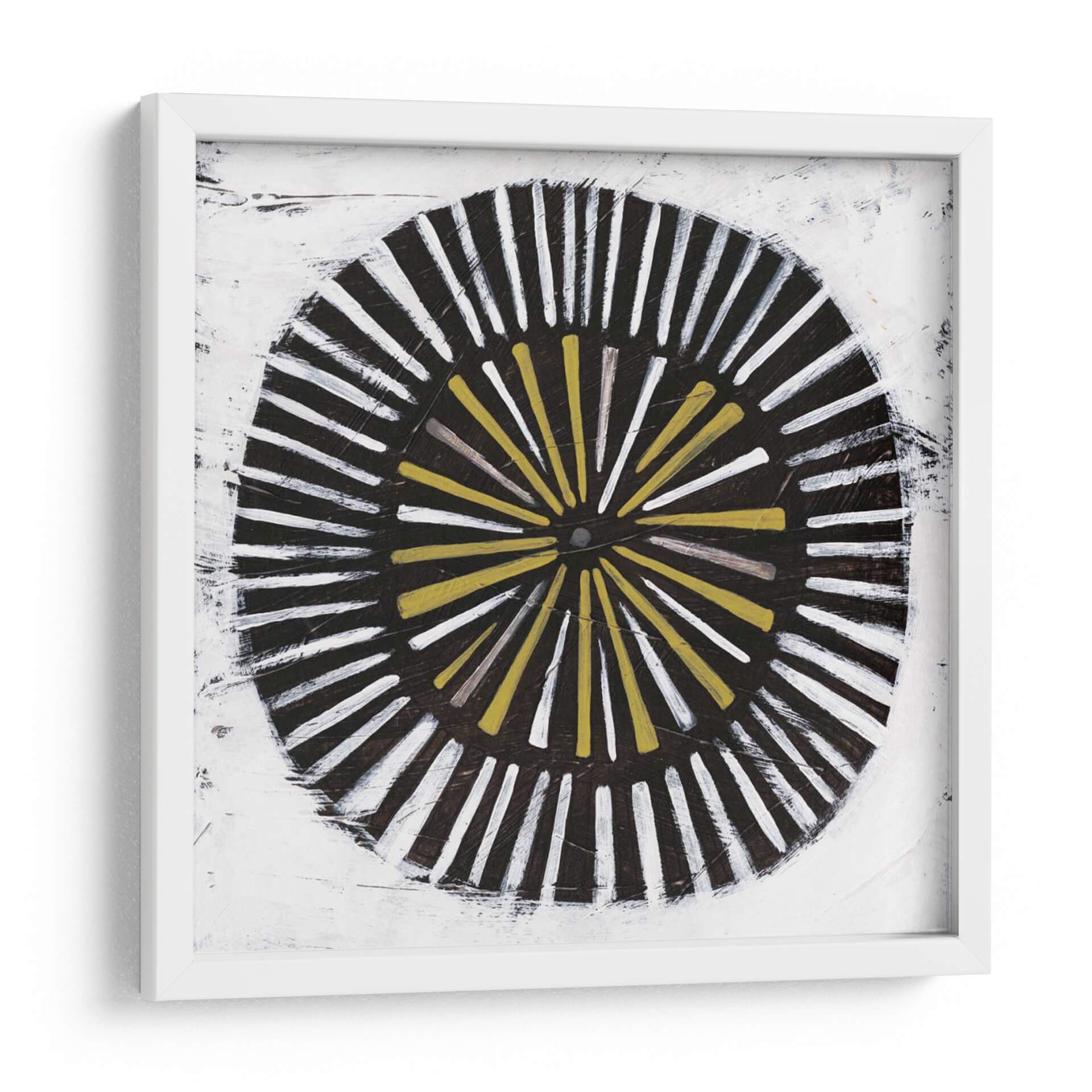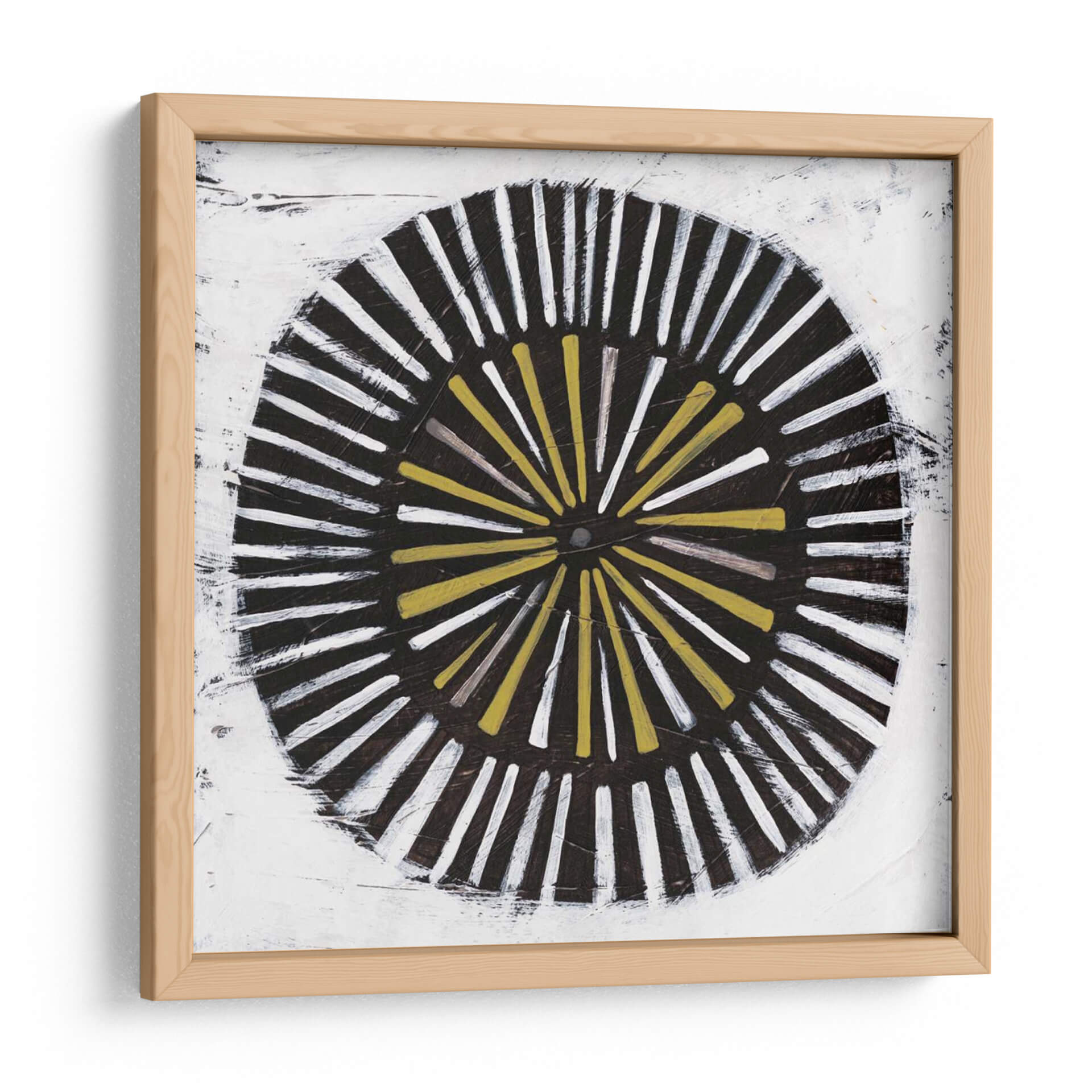 Sumérgete en la cautivadora abstracción geométrica de "Algoritmo II", una obra de arte contemporáneo de June Erica Vess que fusiona patrones dinámicos con una paleta de colores audaz. Este cuadro decorativo presenta un diseño circular central radiante, evocando la complejidad de un mecanismo o un fenómeno natural en expansión. Las líneas nítidas y repetitivas, en tonos blanco, negro y un vibrante amarillo mostaza, crean una sensación de movimiento y energía, mientras que las sutiles texturas en el fondo blanco aportan profundidad y un toque artesanal. "Algoritmo II" es una pieza que invita a la contemplación, perfecta para añadir un punto focal moderno y sofisticado a cualquier espacio. Su estilo abstracto lo hace versátil, integrándose maravillosamente en salones contemporáneos, oficinas minimalistas o estudios creativos, aportando un aire de intriga intelectual y estilo vanguardista. Descubre cómo esta composición única puede transformar tu decoración, inspirando conversación y añadiendo un toque de arte conceptual a tu vida diaria. Una elección ideal para quienes buscan un diseño impactante y lleno de carácter.