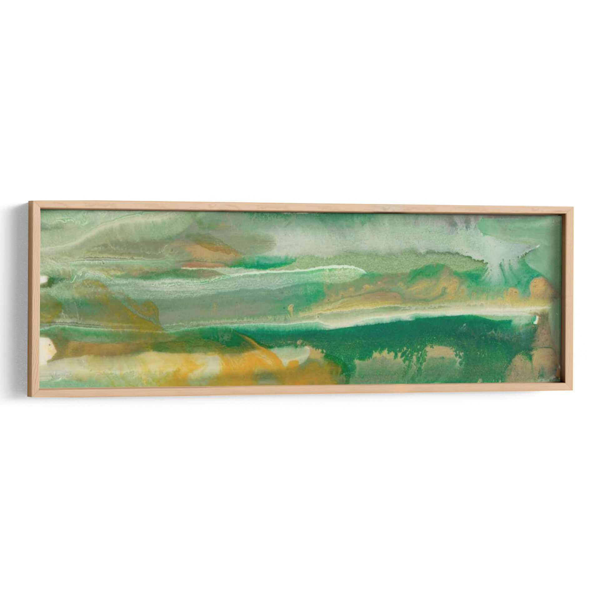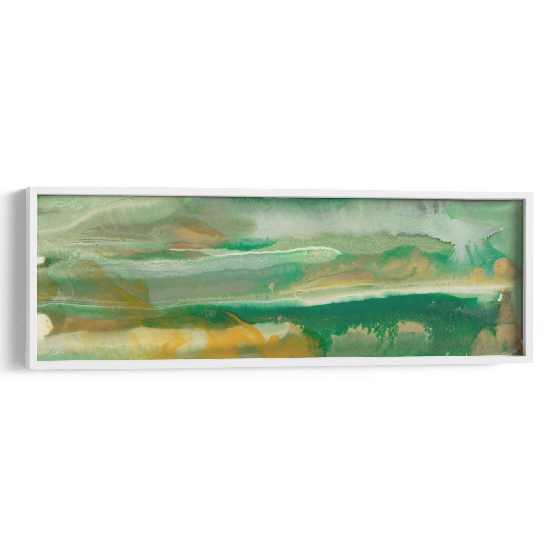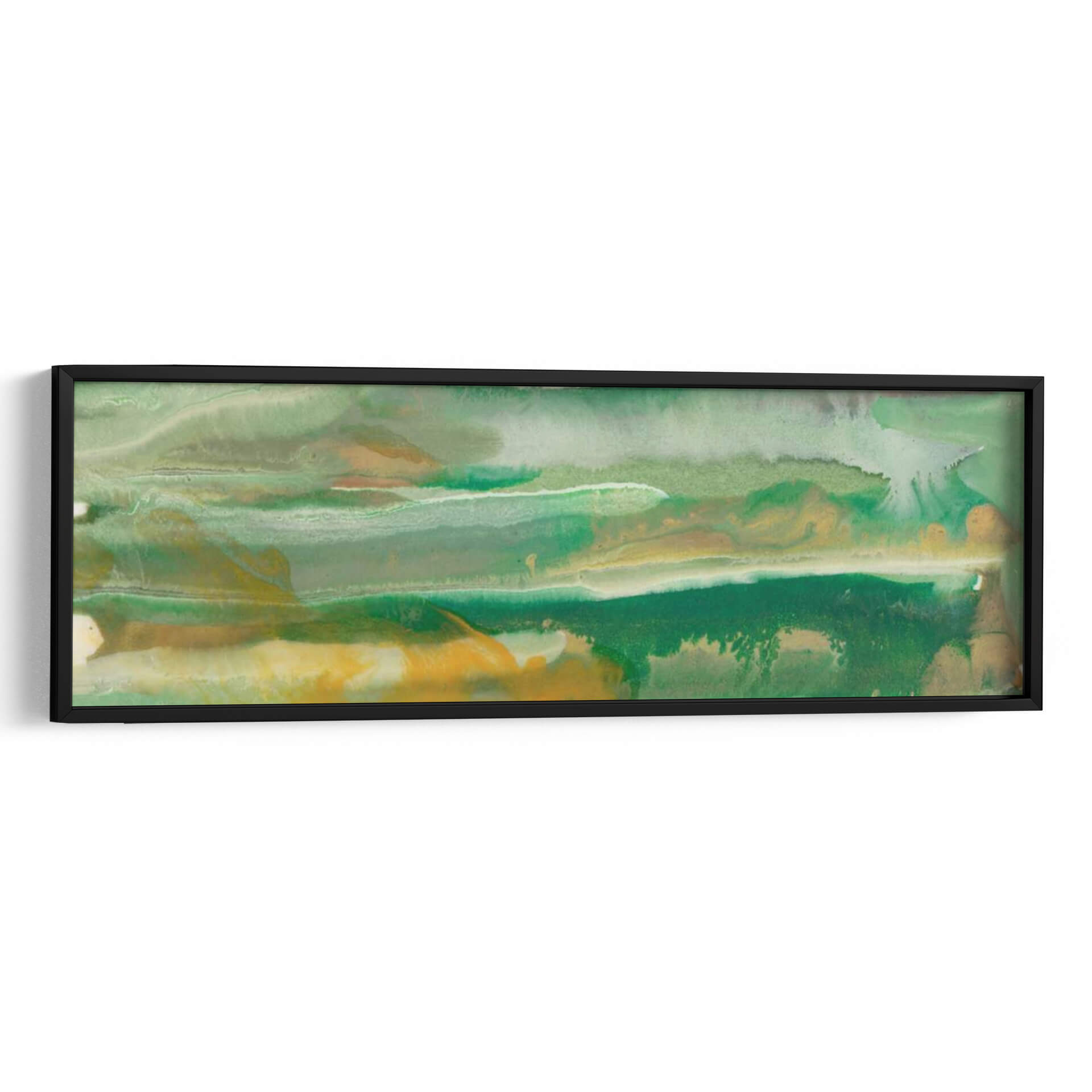 Sumérgete en la profundidad y el dinamismo de "Alineaciones Cinéticas II" de Sharon Chandler, una obra abstracta que evoca la belleza de los paisajes naturales a través de una paleta de colores vibrantes y fluidos. Este cuadro decorativo se caracteriza por sus capas translúcidas de verdes intensos, amarillos dorados y toques de tierra, creando una sensación de movimiento y energía que fluye a través de la composición. La técnica de Chandler, que parece fusionar la acuarela con medios más densos, genera texturas sutiles y un juego de luces cautivador. "Alineaciones Cinéticas II" es una pieza que invita a la contemplación, sugiriendo la vastedad de un paisaje terrestre o la intrincada red de la vida. Su formato panorámico la convierte en una elección excepcional para añadir un punto focal sofisticado y orgánico a cualquier sala de estar, comedor u oficina. Ideal para espacios que buscan un toque de naturaleza estilizada y arte contemporáneo. Transforma tu hogar con este lienzo que irradia calma y vitalidad, capturando la esencia de la abstracción lírica y aportando una dimensión única a tu decoración.