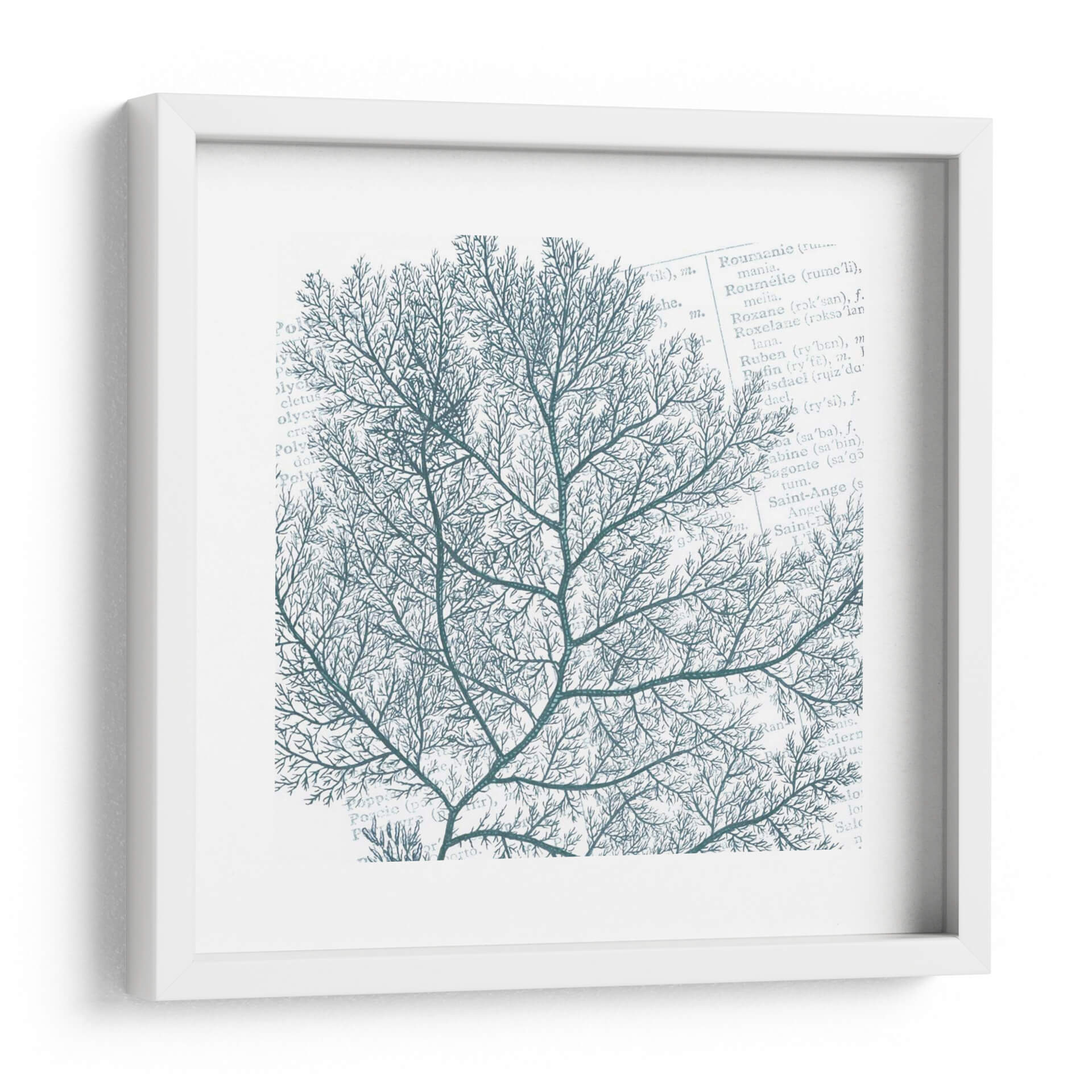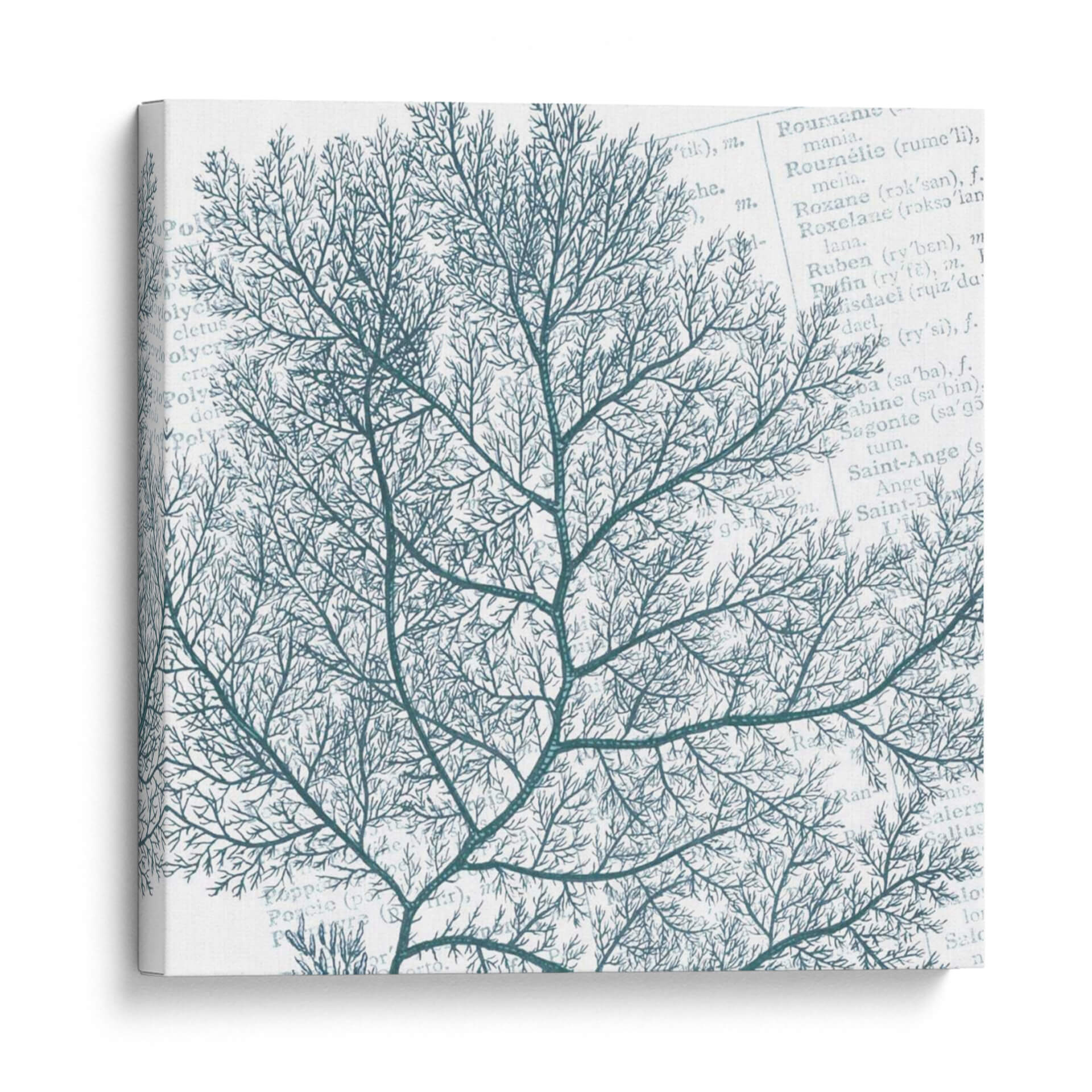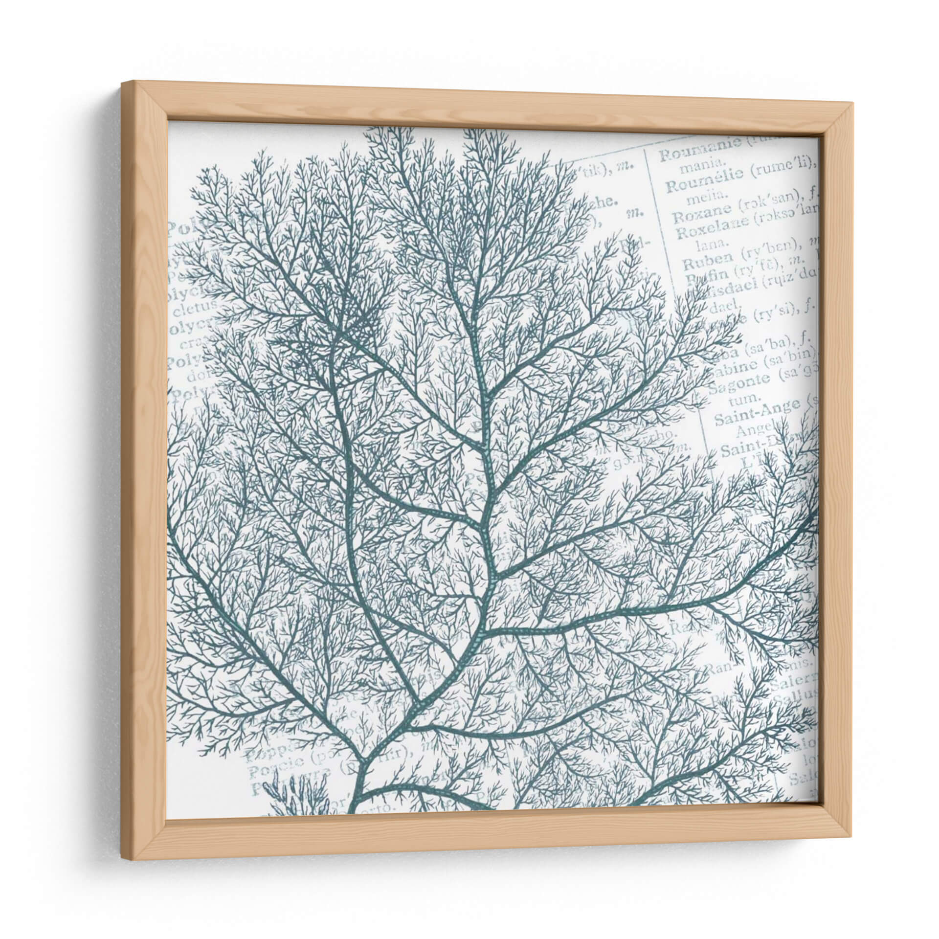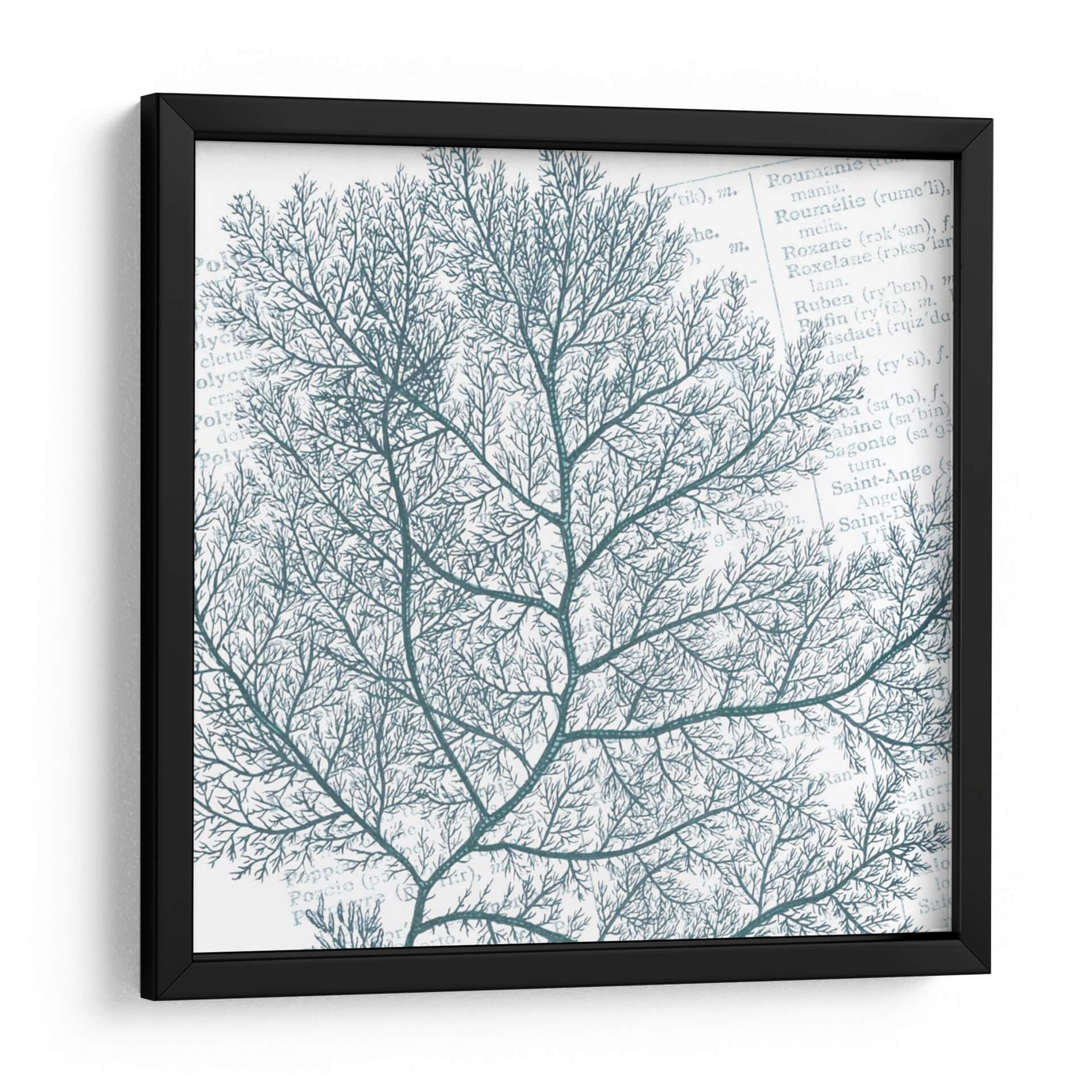 Sumérgete en la serenidad del océano con "Aqua Marine II" de Anna Hambly, un cuadro decorativo que captura la intrincada belleza de la vida marina. Esta obra presenta un detallado grabado de un coral o alga marina en un profundo tono azul verdoso, superpuesto sobre un fondo de texto antiguo, evocando la sensación de un descubrimiento científico o un cuaderno de naturalista. La composición simétrica y las delicadas ramas del elemento marino principal crean un equilibrio visual cautivador, invitando a la contemplación y la calma. Los colores fríos y la textura sutil del fondo de página de libro añaden una dimensión de sofisticación y un toque vintage. Ideal para salones, dormitorios o estudios que buscan una atmósfera de tranquilidad y elegancia natural. Este cuadro decorativo es perfecto para añadir un punto focal sereno y lleno de detalles a cualquier espacio, conectando con la belleza del mundo submarino y el encanto del conocimiento antiguo. Transforma tu hogar en un oasis de paz con esta pieza inspiradora.