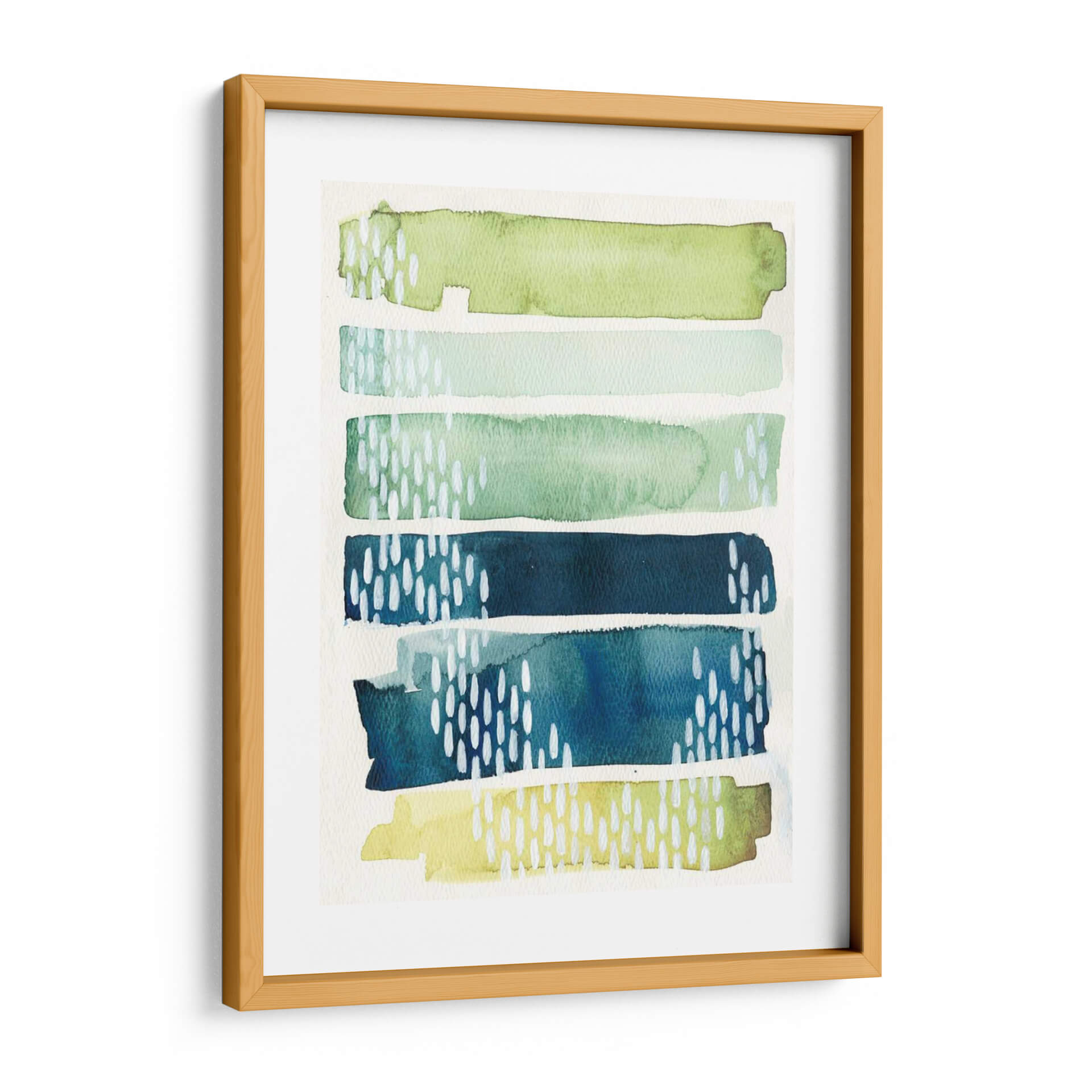 Sumérgete en la serenidad y el dinamismo de "Aqua Streak II", una obra abstracta de Grace Popp que evoca la belleza etérea del agua y la naturaleza. Esta pieza se caracteriza por sus pinceladas horizontales fluidas en tonos verdes y azules profundos, interrumpidas por delicados trazos blancos que sugieren gotas de lluvia o reflejos luminosos. La paleta de colores, que va desde verdes menta y esmeralda hasta profundos índigos y un toque final de amarillo vibrante, crea una atmósfera de calma refrescante y vitalidad sutil. Su estilo abstracto y minimalista, con una composición limpia y rítmica, la convierte en una adición versátil para cualquier espacio, desde un sereno dormitorio hasta una moderna sala de estar o una oficina que busca inspiración. "Aqua Streak II" no es solo una decoración de pared, sino una invitación a la contemplación, aportando una sensación de tranquilidad y elegancia contemporánea a tu hogar u oficina. Es el cuadro decorativo perfecto para quienes aprecian el arte abstracto y buscan piezas que transmitan paz y sofisticación.