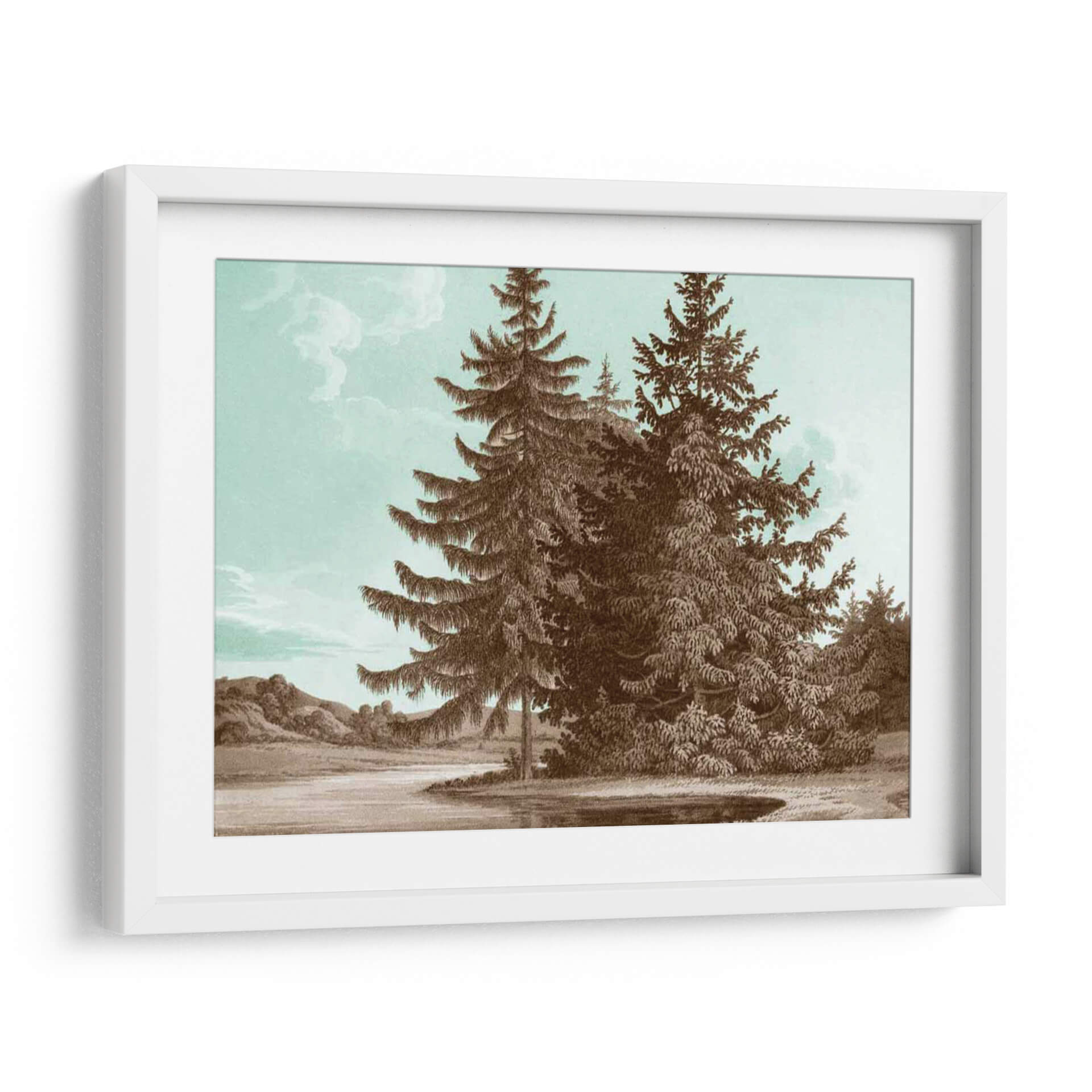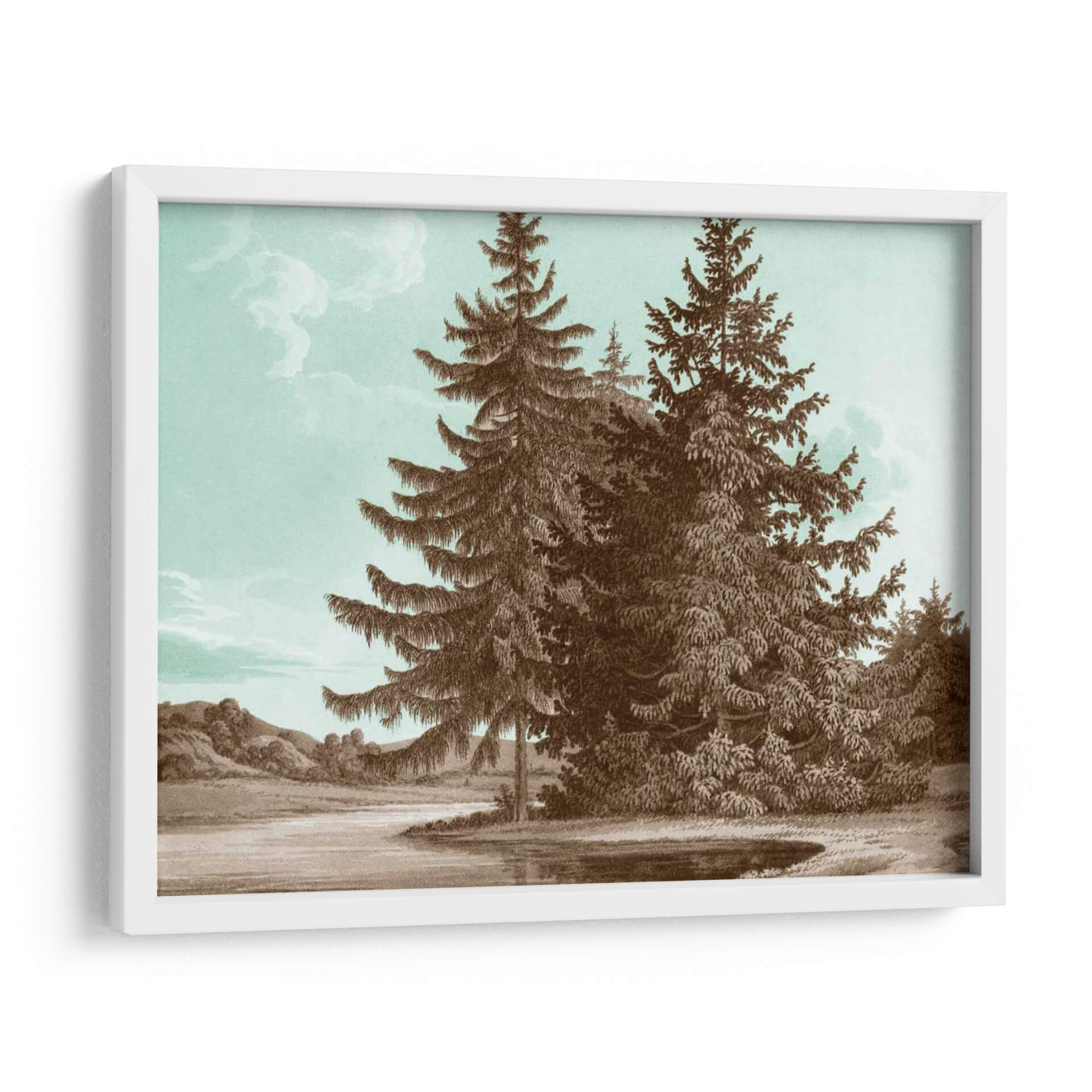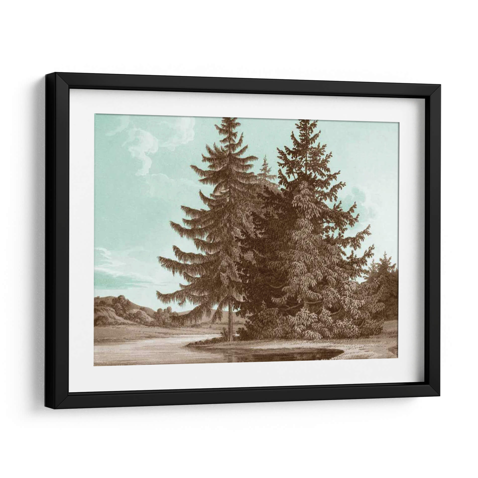 Sumérgete en la tranquilidad del bosque con 'Árboles Serenos III', una obra de Edward Kennion que captura la majestuosidad de la naturaleza. Este cuadro decorativo presenta un paisaje boscoso dominado por imponentes árboles de coníferas, cuyas frondosas ramas se alzan hacia un cielo sereno de tonos turquesa pálido. La paleta de colores, centrada en marrones terrosos y un azul aguamarina suave, crea una atmósfera de calma y reflexión, evocando la paz que se encuentra en los entornos naturales. La técnica, que recuerda a grabados clásicos o ilustraciones botánicas detalladas, aporta un toque de elegancia atemporal a la pieza. La composición, con el primer plano de los árboles destacando sobre un sereno lago y colinas ondulantes en el fondo, invita a la contemplación y al sosiego. Este cuadro es ideal para transformar cualquier espacio en un santuario de paz, aportando una conexión con la naturaleza y un toque sofisticado a salones, dormitorios u oficinas. Añade una pincelada de serenidad natural a tu hogar con esta pieza artística única, perfecta para quienes buscan arte de pared que inspire calma y belleza.