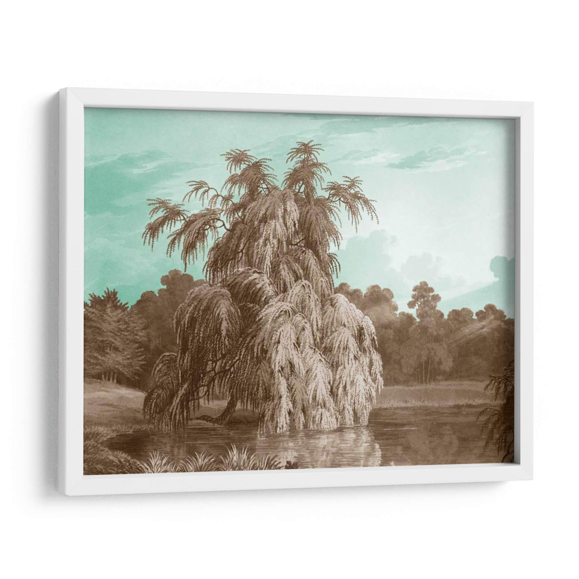 Sumérgete en la tranquilidad de "Árboles Serenos V", una obra de arte que captura la majestuosidad de la naturaleza con una paleta de colores serena y evocadora. Este cuadro decorativo presenta un imponente árbol, cuyas ramas fluidas parecen danzar sobre la superficie de un lago tranquilo, reflejando la calma del cielo turquesa que lo envuelve. La composición detallada, con un estilo que evoca grabados clásicos, transporta al espectador a un remanso de paz, ideal para espacios que buscan una atmósfera de serenidad y conexión con el entorno natural. Los tonos tierra del paisaje contrastan sutilmente con el fondo etéreo, creando una profundidad visual cautivadora. Perfecta para añadir un toque de sofisticación y serenidad a tu sala de estar, dormitorio o estudio, esta pieza invita a la contemplación y al descanso visual. "Árboles Serenos V" es más que una decoración; es una ventana a un oasis de calma en tu hogar, un recordatorio diario de la belleza serena que nos rodea y que puede ser tuya.