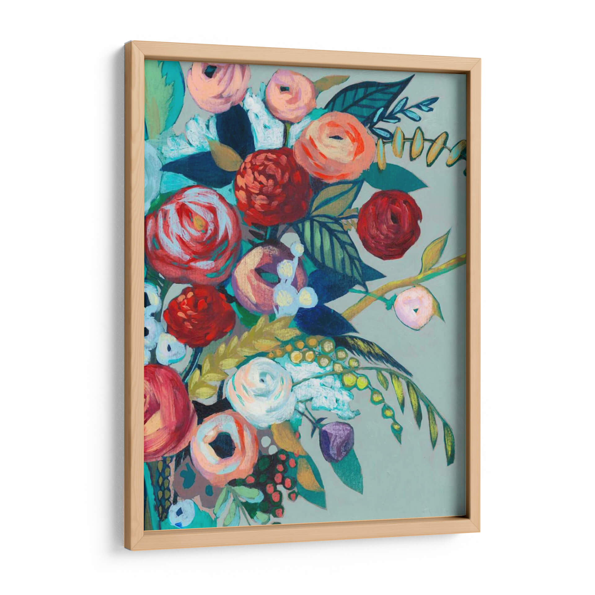 Sumérgete en la vibrante explosión floral de 'Array Lírica I', una obra de arte cautivadora de Grace Popp que transformará cualquier espacio en un oasis de color y vitalidad. Este cuadro decorativo presenta un exuberante arreglo de flores en tonos que van desde el rojo intenso y coral hasta el rosa suave y blanco, contrastando maravillosamente con el fondo sereno de tono gris verdoso. Las hojas, pintadas en ricos azules y verdes, añaden profundidad y un toque de frescura a la composición. El estilo artístico evoca una sensación de alegría y movimiento, con pinceladas expresivas que dan vida a cada pétalo y hoja. Es una pieza ideal para infundir energía positiva y un toque de naturaleza moderna en salones, comedores u oficinas que buscan un acento sofisticado y lleno de vida. La obra invita a la contemplación, ofreciendo una narrativa visual que celebra la belleza efímera de las flores con una perspectiva contemporánea. 'Array Lírica I' no es solo un cuadro, es una declaración de estilo que aporta calidez y un encanto artístico único a tu decoración.