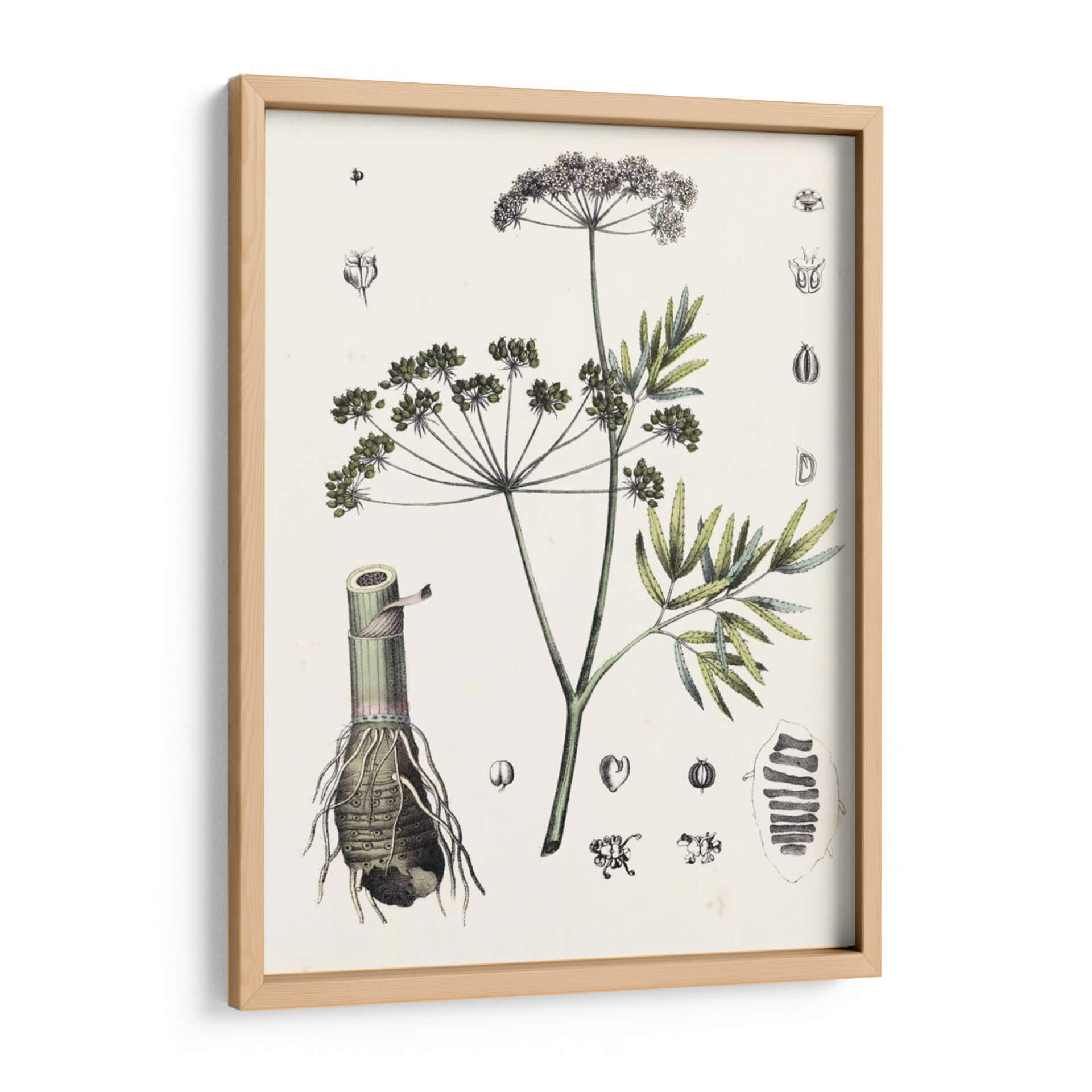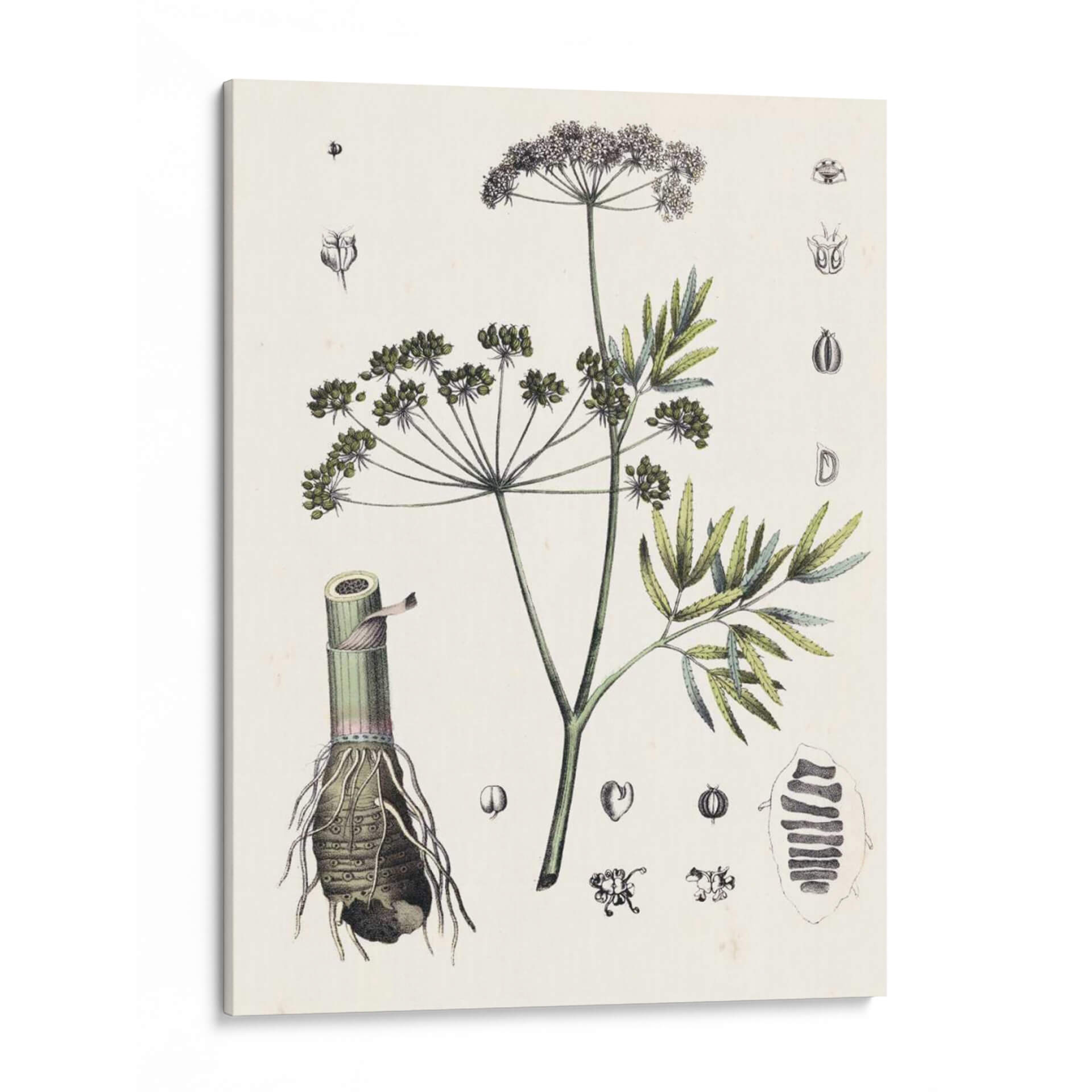 Embellece tu espacio con 'Berge Botanicals I', una obra de arte que captura la delicadeza y la complejidad de la botánica con un estilo de ilustración científica vintage. Esta pieza presenta una detallada representación de una planta, incluyendo su sistema radicular, tallo, hojas y flores, junto a representaciones de sus semillas y partes reproductivas. La paleta de colores suaves, dominada por verdes y tonos tierra sobre un fondo neutro, confiere una sensación de calma y serenidad, perfecta para añadir un toque orgánico y educativo a cualquier ambiente. Su composición, inspirada en los grabados botánicos clásicos, ofrece un atractivo visual tanto estético como intelectual. Ideal para salones, estudios o despachos que buscan una decoración que inspire contemplación y aprecio por la naturaleza. Integra este cuadro decorativo para crear un punto focal de elegancia atemporal y un recordatorio de la belleza intrínseca del mundo natural en tu hogar u oficina.