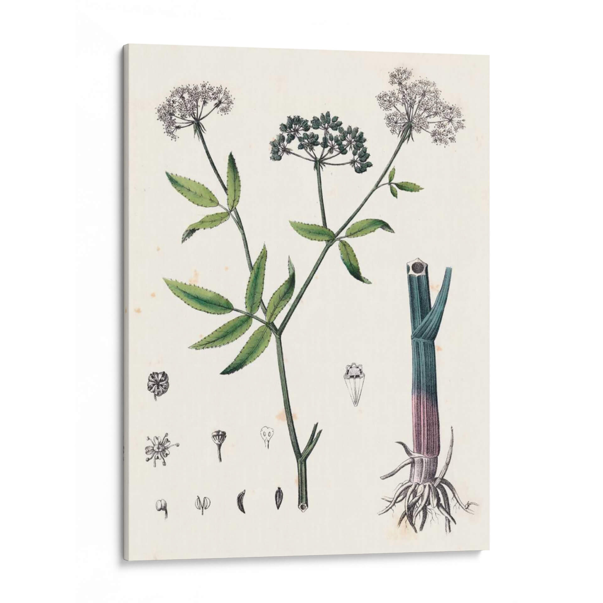 Descubre la belleza botánica con "Berge Botanicals II", un cuadro decorativo que captura la delicadeza de la naturaleza con un estilo de ilustración científica. Esta obra presenta un detallado estudio de una planta, destacando sus flores delicadas en forma de umbela, sus hojas serradas de un verde vibrante y un estudio de su tallo y raíces. La paleta de colores, centrada en verdes, blancos y toques sutiles de púrpura y azul en el tallo, evoca una sensación de calma y conexión con el entorno natural. Su composición, que recuerda a los grabados botánicos clásicos, añade un toque de elegancia y conocimiento a cualquier espacio. Es la pieza perfecta para dar vida a un estudio, una biblioteca, una cocina o cualquier rincón de tu hogar que necesite un aire de serenidad y sofisticación. "Berge Botanicals II" no es solo una decoración de pared, sino una ventana a la intrincada maravilla del mundo vegetal, aportando un toque de frescura y un aire atemporal a tu decoración contemporánea o clásica. Transforma tu ambiente con la elegancia sutil de esta ilustración botánica.