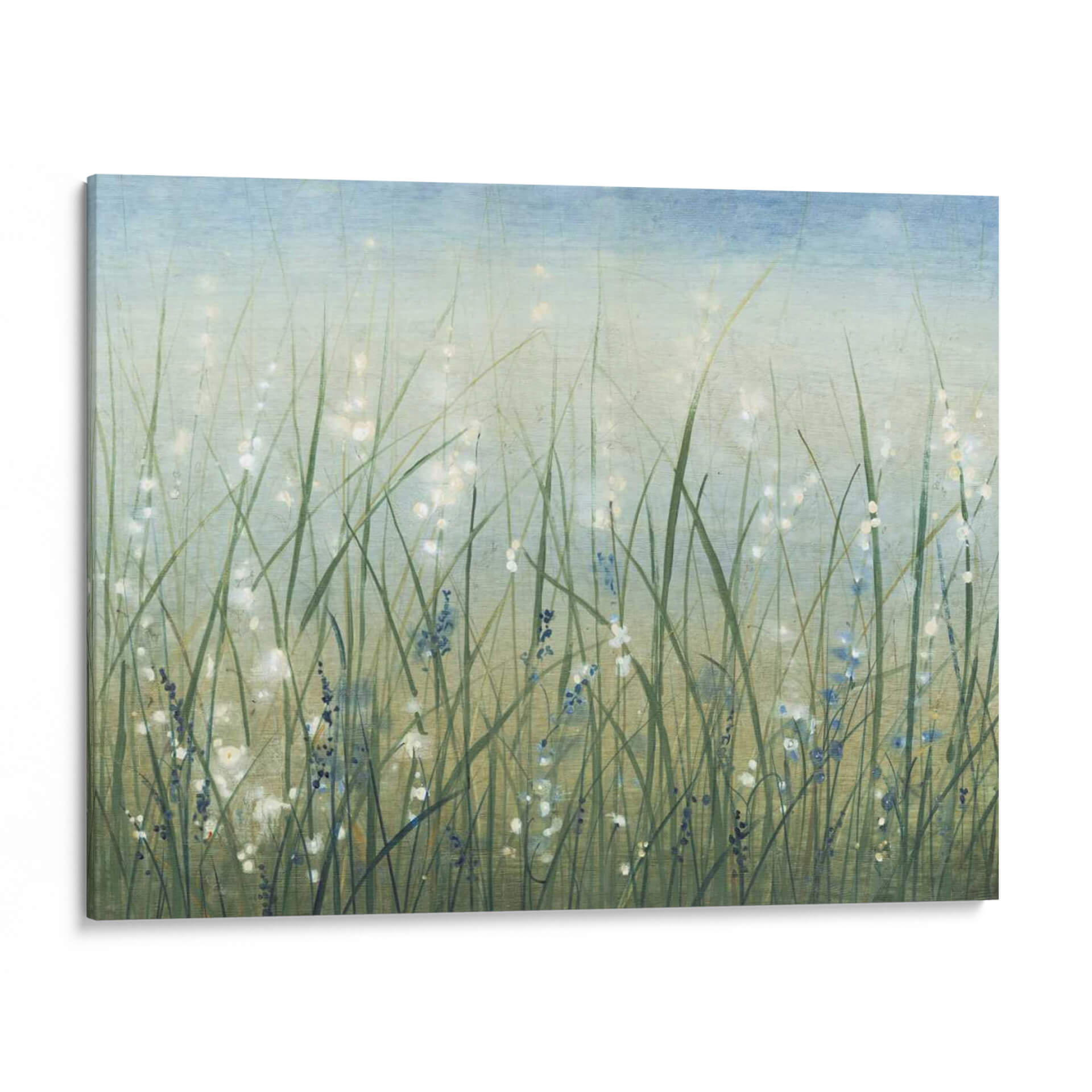 Sumérgete en la serenidad de "Bliss I", una obra de arte evocadora del artista Tim OToole. Este cuadro decorativo captura la delicadeza de un campo de hierba alta meciéndose suavemente con la brisa, salpicado de diminutas flores azules y toques de luz resplandeciente. La paleta de colores, dominada por suaves tonos verdes, azules celestes y toques cremosos, crea una atmósfera de paz y tranquilidad. La técnica pictórica sugiere un estilo semi-abstracto o impresionista, donde las formas se fusionan para crear una impresión general de naturaleza serena y etérea. Las pinceladas sutiles y la profundidad lograda invitan a la contemplación, transportando al espectador a un momento de calma absoluta. "Bliss I" es la pieza ideal para infundir serenidad en tu dormitorio, aportar un toque de frescura natural a tu sala de estar, o crear un rincón de paz en tu oficina. Su belleza atemporal y su carácter relajante la convierten en una adición perfecta para cualquier espacio que busque armonía y bienestar visual. Descubre la esencia de la felicidad simple a través de este hermoso cuadro decorativo.