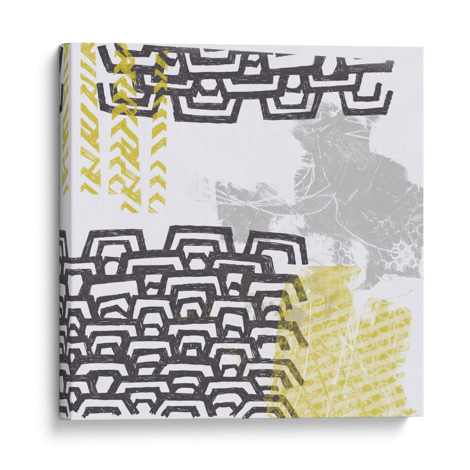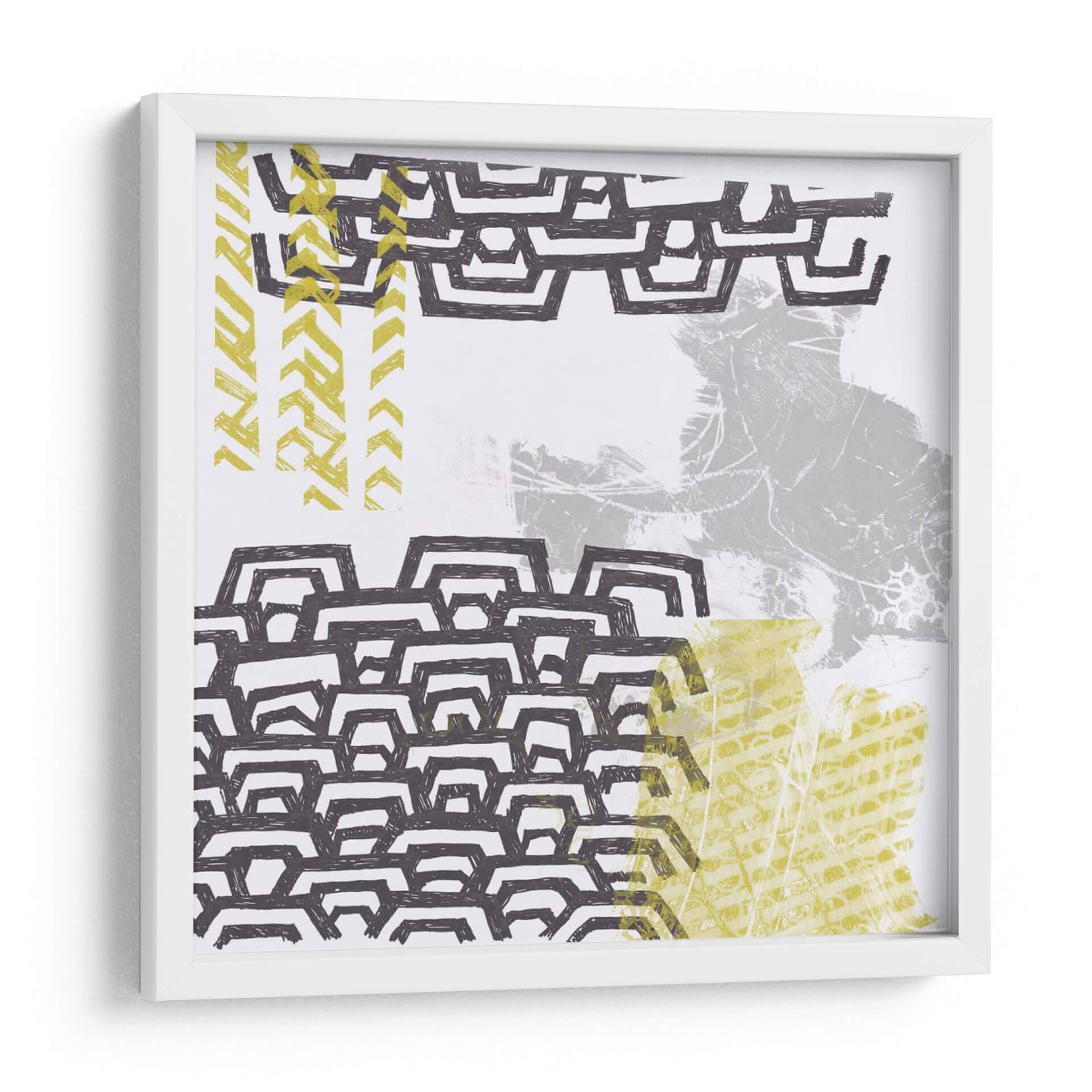 Sumérgete en la cautivadora estética de "Bloque De Impresión Abstracta Viii", una obra de arte contemporáneo que redefine el espacio con su audaz diseño y vibrante paleta. Esta pieza abstracta presenta una fascinante composición de formas geométricas repetitivas en tonos oscuros y amarillos brillantes, contrastando con sutiles texturas grises y blancas que añaden profundidad visual. La energía dinámica de los patrones en zigzag y los bloques interconectados evoca una sensación de movimiento y modernidad, lo que la convierte en el punto focal perfecto para salas de estar, oficinas o cualquier espacio que busque un toque de carácter y sofisticación. El estilo distintivo de June Erica Vess se manifiesta en la audacia de sus trazos y la armonía de sus contrastes, creando un cuadro decorativo que no solo embellece, sino que también inspira conversación. Ideal para quienes aprecian el arte abstracto con un toque de audacia, esta obra es una adición contemporánea que transformará tu entorno, aportando un aire de diseño artístico y una inyección de color y patrón. Un lienzo que invita a la contemplación y celebra la expresión gráfica pura.