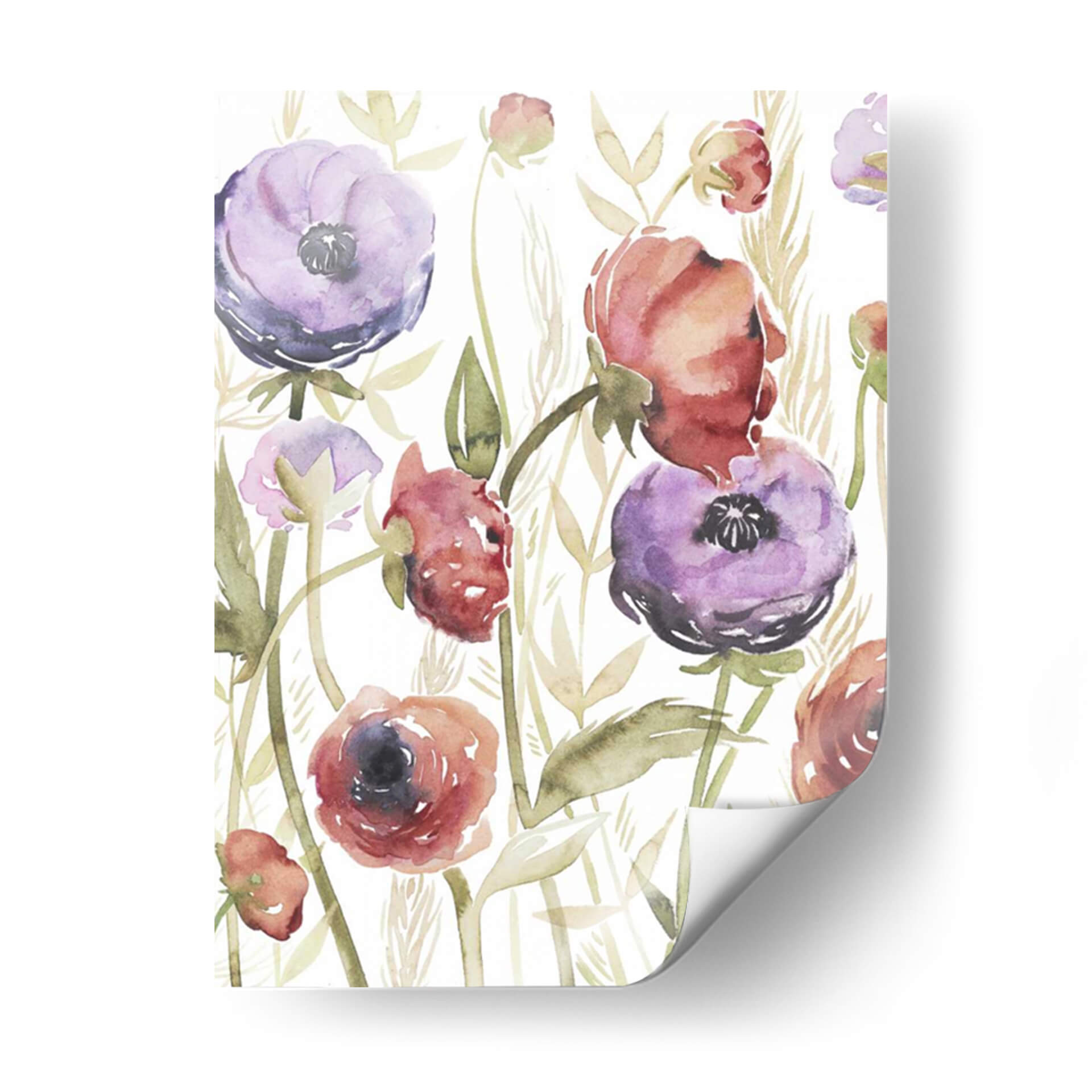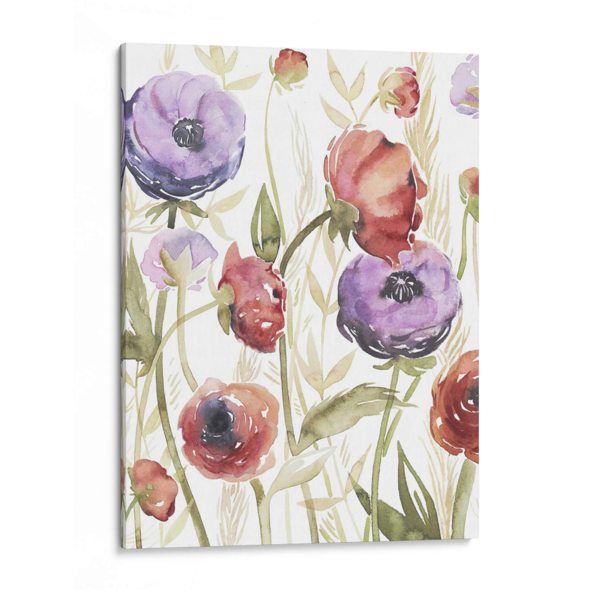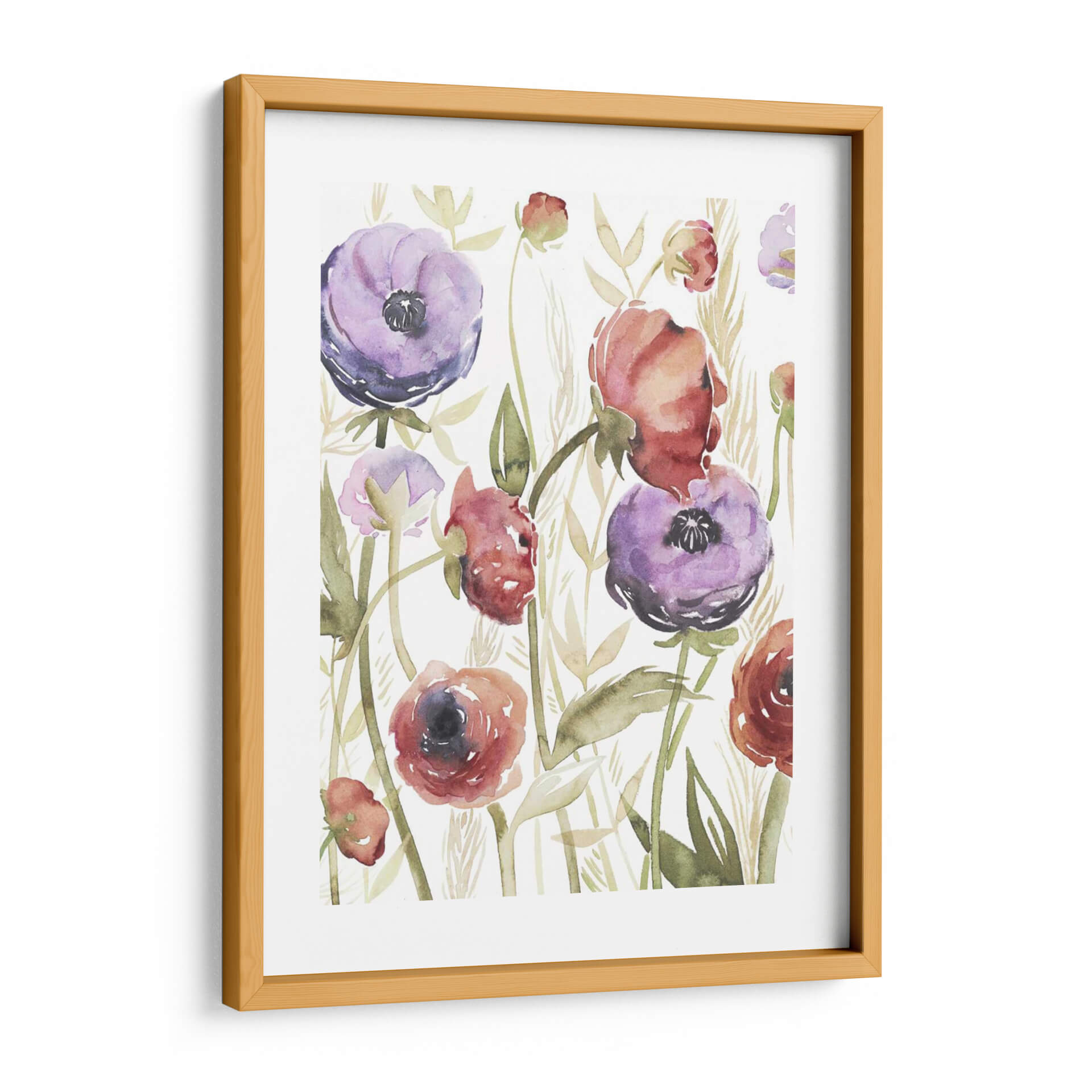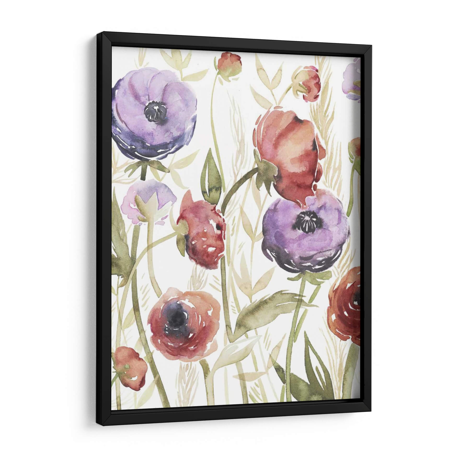 Sumérgete en la serena belleza de "Blossoms De Joyas II", una obra maestra floral que captura la delicadeza de la naturaleza con un toque contemporáneo. La artista Grace Popp utiliza acuarelas etéreas para dar vida a exuberantes flores en tonos vibrantes de púrpura y rojo, rodeadas de delicadas hojas y espigas en tonos ocres y verdes suaves. La composición, que evoca un jardín secreto lleno de vitalidad, invita a la contemplación y la paz. Este cuadro decorativo es perfecto para añadir un toque de color y sofisticación a cualquier espacio, desde una sala de estar moderna hasta un tranquilo dormitorio o una oficina que busque inspiración. La técnica de acuarela, con sus transparencias y pinceladas sueltas, confiere a la pieza una ligereza y una frescura únicas, haciendo que cada flor parezca danzar en el lienzo. "Blossoms De Joyas II" no es solo una decoración, es una ventana a la alegría de la primavera y la elegancia atemporal de las flores, ideal para quienes aprecian el arte detallado y lleno de sentimiento.