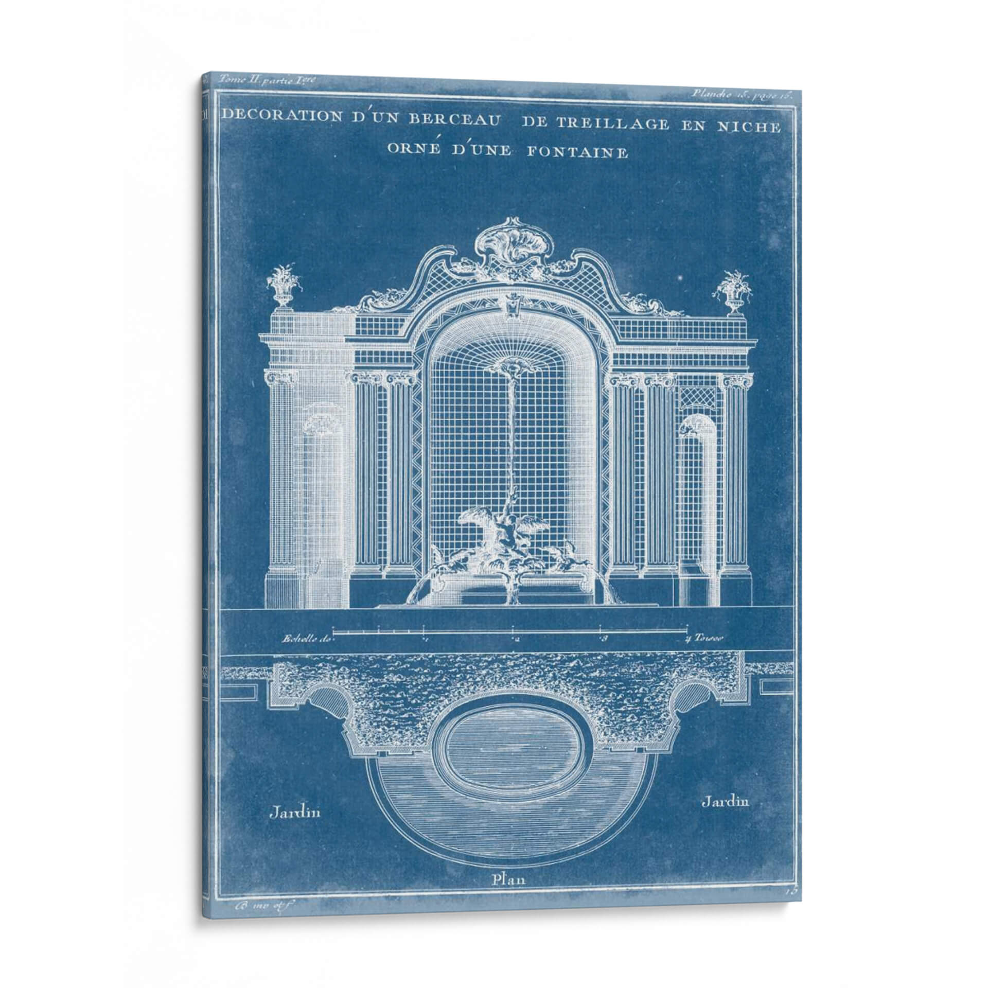Embellece tu espacio con la majestuosidad arquitectónica de "Blueprint De Treillage Garden Ii", una obra que captura la esencia de la ingeniería y el diseño paisajístico clásico. Este cuadro decorativo, con su característico estilo de plano arquitectónico en tono azul, presenta intrincados detalles de un jardín con una fuente central, enmarcado por columnas y arcos. La composición simétrica y los patrones de rejilla evocan una sensación de orden, sofisticación y la belleza atemporal de los diseños de jardines formales. Ideal para añadir un toque de elegancia histórica y un aire de refinamiento intelectual a tu hogar u oficina. Su paleta de colores monocromática y el diseño detallado lo convierten en una pieza versátil, perfecta para inspirar serenidad y admiración. Imagina este diseño transformando cualquier pared en un punto focal de conversación, aportando profundidad y una perspectiva arquitectónica única a tu decoración. Es una invitación a apreciar la fusión del arte, la arquitectura y la naturaleza.