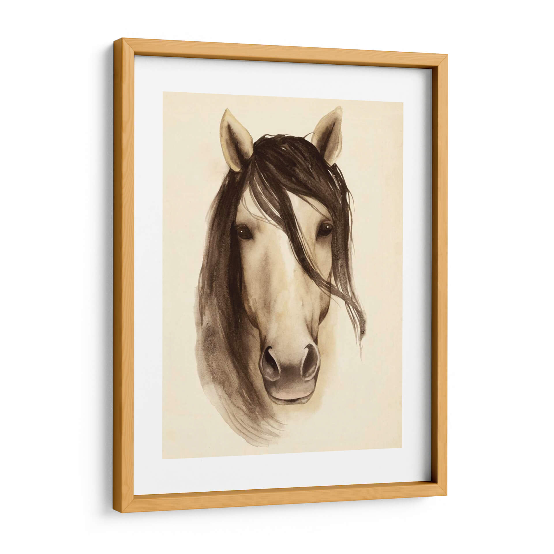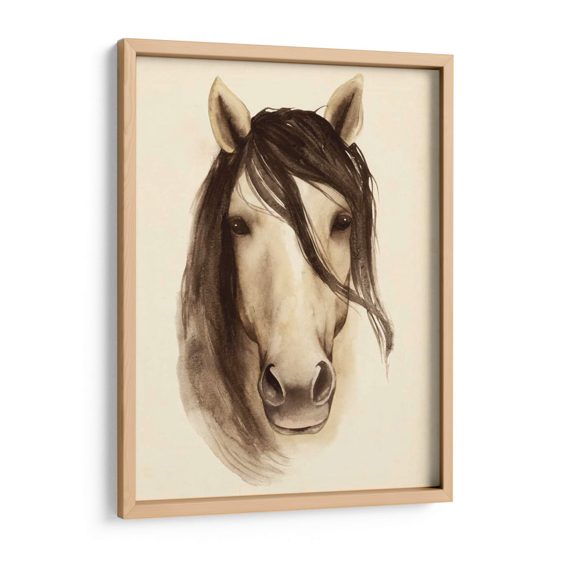 Sumérgete en la elegancia atemporal con nuestro cuadro decorativo "Branero De Acuarela Animales I" de Grace Popp. Esta cautivadora obra presenta un retrato de caballo ejecutado con una delicada técnica de acuarela, evocando una sensación de serenidad y fuerza natural. Los tonos sepia y tierra, aplicados con pinceladas sueltas y expresivas, crean una atmósfera íntima y sofisticada. La composición se centra en el rostro del caballo, con su melena fluyendo suavemente y sus ojos profundos que parecen conectar directamente con el espectador. Es una pieza ideal para quienes buscan añadir un toque de naturaleza y distinción a su hogar u oficina, encajando perfectamente en espacios de estilo rústico, moderno o minimalista. Este cuadro decorativo no solo embellece tus paredes, sino que también inspira calma y admiración por la belleza equina. Añade un toque de arte contemporáneo y atemporal a tu decoración y crea un ambiente acogedor y lleno de personalidad. Perfecto para salas de estar, dormitorios o estudios, esta obra de Grace Popp es una elección excepcional para coleccionistas y amantes del arte que aprecian la sutileza y la emoción en cada trazo.