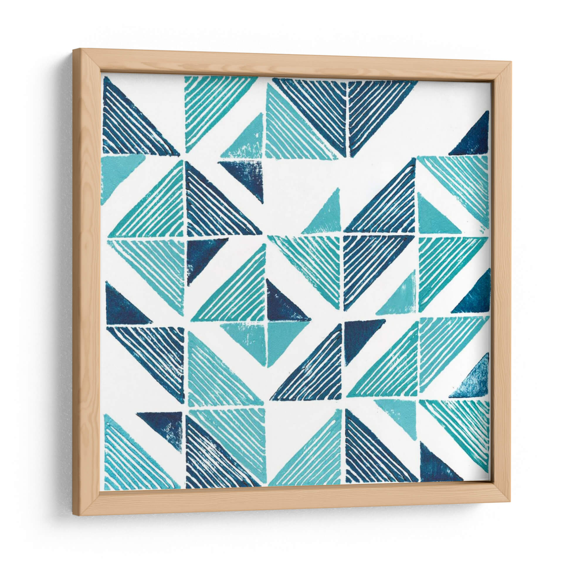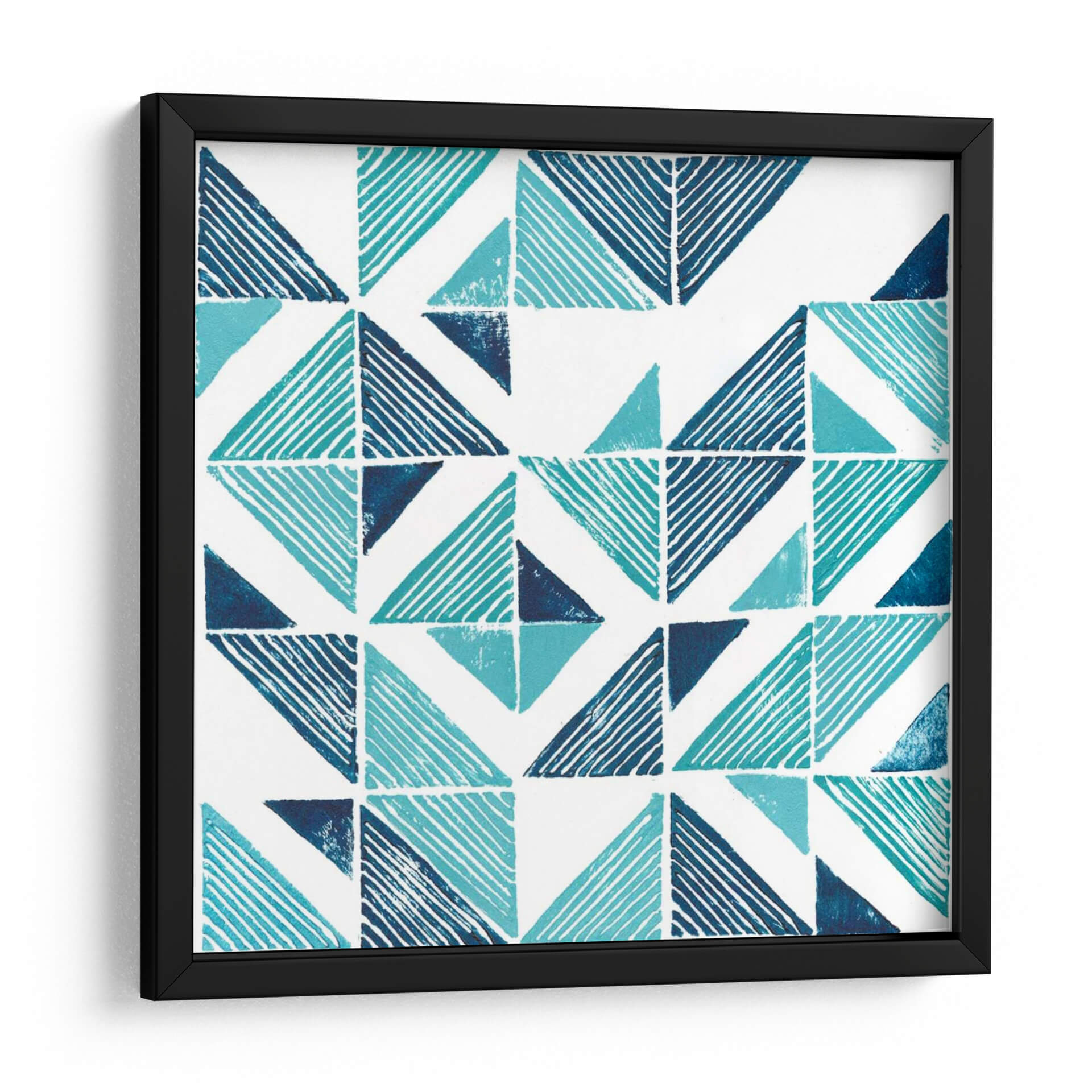 Transforma tu espacio con el cautivador cuadro decorativo "Bryl Bloque Iii Iii" de Grace Popp. Esta obra de arte contemporánea presenta un vibrante patrón geométrico que combina tonos de azul profundo y turquesa brillante sobre un fondo blanco nítido. Las formas triangulares, algunas sólidas y otras con líneas dinámicas, crean una sensación de movimiento y profundidad, aportando una energía moderna y fresca a cualquier habitación. El estilo abstracto y la composición rítmica de esta pieza la convierten en una adición versátil para una amplia gama de decoraciones, desde interiores minimalistas hasta espacios más eclécticos. Imagina este cuadro como el punto focal de tu sala de estar, añadiendo un toque de sofisticación y color, o como un elemento sereno en tu estudio u oficina, inspirando creatividad y calma. La calidad de la impresión y la cuidadosa selección de colores garantizan que esta obra destaque, convirtiéndose en un tema de conversación y una expresión de tu gusto personal. "Bryl Bloque Iii Iii" es más que una simple decoración; es una invitación a experimentar la belleza del diseño abstracto y la vitalidad del color.