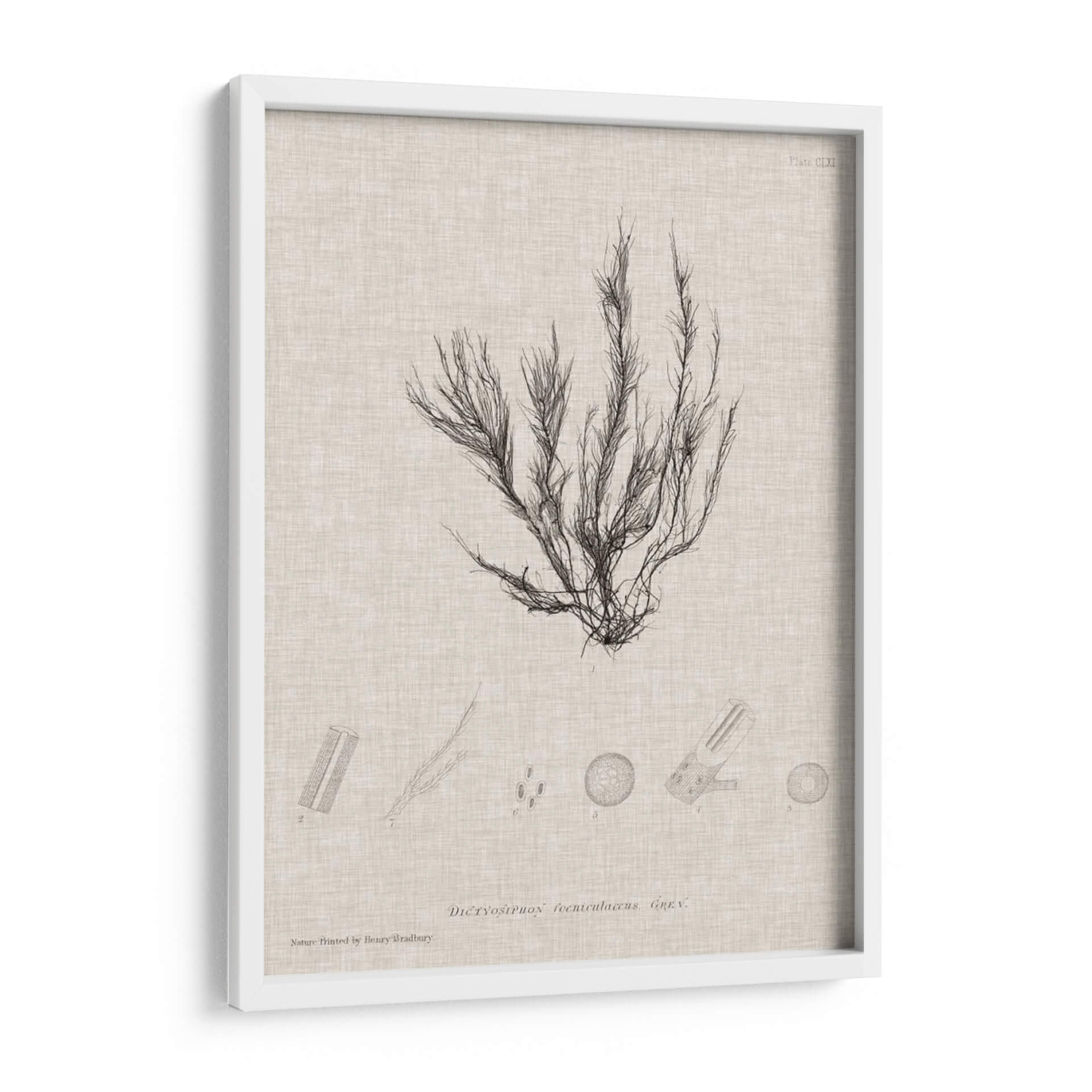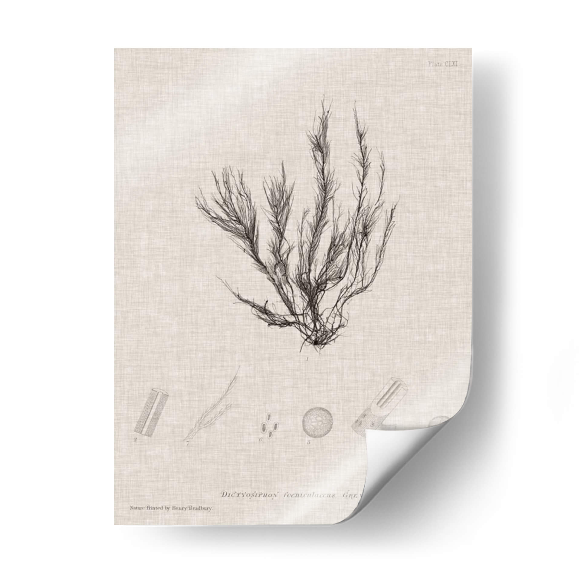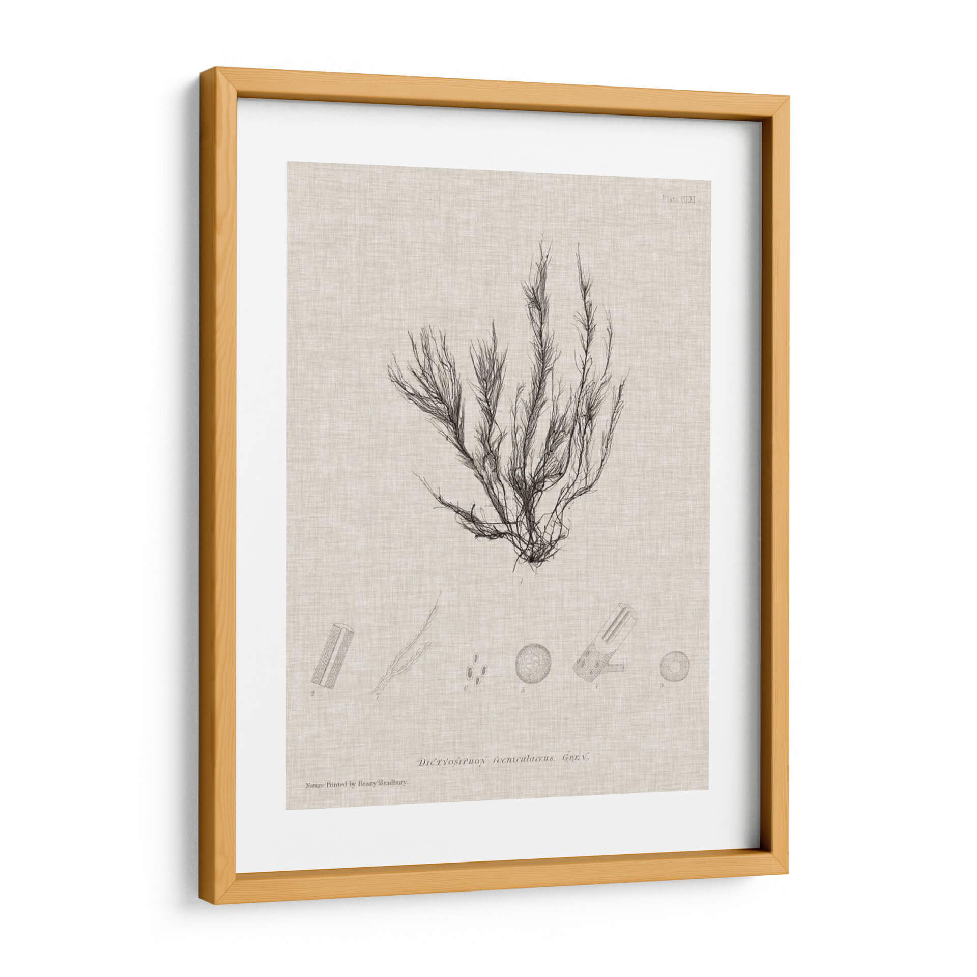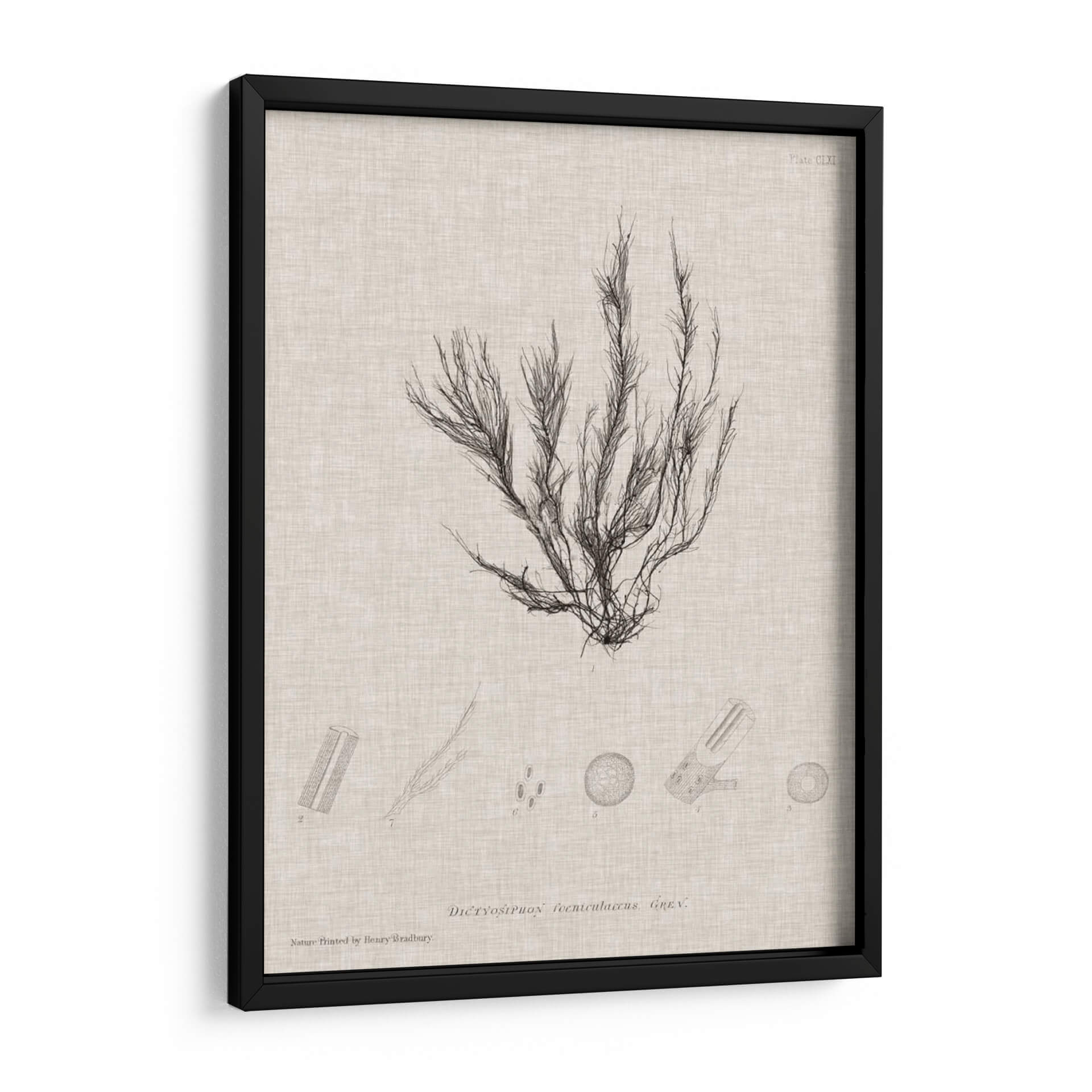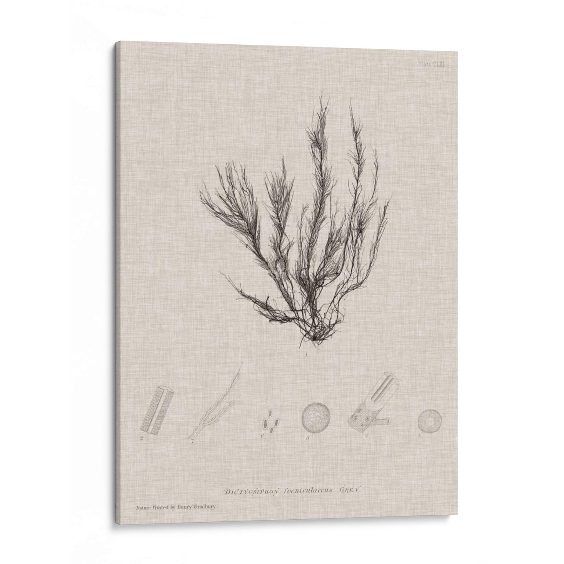 Sumérgete en la delicadeza del "Carbón Y Ropa De Algas Marinas Vi", una obra de Henry Bradbury que captura la intrincada belleza de la vida marina con un estilo botánico detallado. Este cuadro decorativo presenta un estudio minucioso de algas marinas en tonos carbón, con elementos adicionales que sugieren un análisis científico o una ilustración de historia natural. La paleta de colores neutra y terrosa, con el delicado contraste del negro sobre un fondo texturizado similar al lino, crea una atmósfera de serenidad y elegancia atemporal. Ideal para quienes buscan añadir un toque de naturaleza sofisticada a su hogar u oficina, esta pieza evoca la tranquilidad del océano y la fascinación por el mundo natural. Su composición detallada pero limpia la convierte en un punto focal sutil pero cautivador, perfecto para espacios que buscan una conexión con la ciencia y la estética orgánica. Añade esta ilustración botánica de alta calidad a tu colección y transforma tu pared en una ventana al fascinante reino submarino, aportando calma y un aire de conocimiento científico a tu decoración.