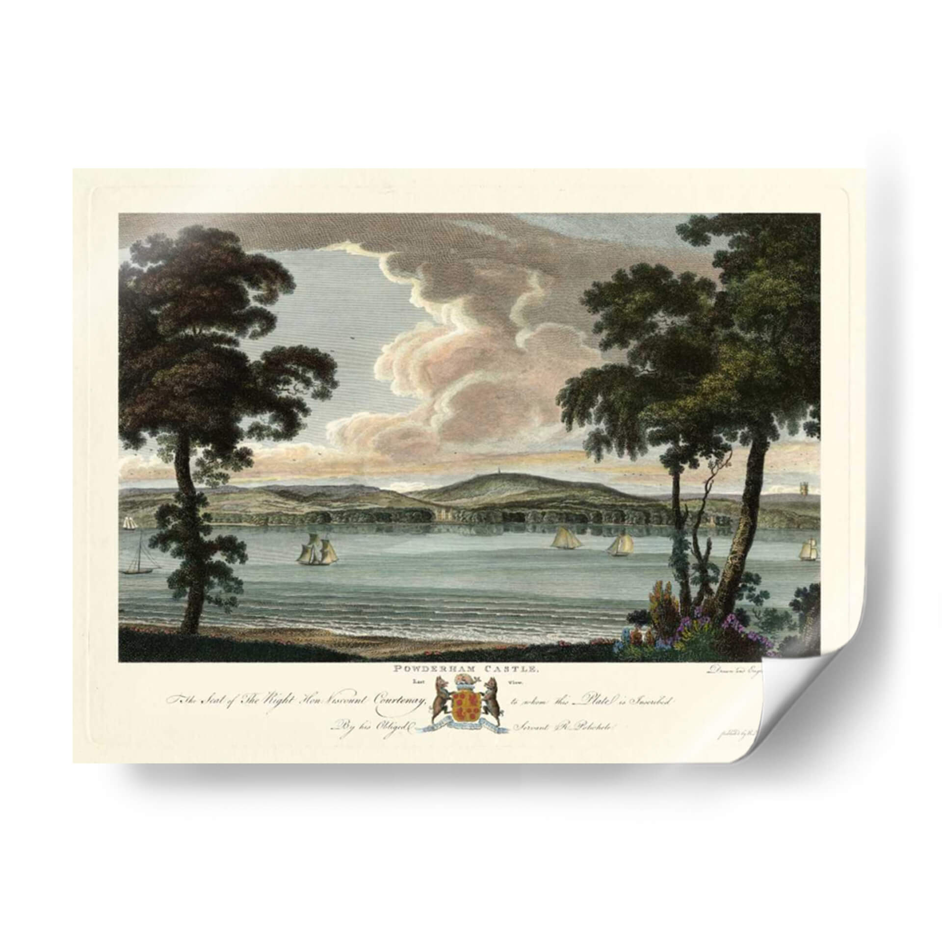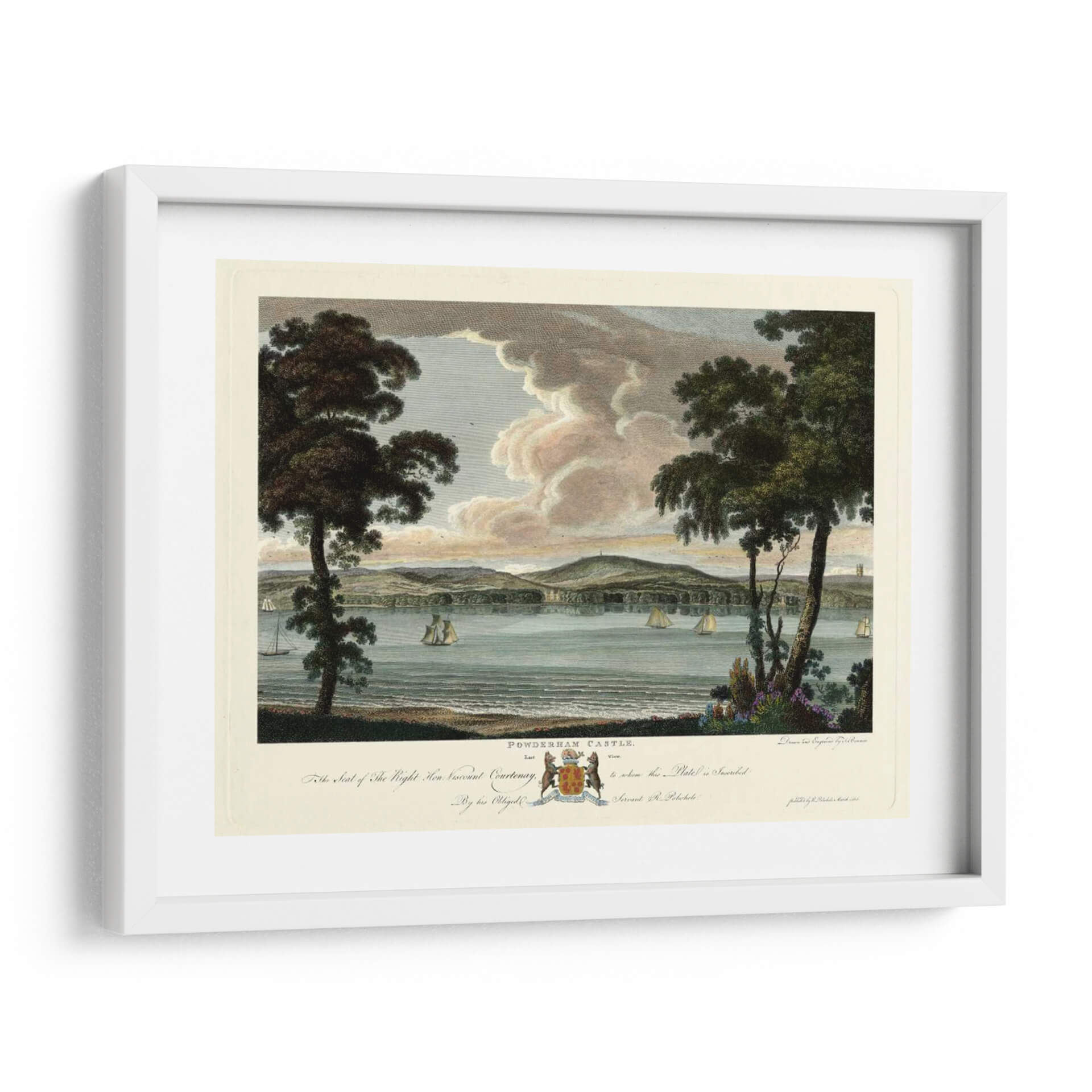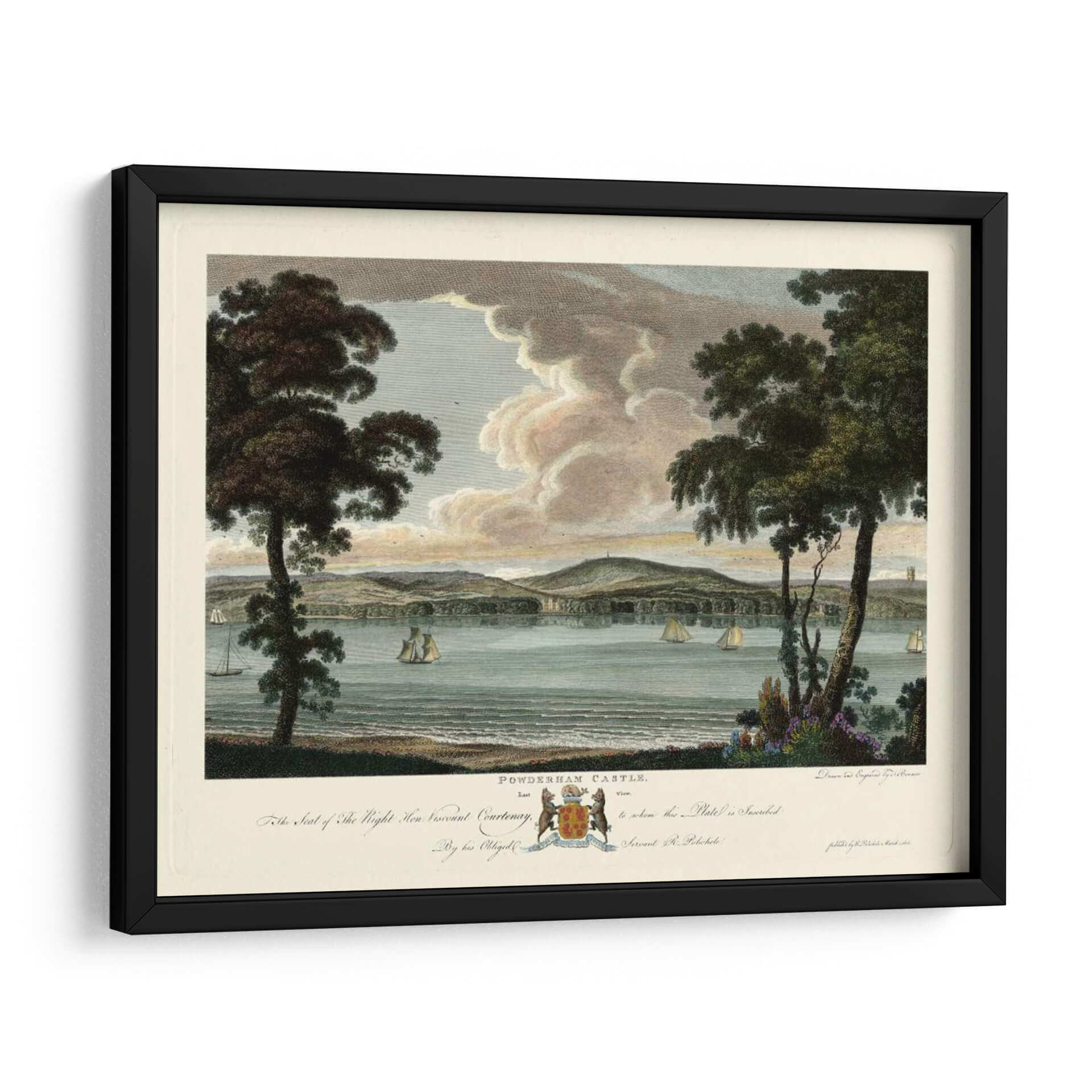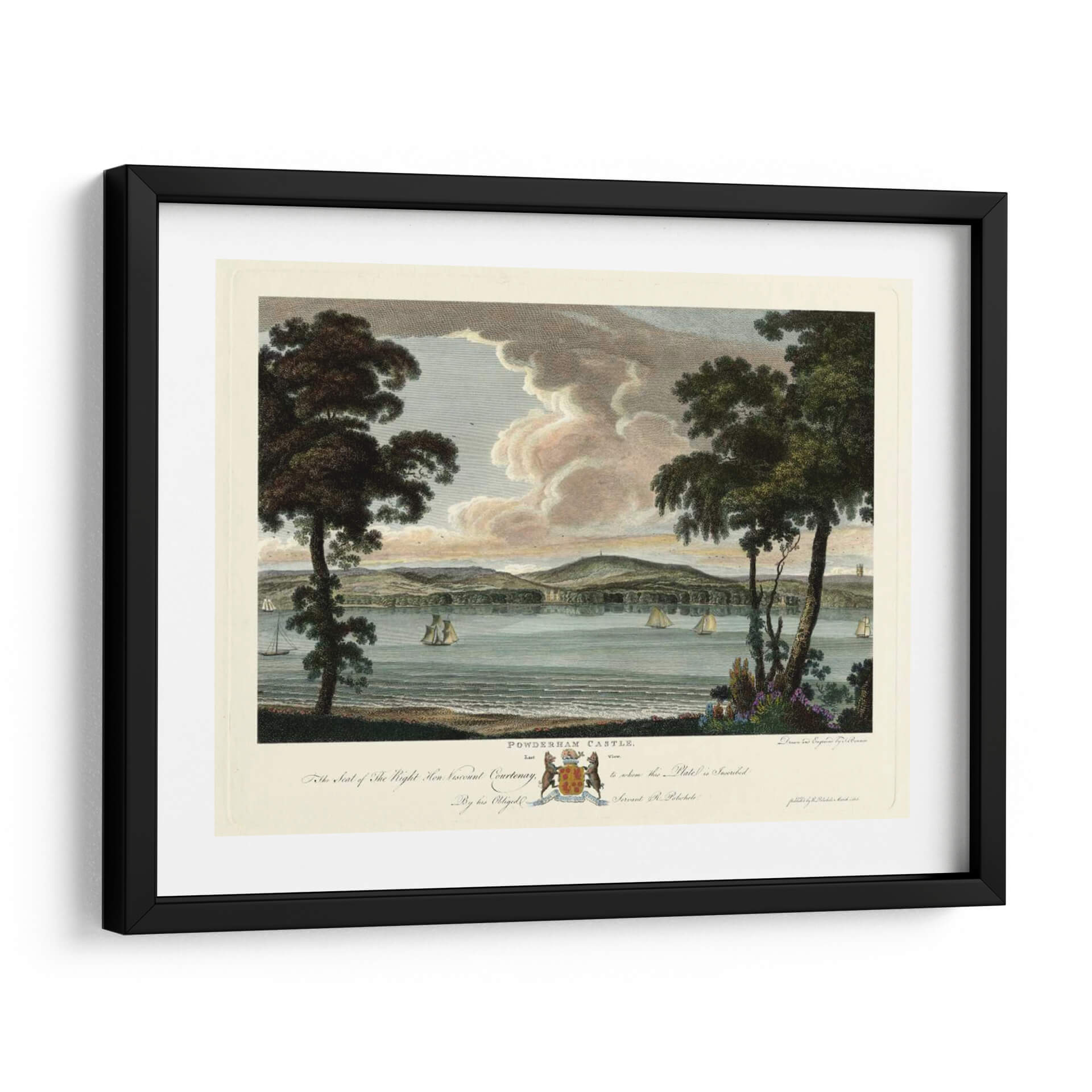Sumérgete en la serenidad del paisaje inglés con "Castillo de Powderham" de Richard Polwhele, una obra de arte que captura la majestuosidad de la costa y la arquitectura histórica. Este cuadro decorativo transporta a un momento de calma y contemplación, con el agua serena del estuario reflejando un cielo dramático y las velas de los barcos que navegan a lo lejos. Los árboles frondosos en primer plano enmarcan la vista, añadiendo profundidad y una sensación de naturaleza viva que contrasta con la silueta distante del castillo y las colinas. La paleta de colores, dominada por tonos acuáticos, verdes profundos y celestes con nubes rosadas, evoca una atmósfera de paz y elegancia atemporal. Es una pieza ideal para añadir un toque de sofisticación y una conexión con la historia y la naturaleza a tu salón, despacho o dormitorio. Este lienzo es perfecto para quienes buscan una decoración que inspire tranquilidad y a la vez ofrezca un punto focal visualmente rico y detallado, invitando a la reflexión y al disfrute de la belleza escénica.