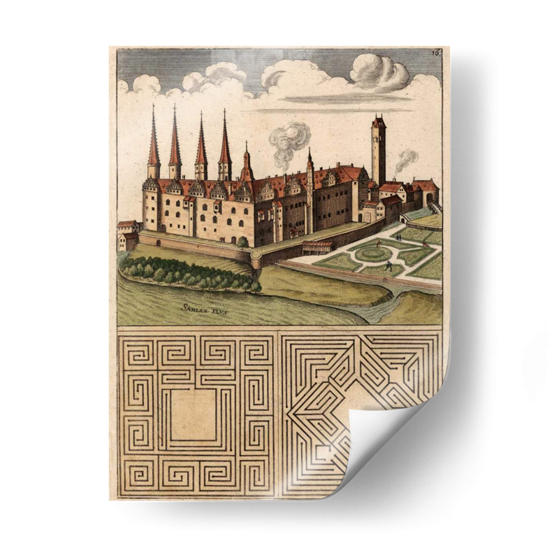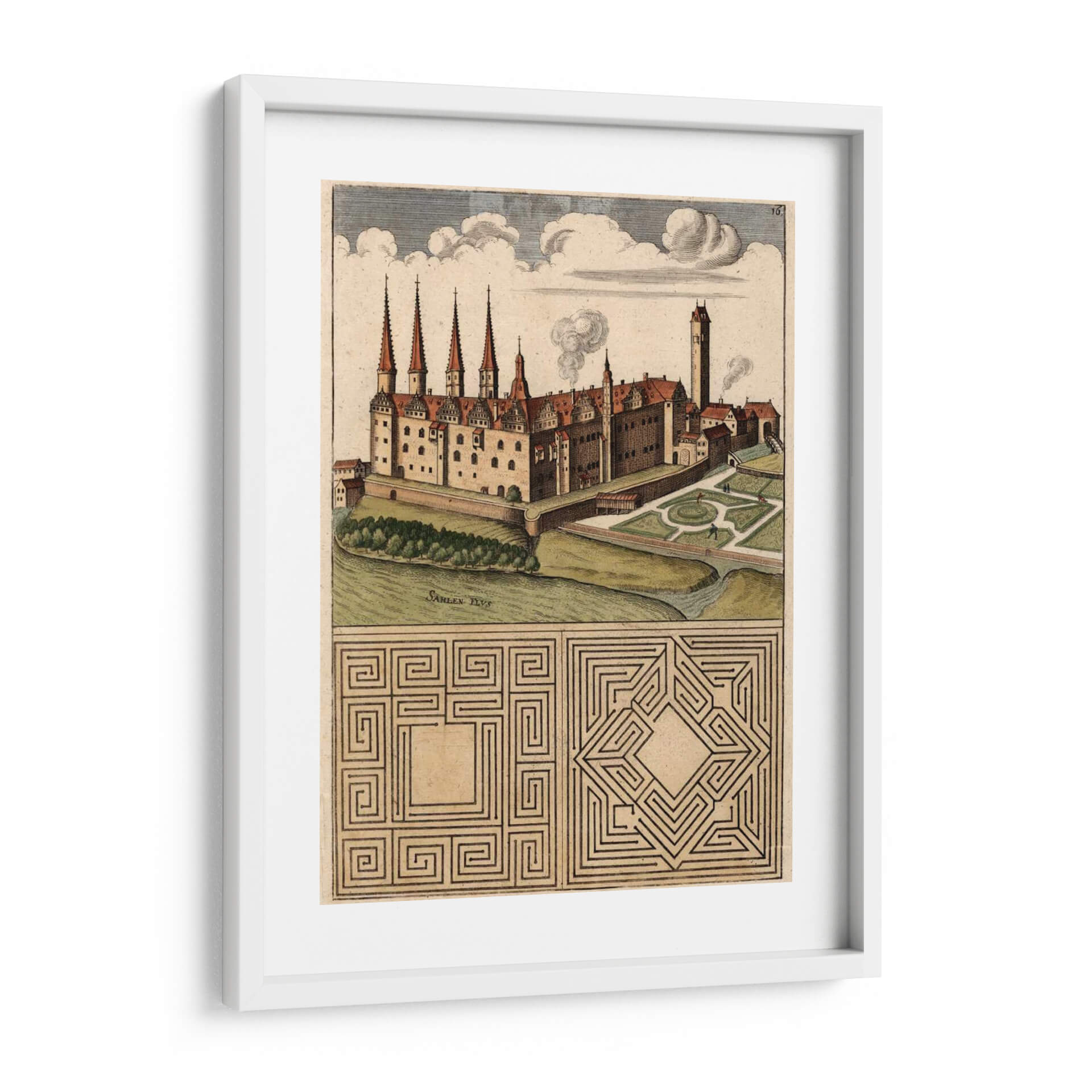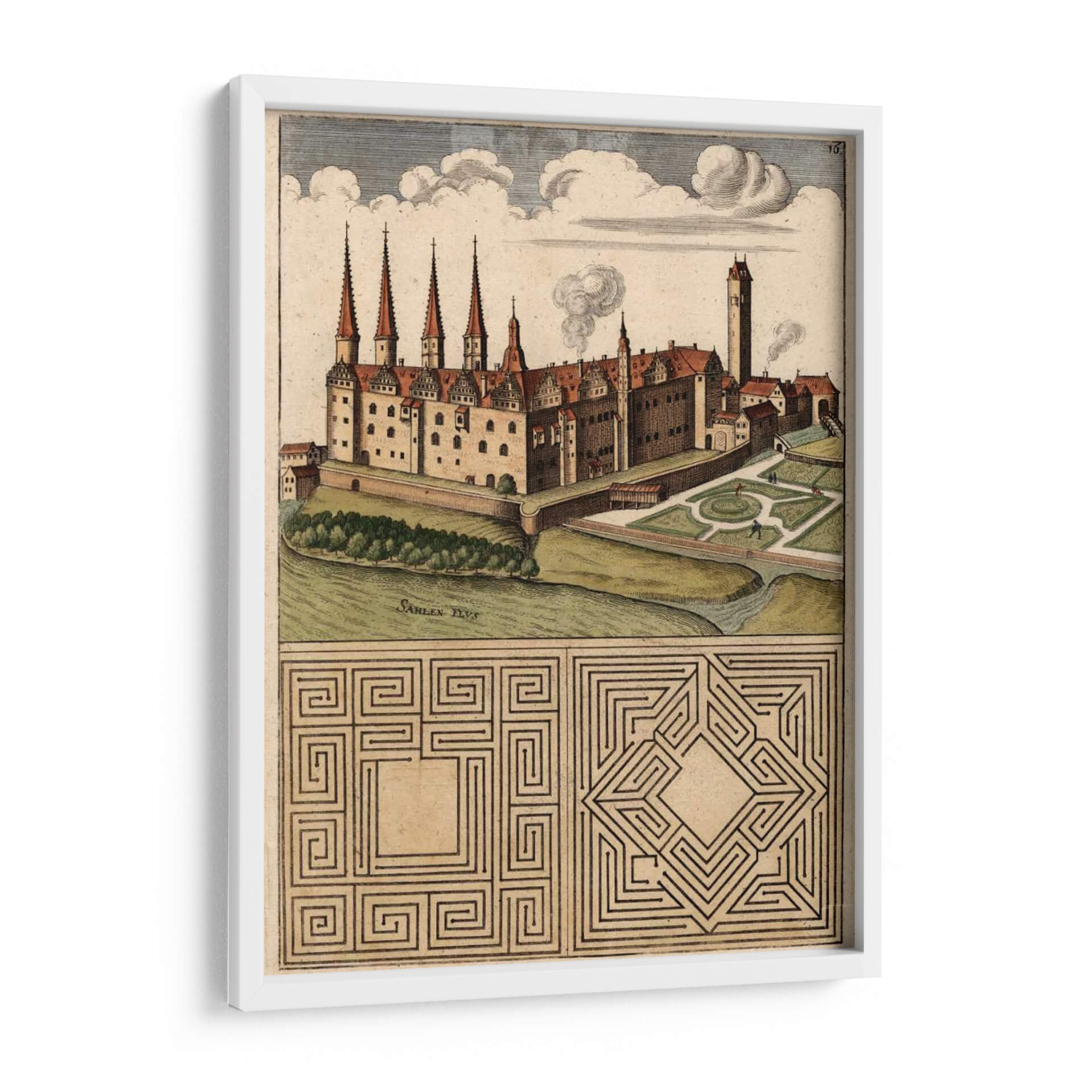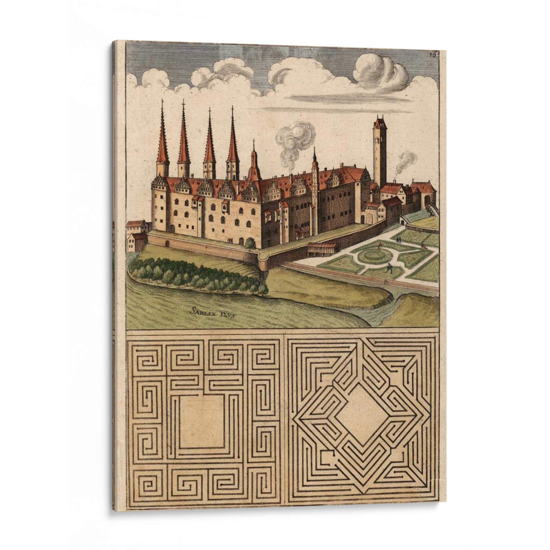 Sumérgete en la intriga arquitectónica y el encanto histórico con el cuadro decorativo "Castillo Y Laberinto I". Esta obra evoca una sensación de misterio y exploración, presentando un detallado grabado de un imponente castillo con múltiples torres y una muralla protectora. A sus pies, se despliega un jardín geométrico con senderos intrincados que invitan a la contemplación. La paleta de colores, dominada por tonos tierra, ocres y sutiles toques de azul cielo, confiere a la pieza una atmósfera atemporal y serena. La composición, dividida entre la majestuosidad del castillo y la complejidad de los laberintos inferiores, crea un contraste fascinante entre lo construido y lo diseñado. Ideal para añadir un toque de carácter y sofisticación a estudios, bibliotecas o salones que busquen inspiración en la arquitectura clásica y la simbología del laberinto. Este cuadro decorativo es perfecto para aquellos que aprecian la historia, la arquitectura y el arte con un aire de enigma. Su diseño detallado y su temática única lo convierten en una pieza de conversación, aportando profundidad y un sentido de aventura a cualquier espacio de tu hogar u oficina, invitando a la reflexión sobre los caminos de la vida y la complejidad de las estructuras.