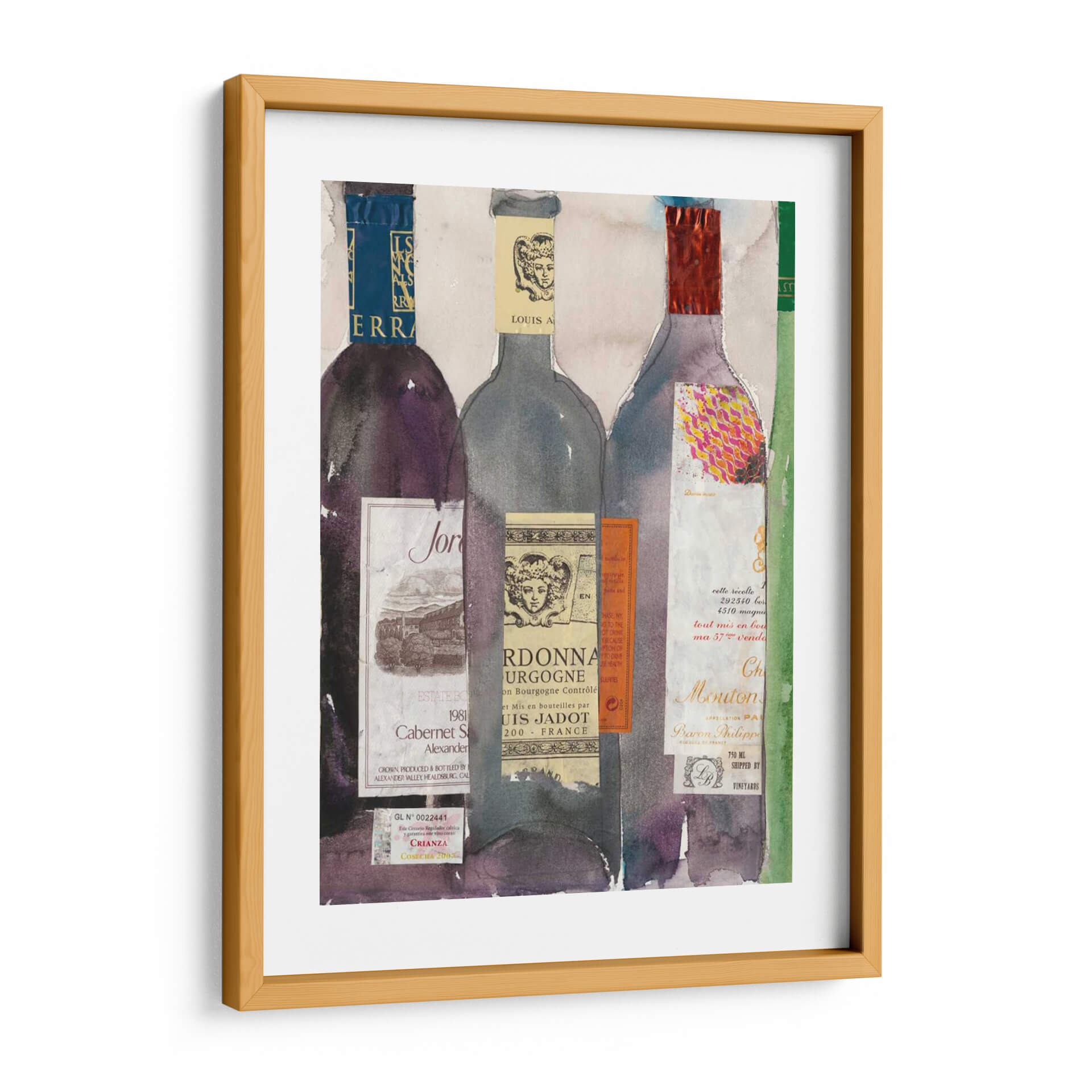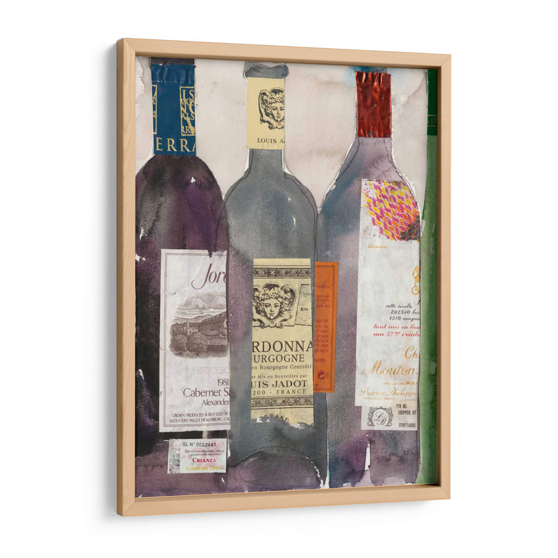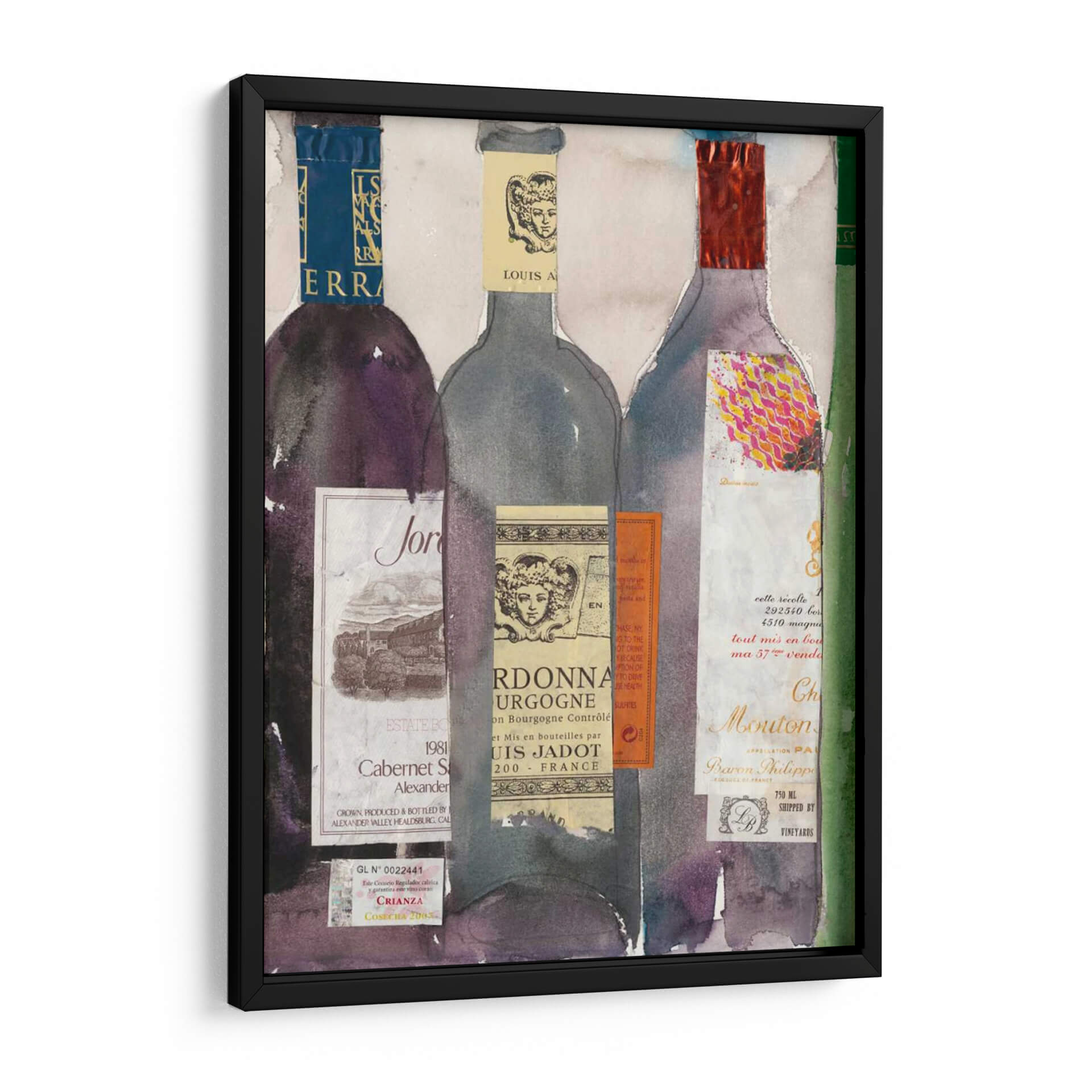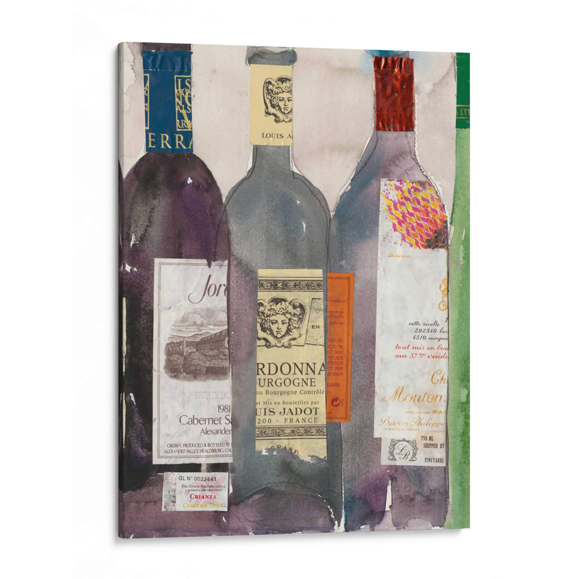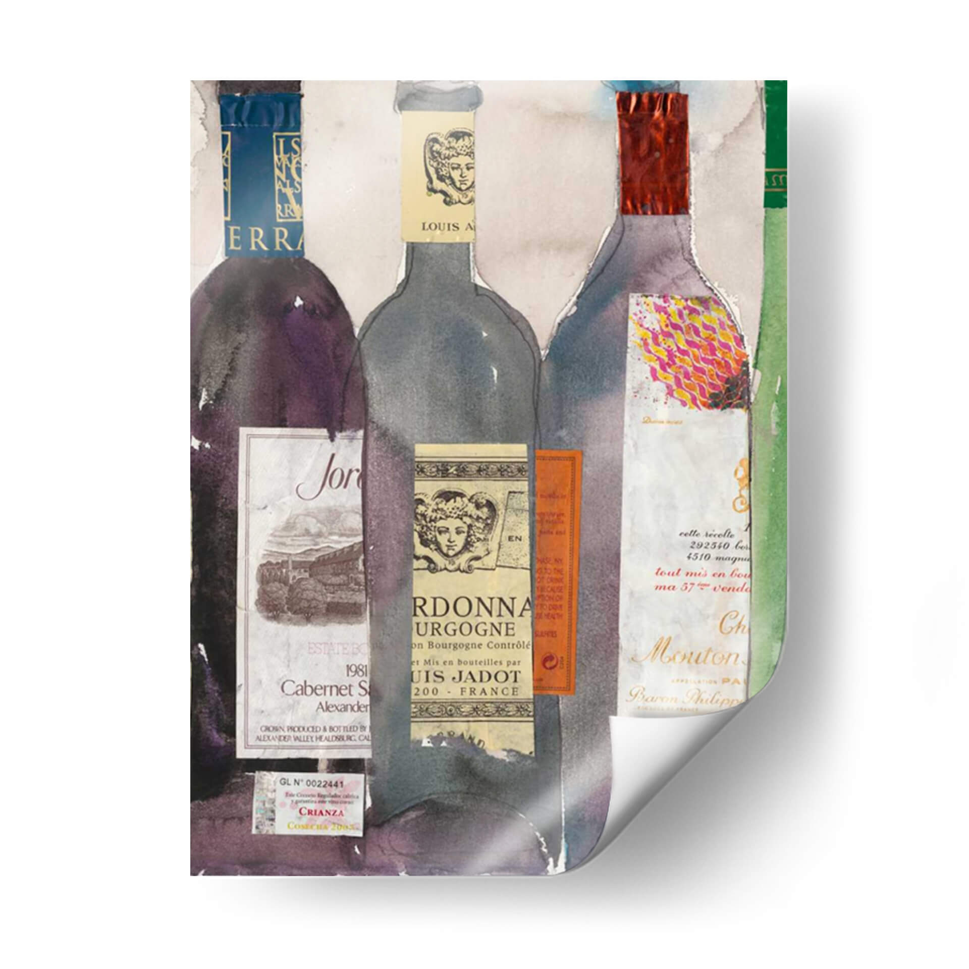 Sumérgete en el sofisticado mundo del vino con 'Cena Fiesta III', una obra de arte vibrante y detallada del artista Samuel Dixon. Este cuadro decorativo presenta una cautivadora composición de botellas de vino, cada una adornada con etiquetas vintage y texturas ricas que evocan la tradición y el placer de la enología. La paleta de colores, que transita entre profundos tonos púrpuras, grises sutiles y toques de rojo vibrante y dorado, crea una atmósfera de elegancia y celebración. El estilo, que combina elementos de acuarela con un enfoque collage, aporta una profundidad y un carácter único a la pieza, invitando al espectador a apreciar la belleza de los detalles. Ideal para salones, comedores o bodegas, este cuadro decorativo es perfecto para aquellos que aprecian el buen gusto y buscan añadir un punto focal con personalidad a su hogar. 'Cena Fiesta III' no es solo una decoración, es una invitación a compartir momentos especiales y disfrutar de la vida con estilo y refinamiento. Su diseño versátil lo convierte en una adición impresionante a cualquier espacio, desde lo moderno hasta lo más clásico, aportando un toque de sofisticación artística.